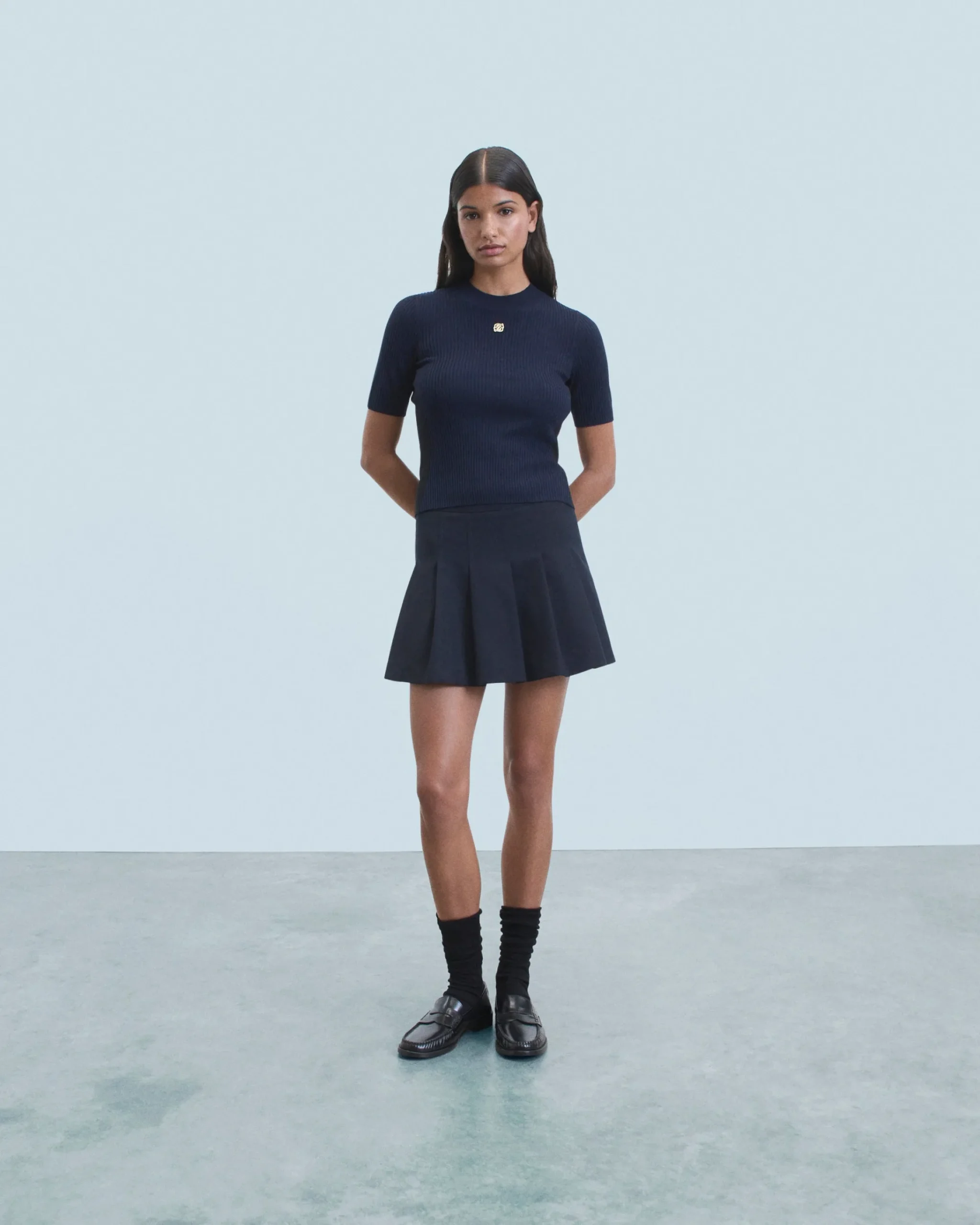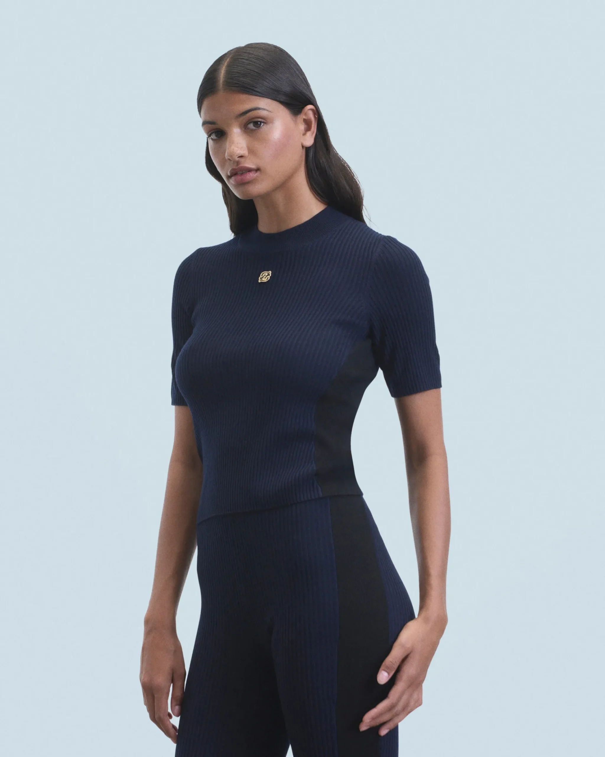 Realizzato in lana merino certificata RWS (Responsible Wool Standard), questo top corto e a coste si indossa come una seconda pelle. Decorato con una firma gioiello “FF” dorata sul davanti e un gioco di contrasti sui lati, presenta un collo rotondo e maniche corte. Completa il tuo look casual con i pantaloni coordinati. – Top corto in lana merino Donna – Côtelé – Gioiello dorato “FF” – Collo rotondo – Maniche corte – Coste a contrasto – Vestibilità slim – Lana merino: traspirante e termoregolatrice, può essere indossata d’estate come d’inverno