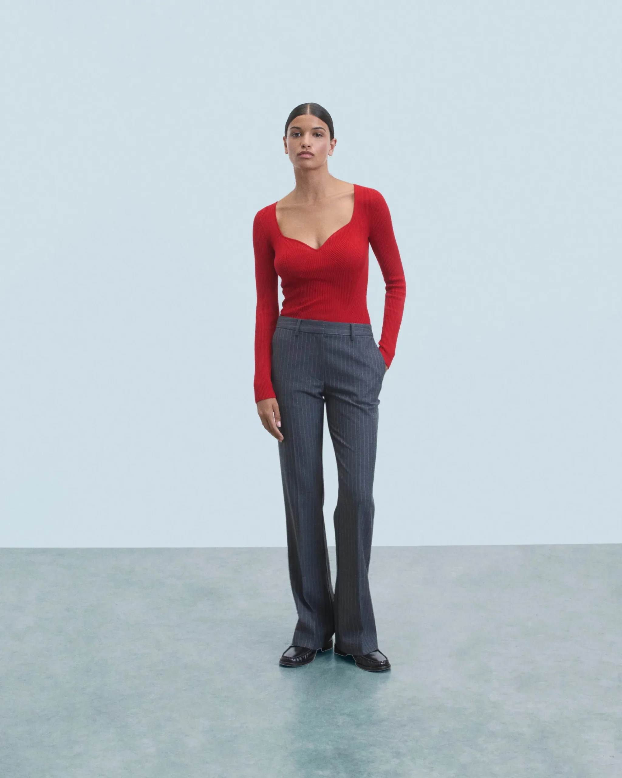 Con il colore di punta della stagione, questo top realizzato in 100% lana merino certificata RWS (Responsible Wool Standard) affascina con i suoi dettagli audaci. A coste e strutturato, presenta un scollo dritto e maniche lunghe. Abbinalo a una gonna fluida o a un pantalone ampio per un look chic e casual. – Top in lana merino Donna – Côtelé – Scollo dritto – Maniche lunghe – Vestibilità regular – Lana merino: traspirante e termoregolatrice, può essere indossata d’estate come d’inverno