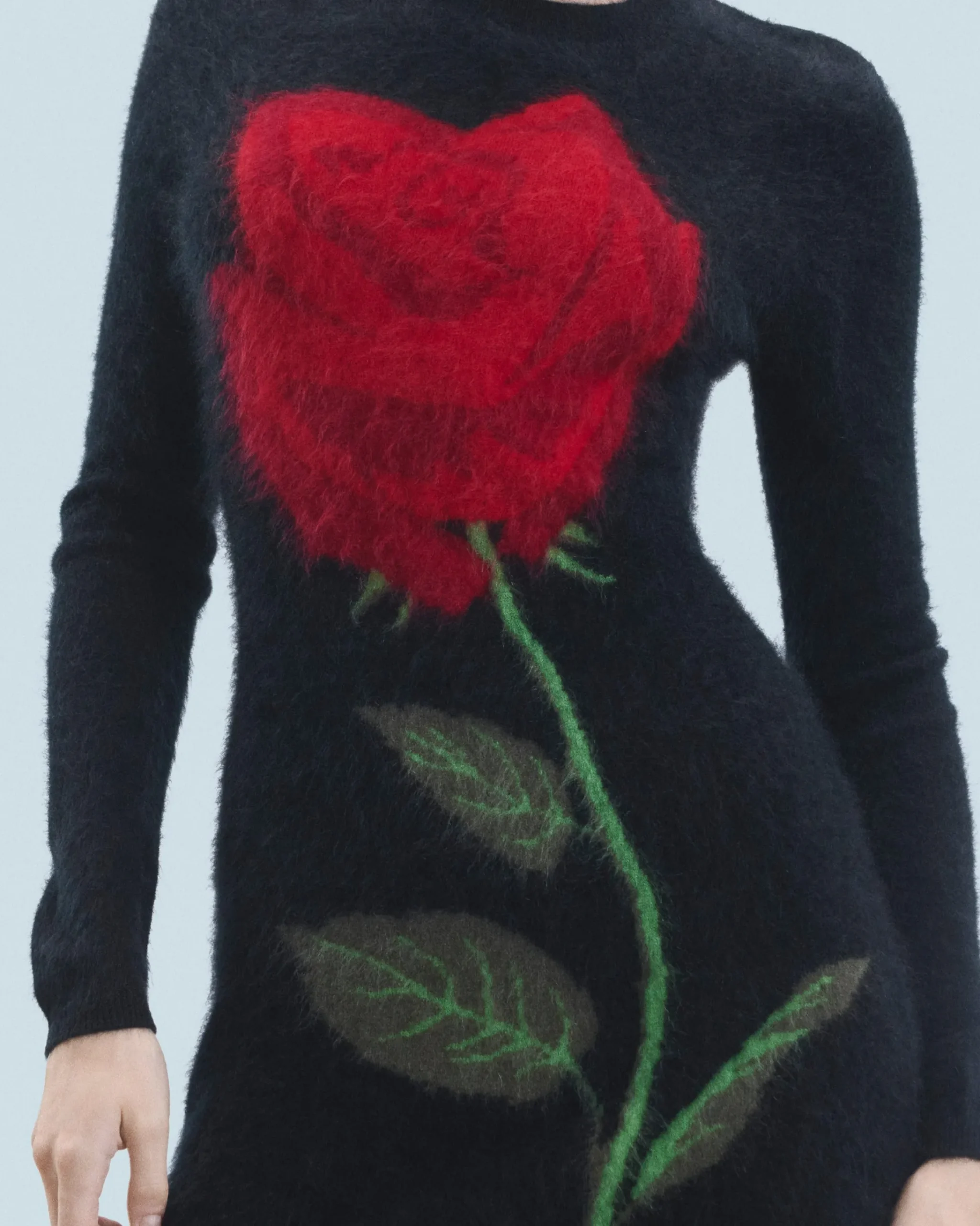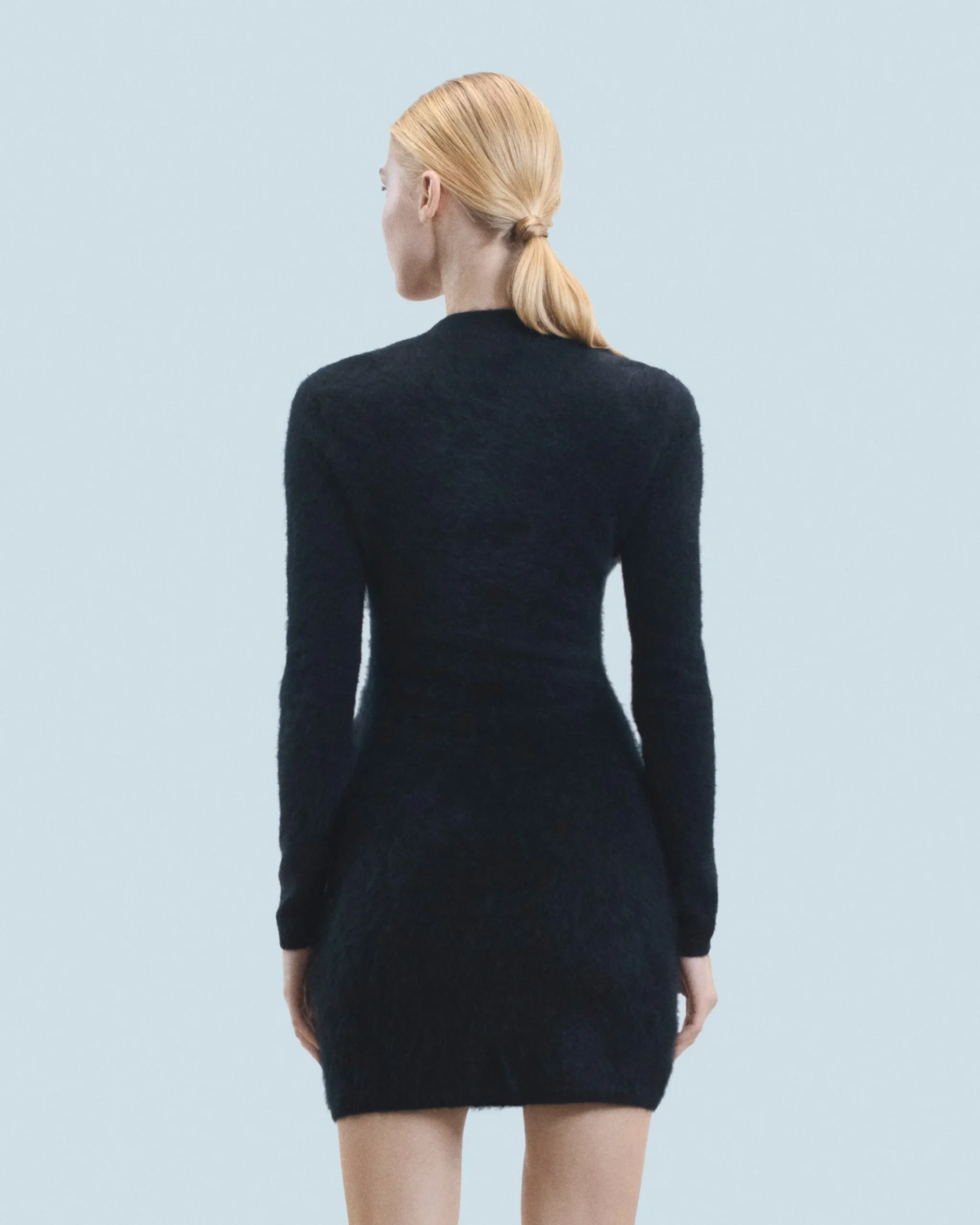 Elegante e audace, questo vestito corto e slim è impreziosito da un fiore delicato sul davanti per dare un tocco di freschezza al tuo stile. Confezionato in cashmere spazzolato, presenta uno scollo tondo e maniche lunghe.