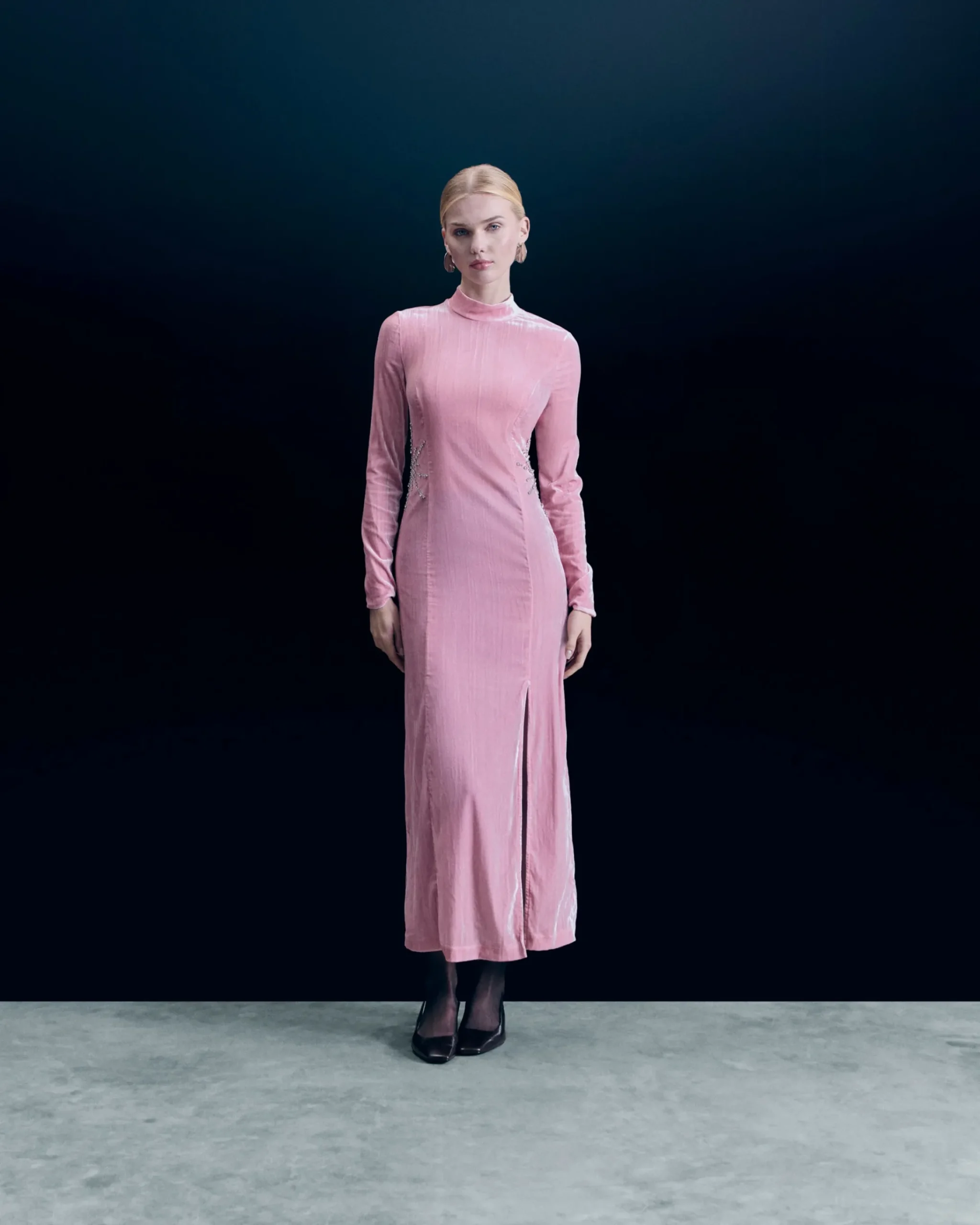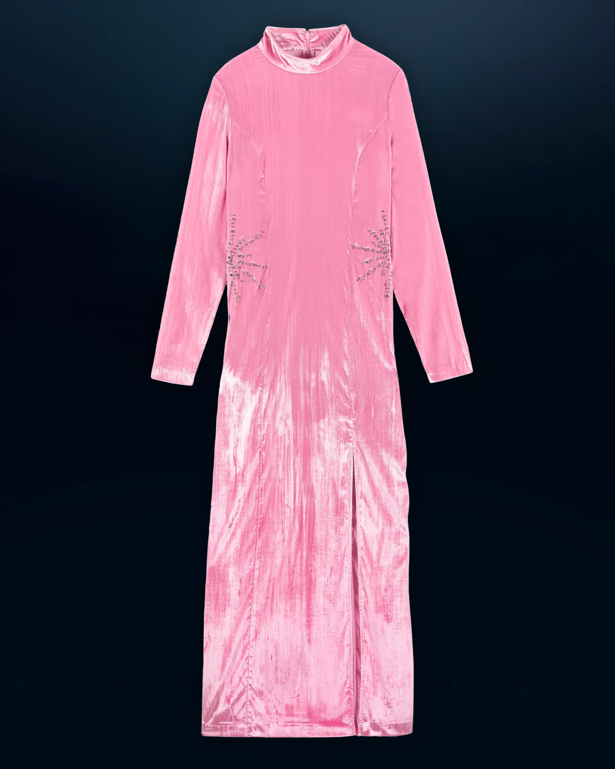 Con uno scollo tondo e maniche lunghe, questo vestito lungo e aderente seduce con il suo taglio perfetto e le sue linee decise. La sua silhouette slanciata è valorizzata da un girovita impreziosito da strass scintillanti. Abbinatela a una giacca strutturata e a delle décolleté e sarete pronte a illuminare la serata.