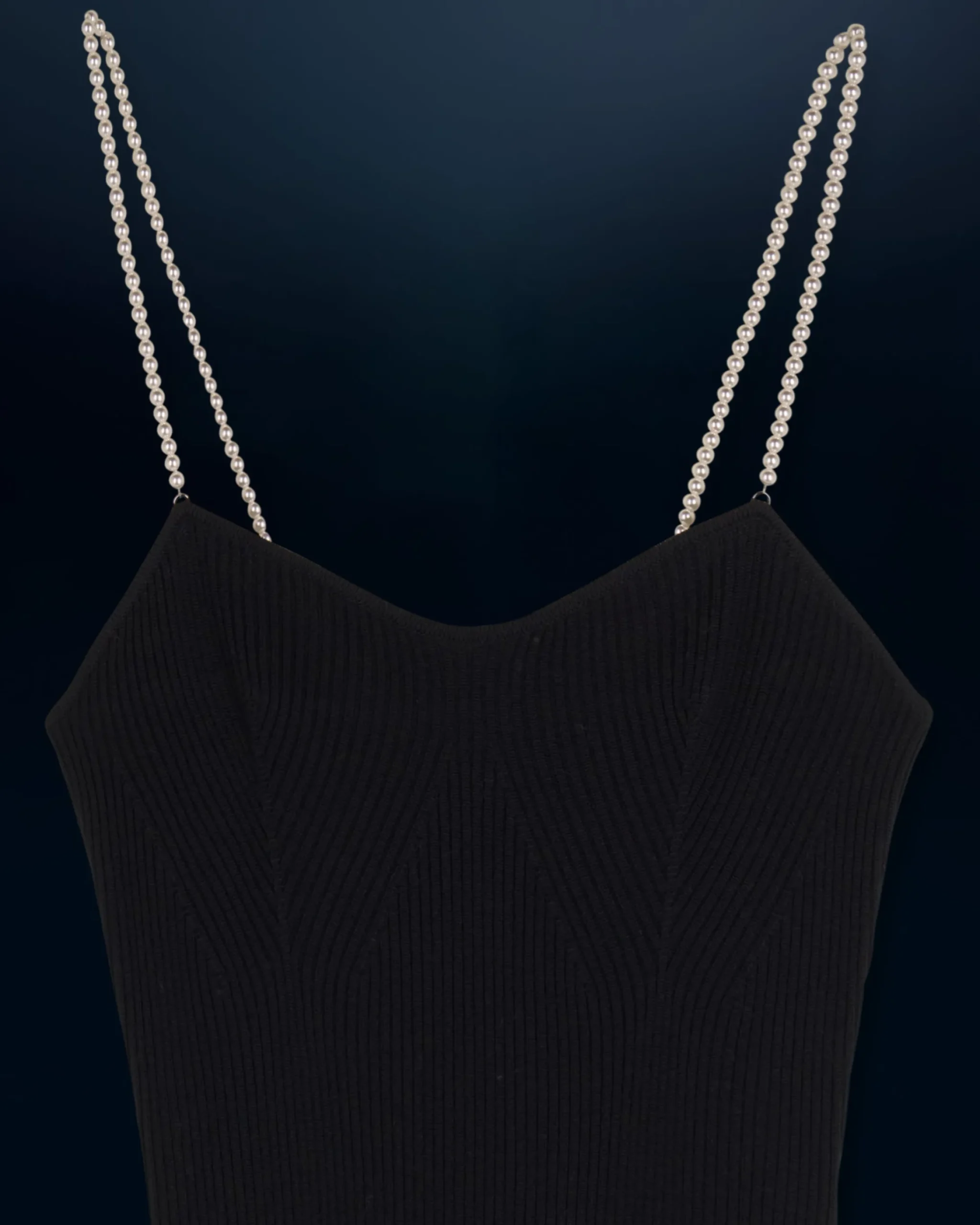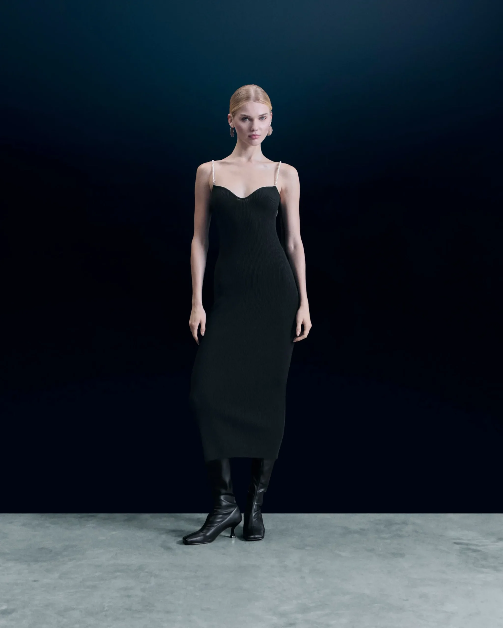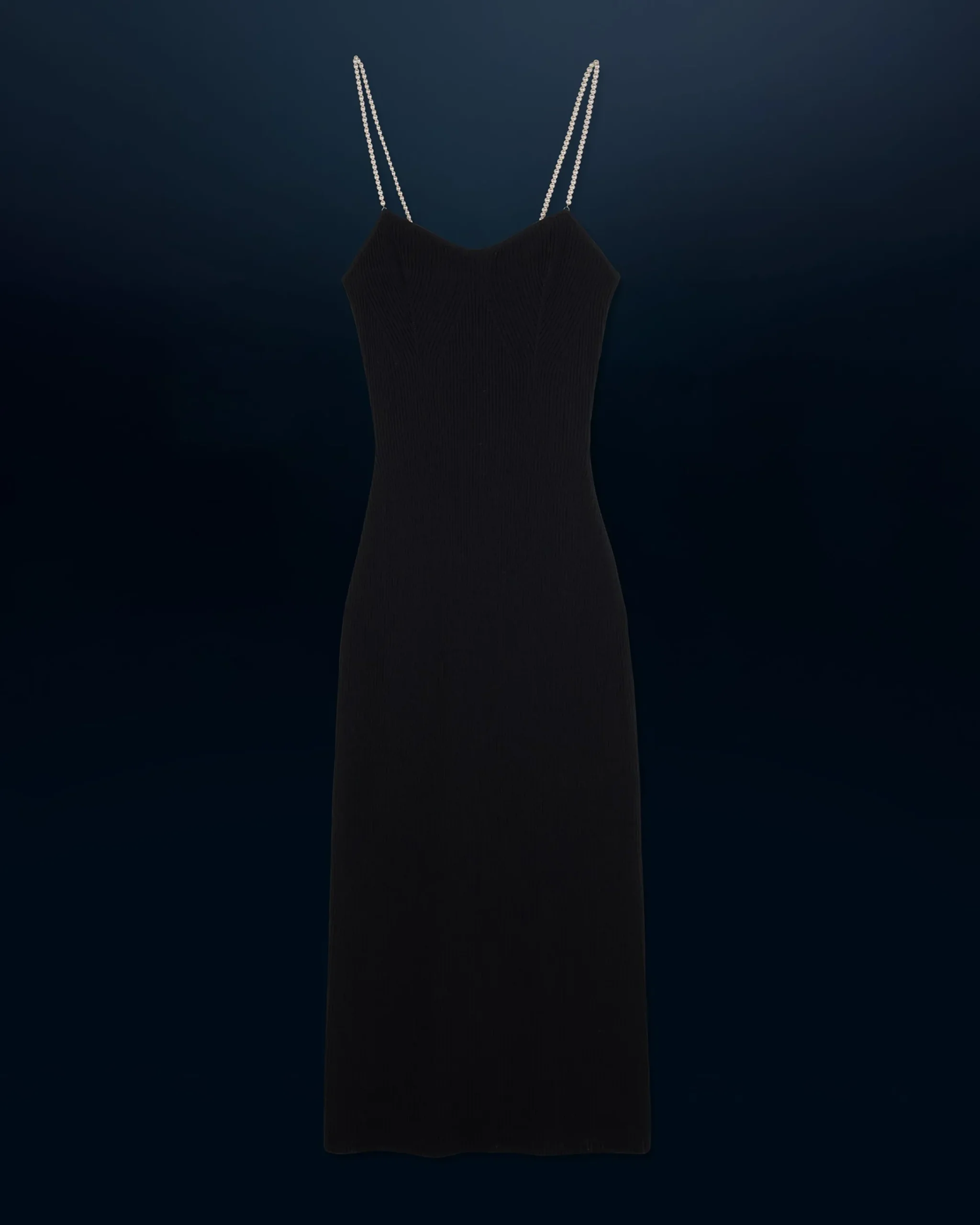 Realizzato in lana merino certificata RWS (Responsible Wool Standard), questo vestito lungo e a coste caratterizza una silhouette audace e sofisticata. Si indossa come una seconda pelle, con la sua scollatura a cuore e le spalline di perline argentate che creano un sottile gioco di luci. Perfetto per la sera, da abbinare a un paio di décolleté e a una borsetta.