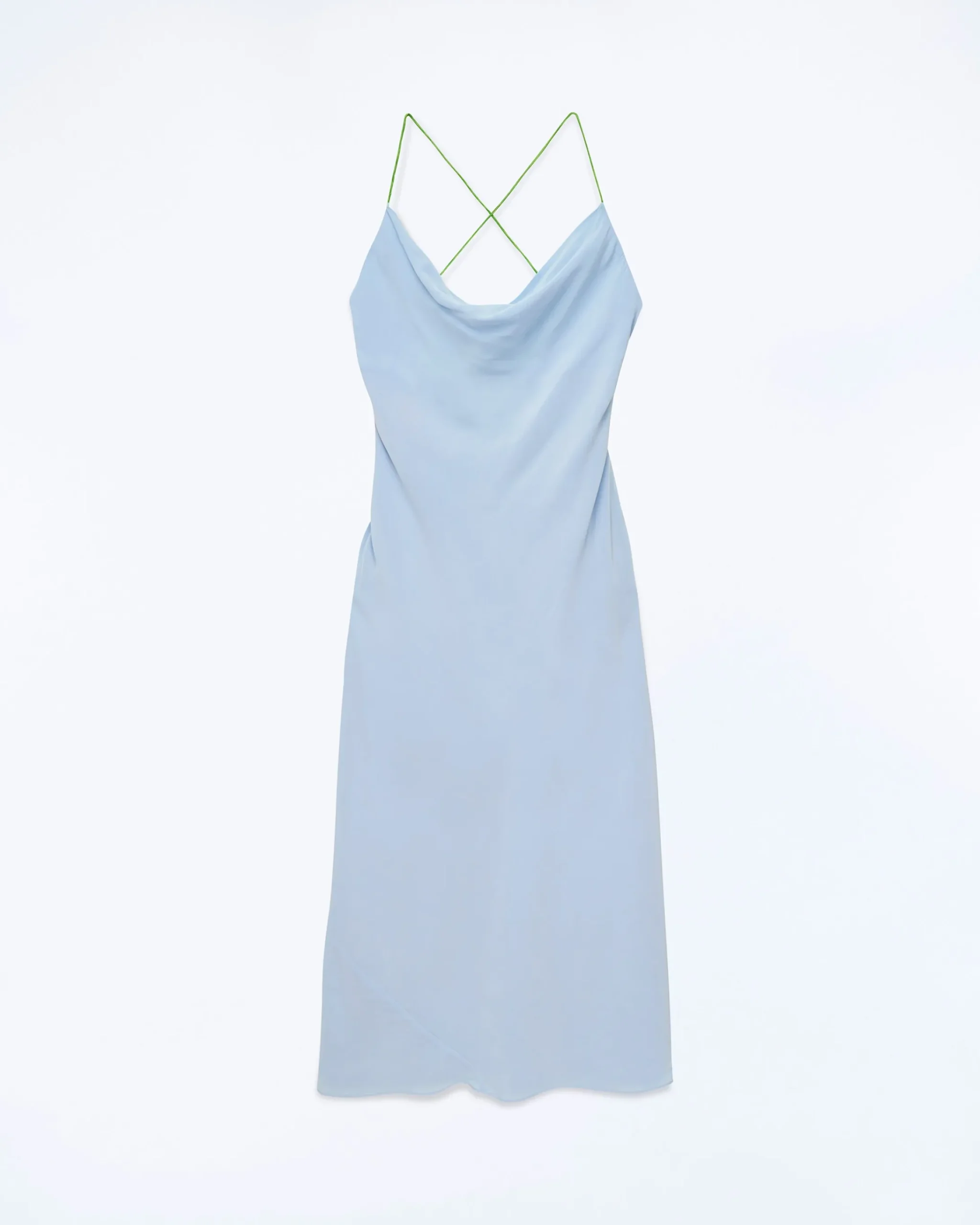 Con un’eleganza senza tempo e tutta l’audacia futurista, questo vestito lungo offre un look morbido e slim dal taglio svasato. Con spalline sottili a contrasto, presenta uno scollo tondo e una schiena scoperta impreziosita da laccetti incrociati da annodare.