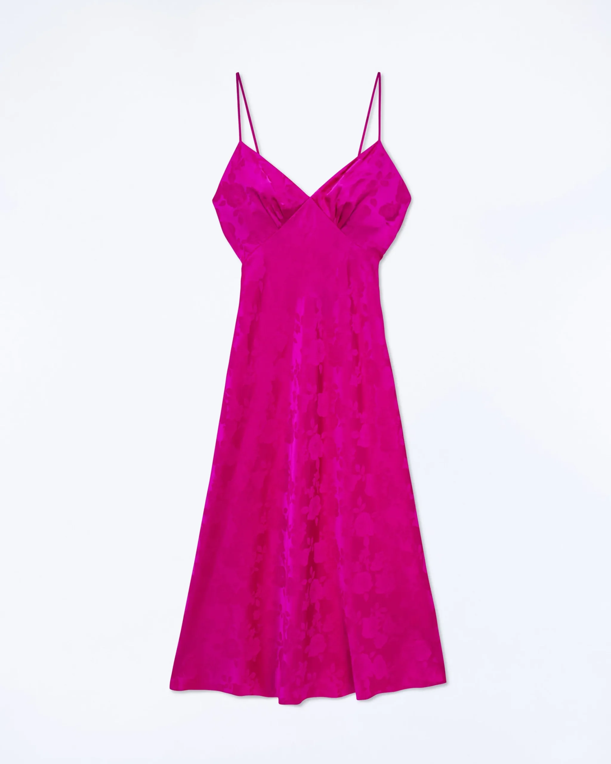 Lungo e satinato, il vestito Gigi dona al tuo stile un tocco di leggerezza. Confezionato in raso di seta impreziosito da una stampa floreale, presenta spalline sottili e uno scollo a V.
