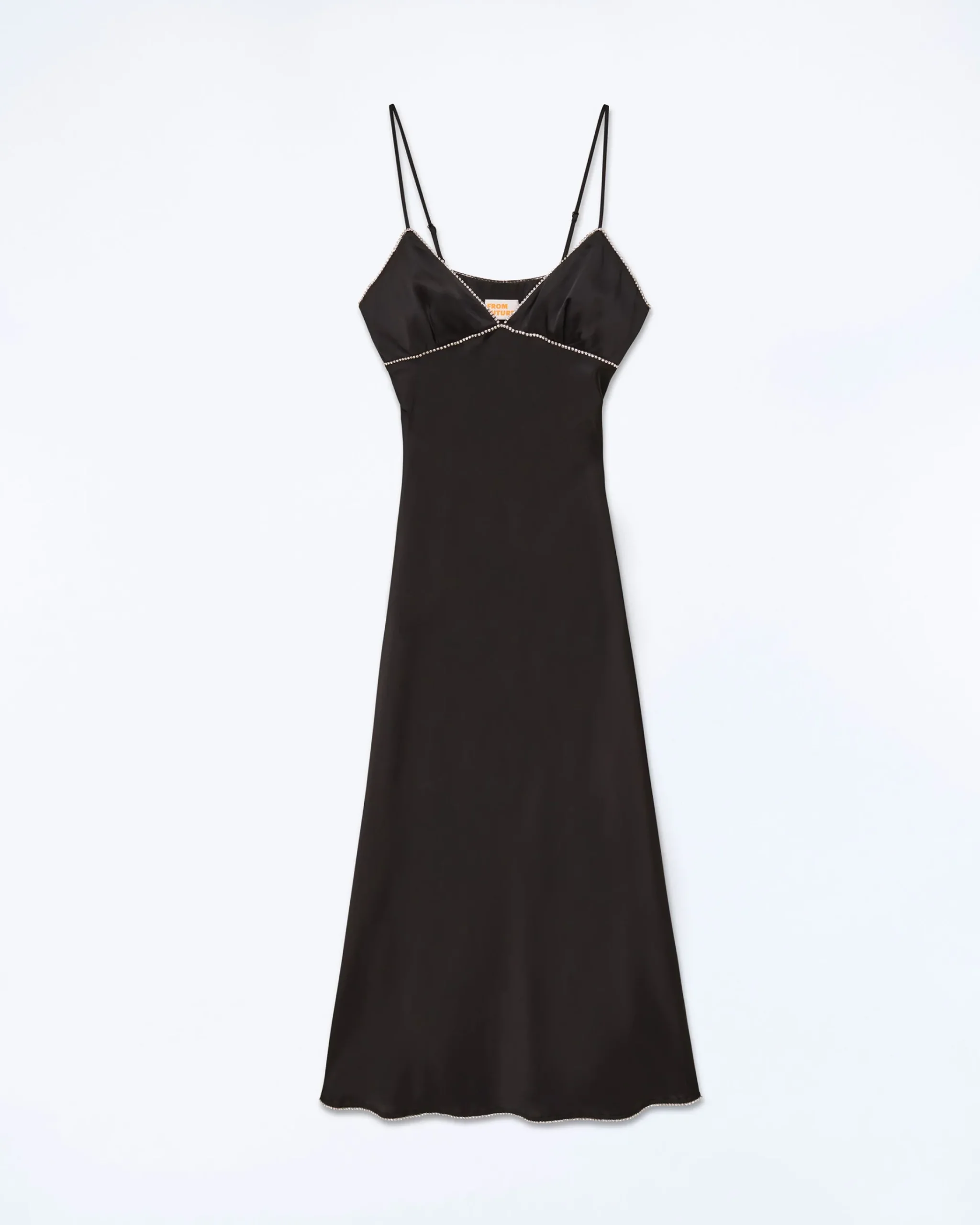 Impregnato d’eleganza, il vestito lungo e slim Tess in raso di seta è impreziosito da dettagli audaci. Con spalline sottili regolabili, presenta uno scollo a V con bordi ornati di strass e una gonna morbida.