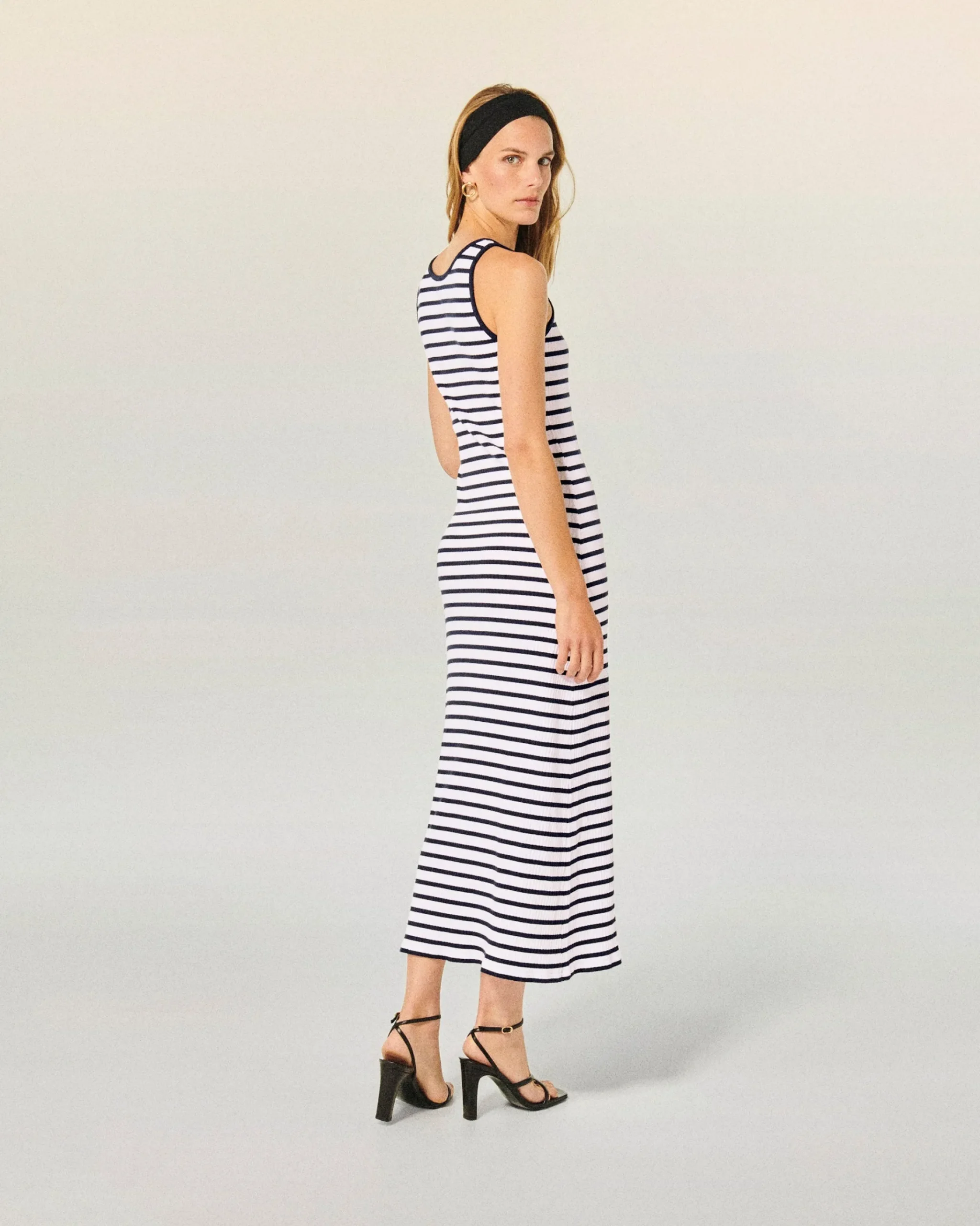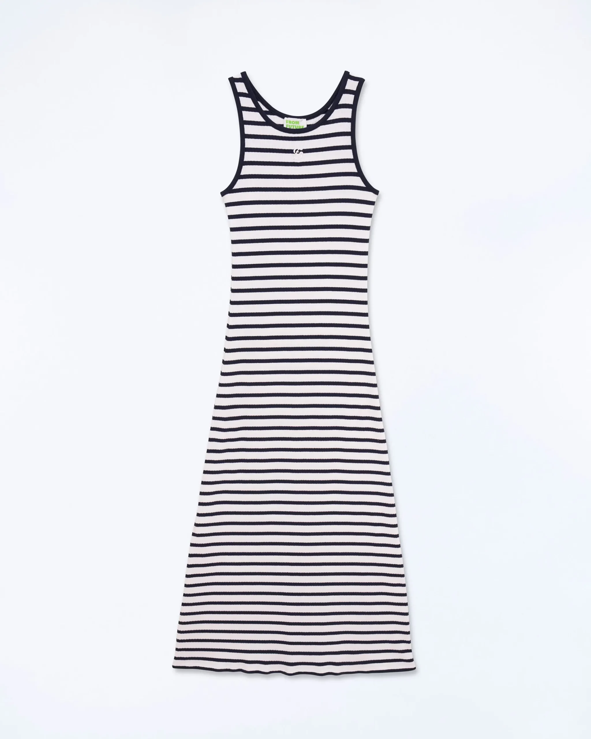 Impreziosito dalla firma FF, questo vestito lungo sfoggia un gioco di righe di ispirazione marinara. Con uno scollo tondo e un taglio a spalla scesa, presenta bordi a contrasto per strutturare il tuo look futurista con eleganza.