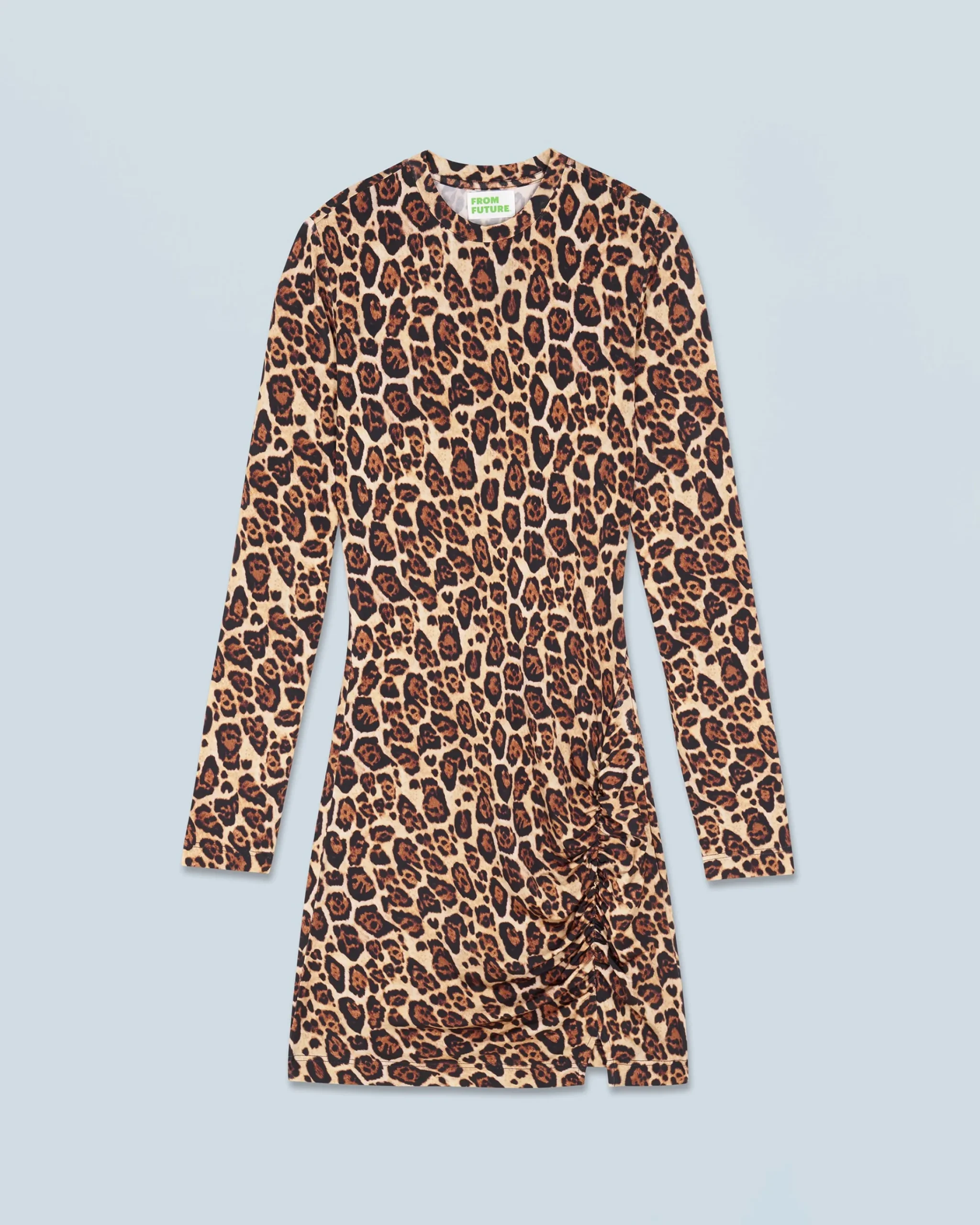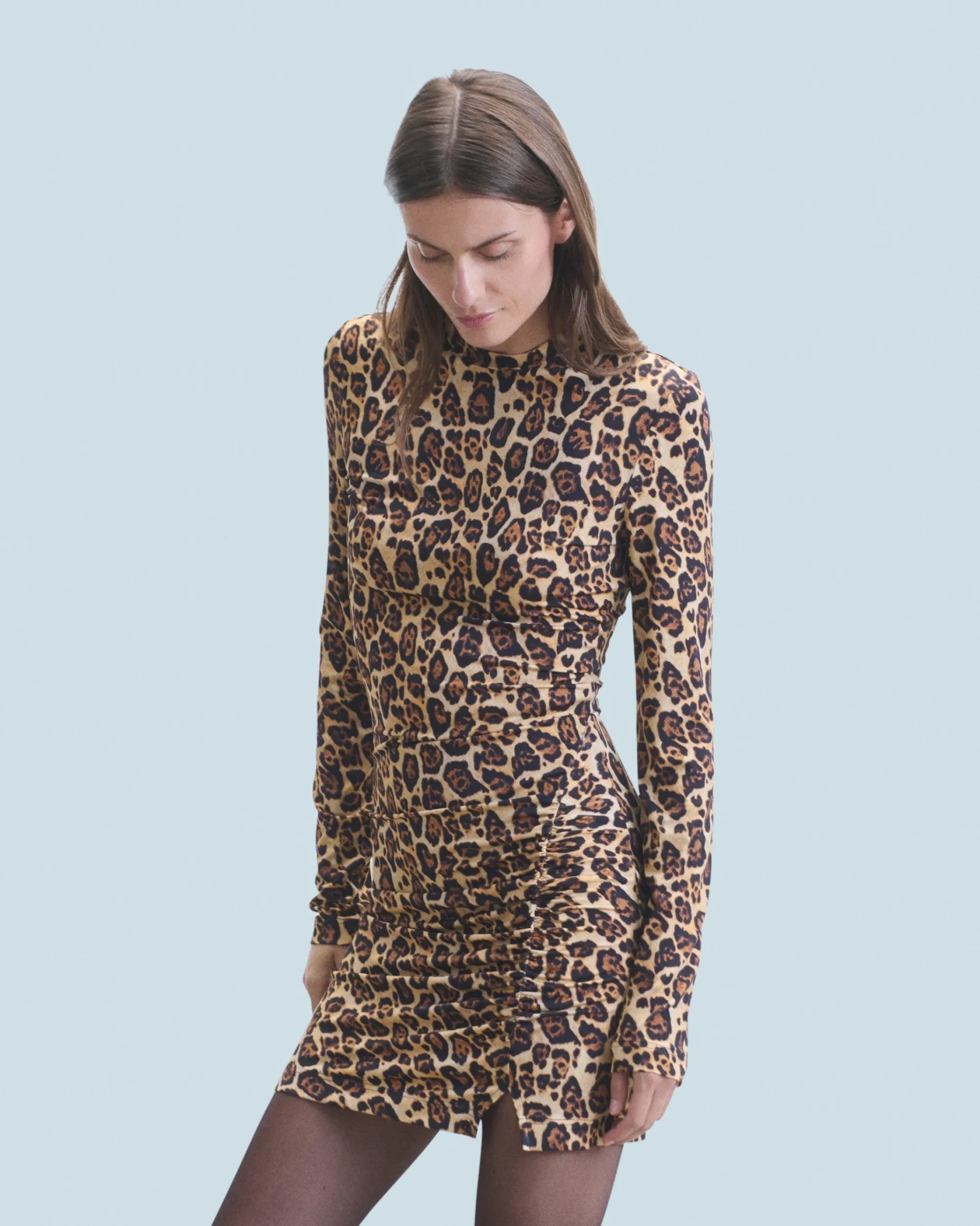 La vita è aggiustata e i volumi rivisitati in questo abito corto decorato con una stampa leopardata. Con maniche lunghe e scollo tondo, rivela una gonna incrociata leggermente spaccata. Da indossare come una seconda pelle, valorizza il tuo look con sandali con tacco o sneakers.