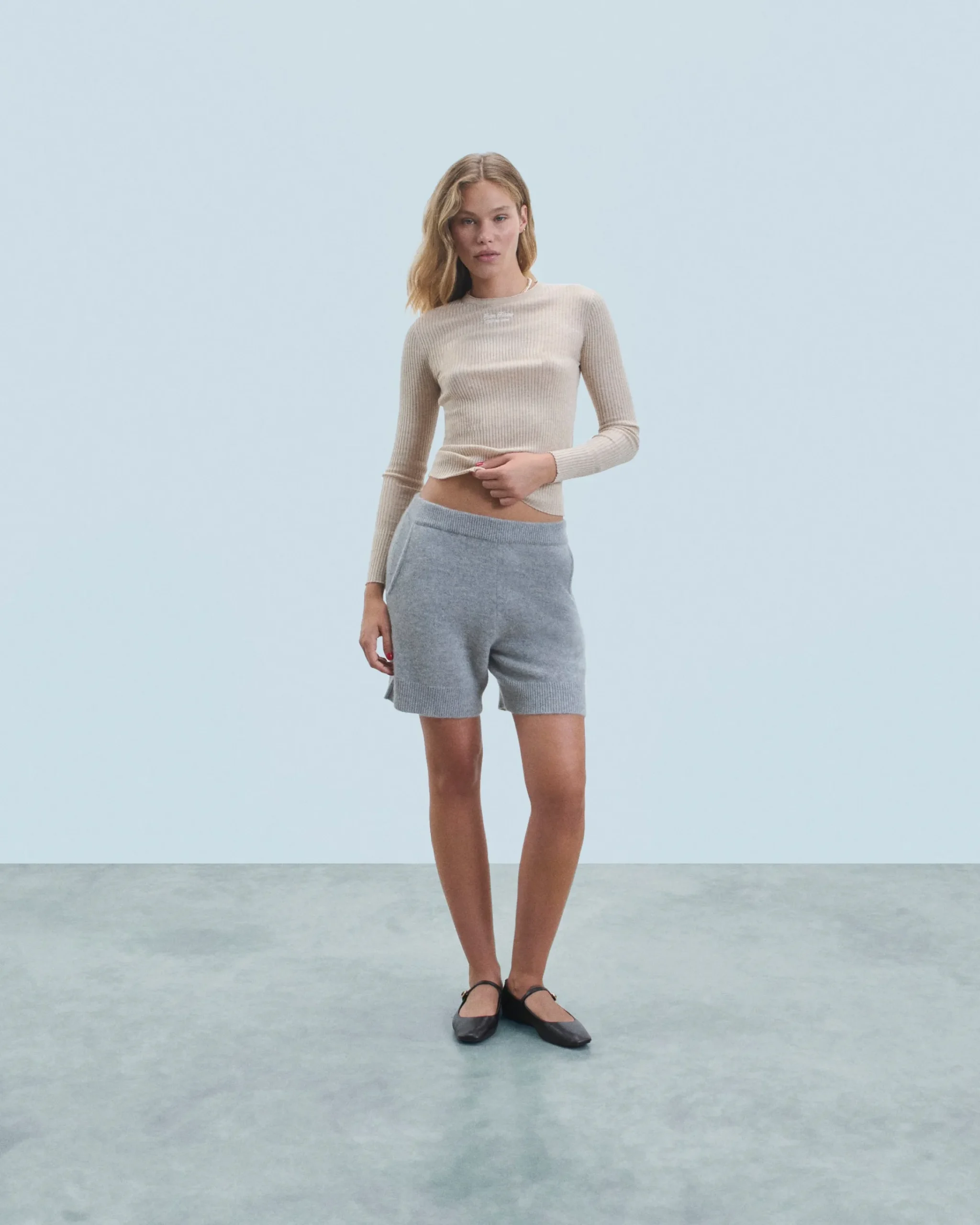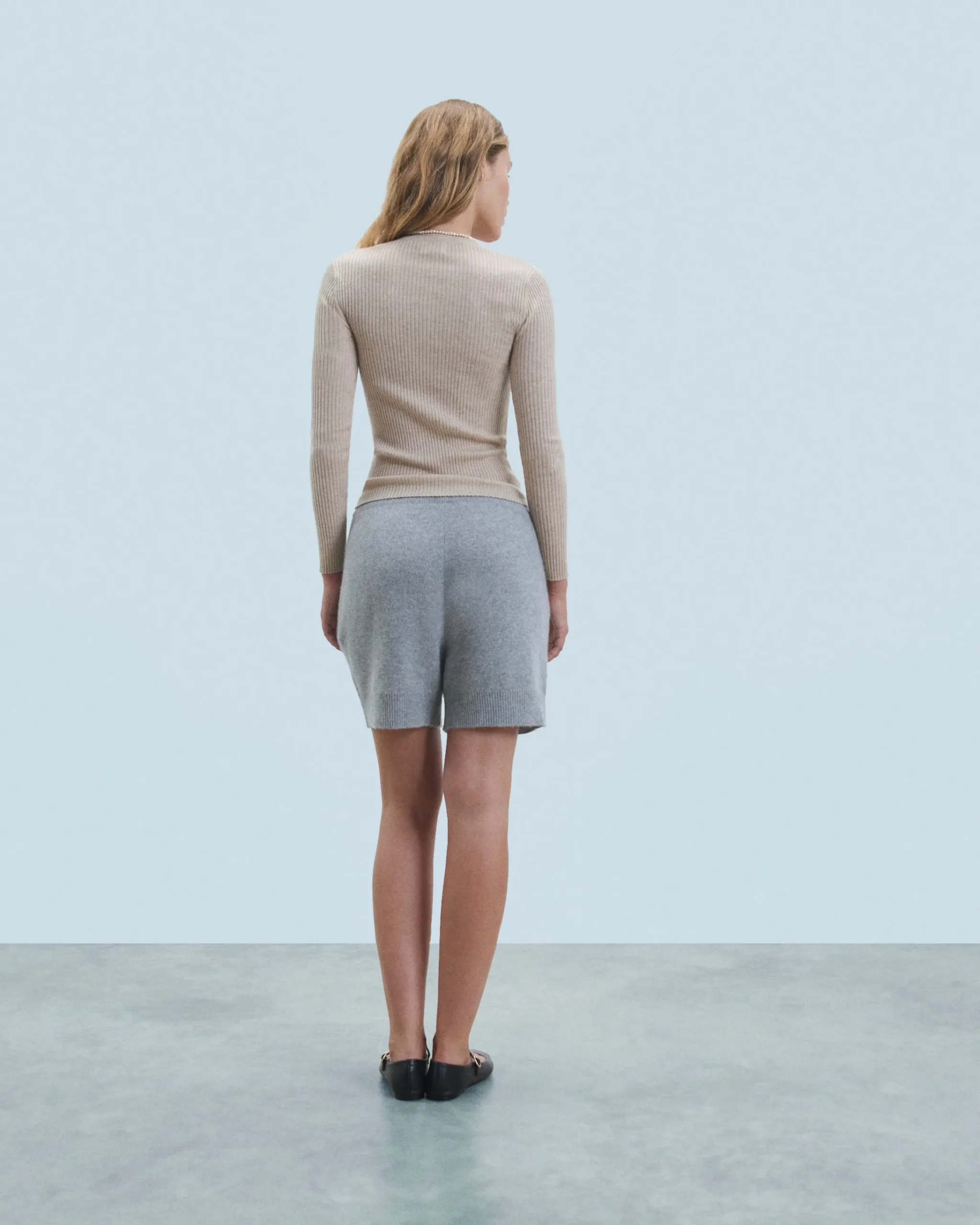 Una maglia morbida è protagonista di questi bermuda realizzati in cashmere. Regolato in vita, presenta due tasche e bordi a coste. Con uno stile chic e casual, si indossa facilmente con una t-shirt ampia o una camicia fluida. – Bermuda in cashmere certificato GCS® Donna – Vita elasticizzata – 2 tasche – Bordi a coste – Vestibilità regular – Il Good Cashmere Standard® (GCS) è uno standard indipendente per un cashmere più sostenibile e responsabile. Mira a migliorare il benessere delle capre da cashmere, le condizioni di lavoro degli allevatori e a proteggere l’ambiente.- Cashmere 4 fili