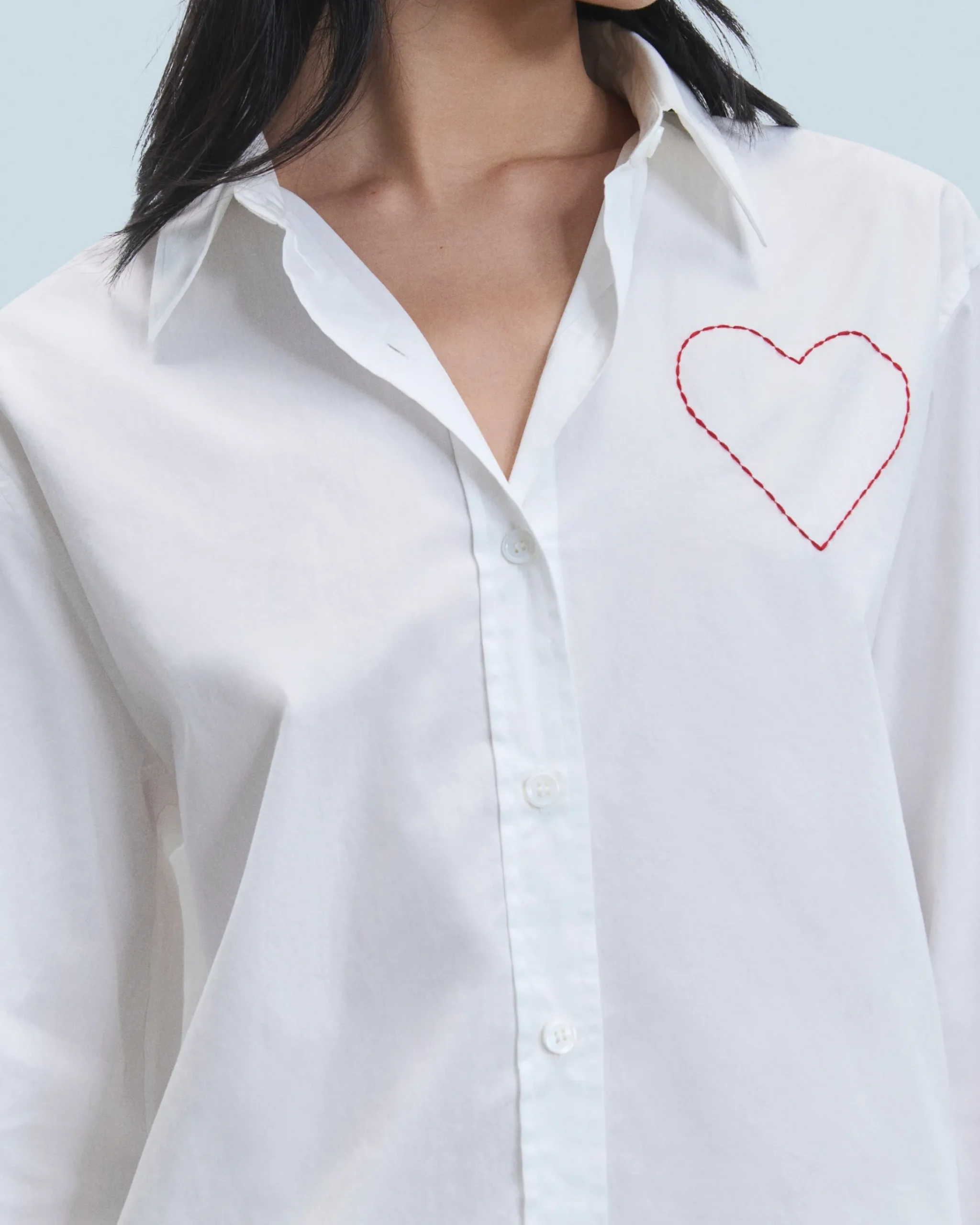 Una vera e propria dichiarazione, un cuore delicatamente ricamato appare su questa camicia in popeline di cotone. Caratterizzato da colletto a camicia e maniche lunghe, rivela una chiusura e polsini con bottoni per una silhouette chic e strutturata. Completa il tuo look con una gonna fluida o pantaloni larghi.