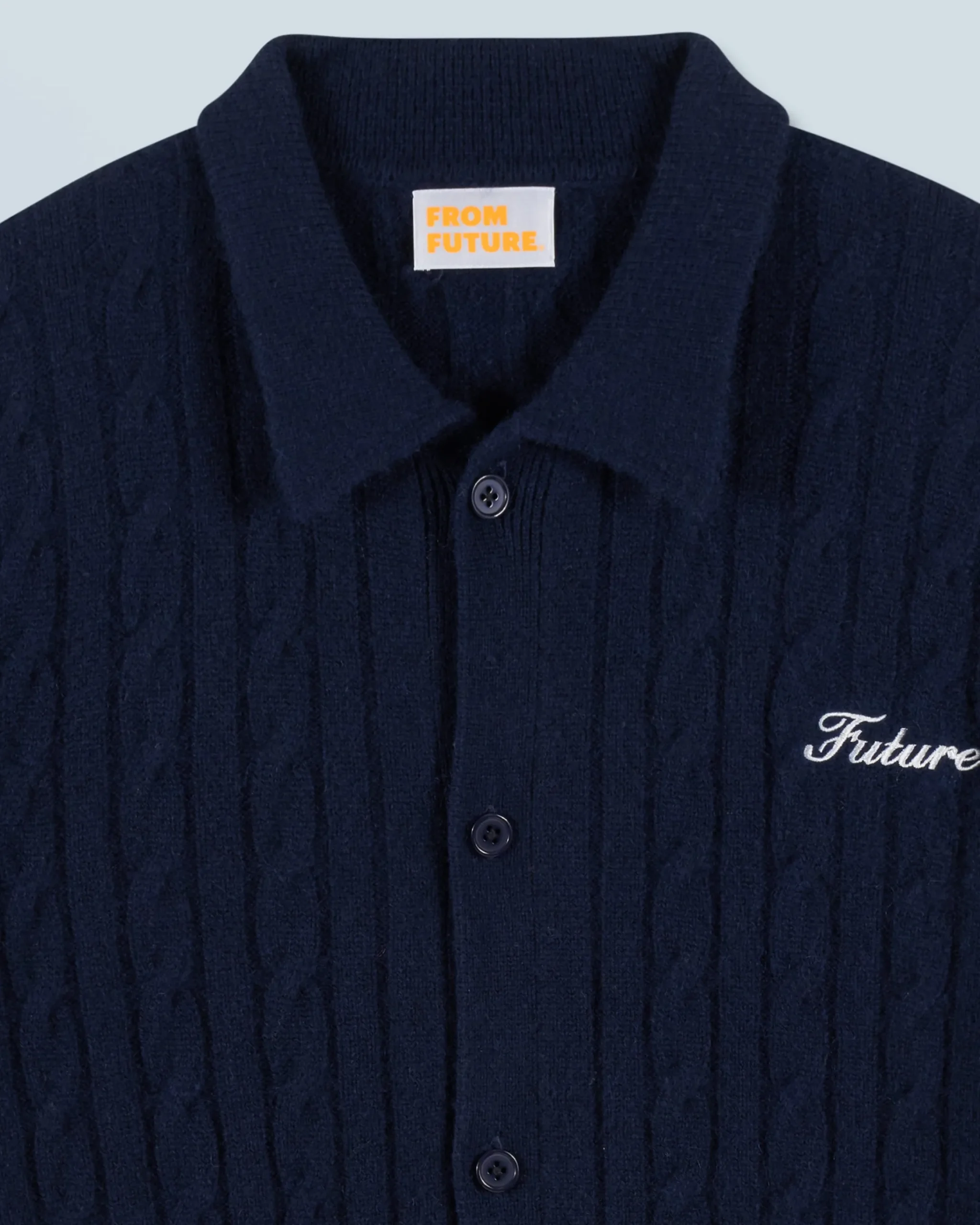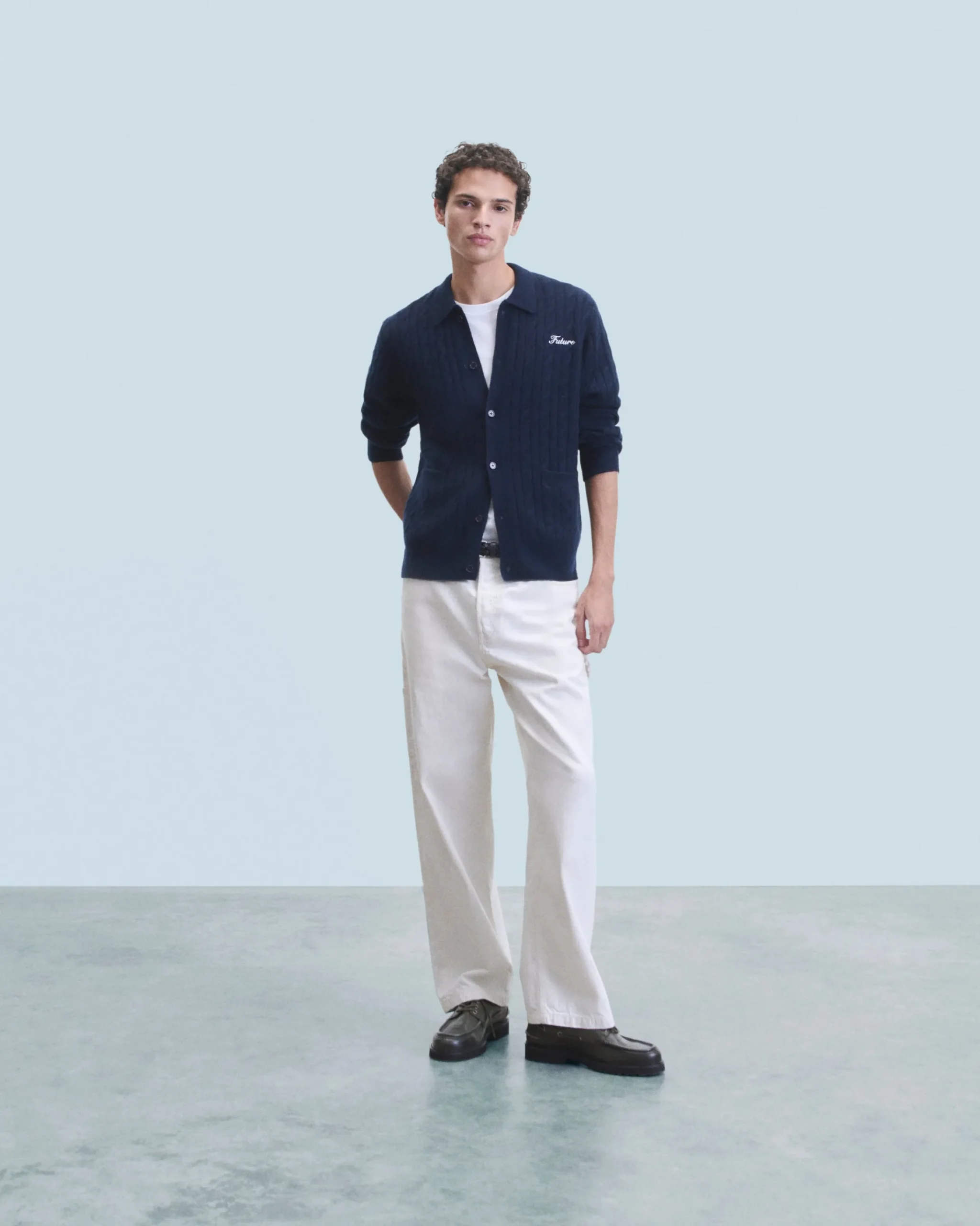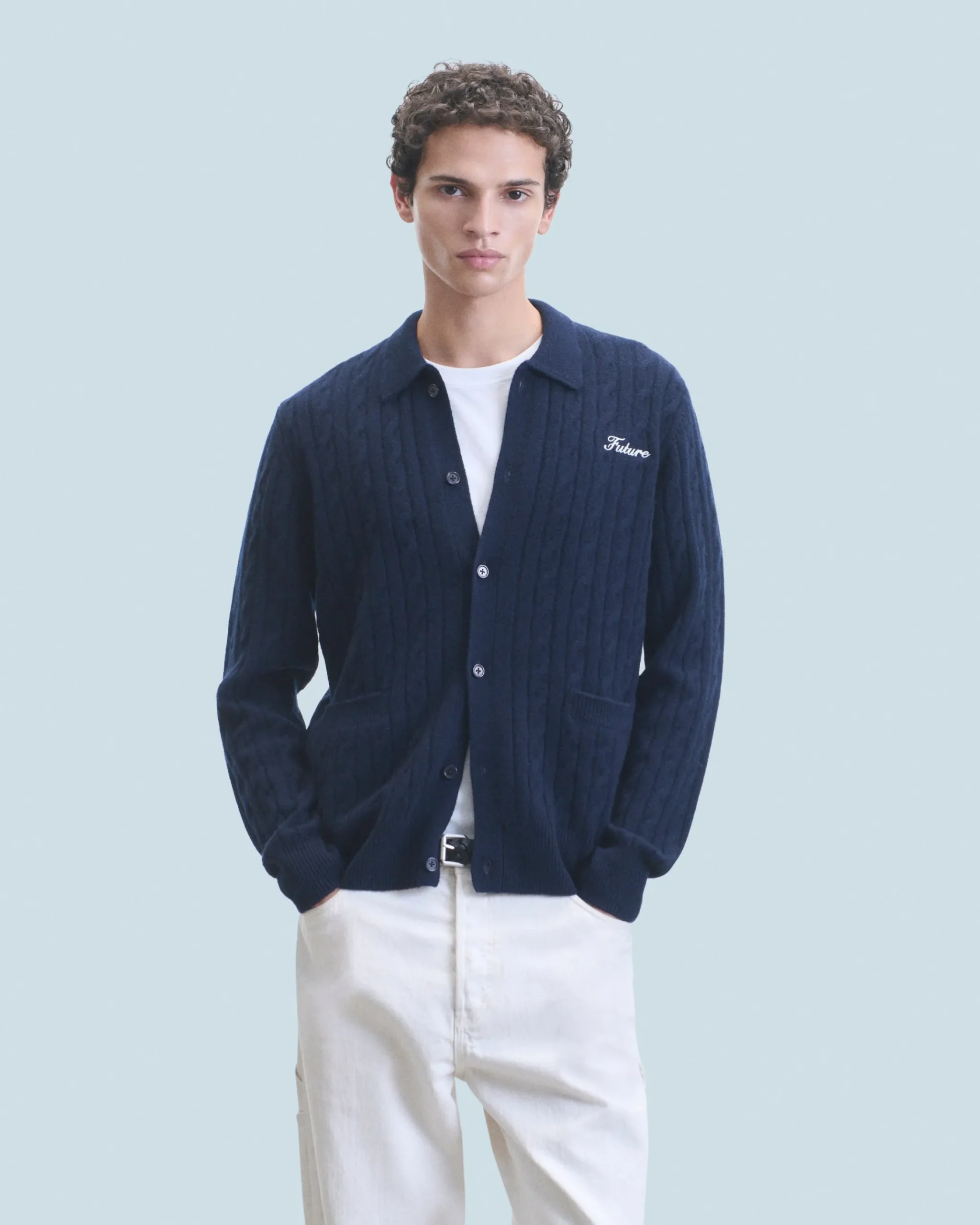 Impreziosita da dettagli intrecciati e dal ricamo “Future” sul petto, questa camicia a coste dona un look elegante e strutturato. Realizzata in cashmere 4 fili, presenta una chiusura a bottoni, maniche lunghe e bordi a coste. Infilala sopra una t-shirt e un paio di pantaloni da tailleur per un outfit chic e casual!