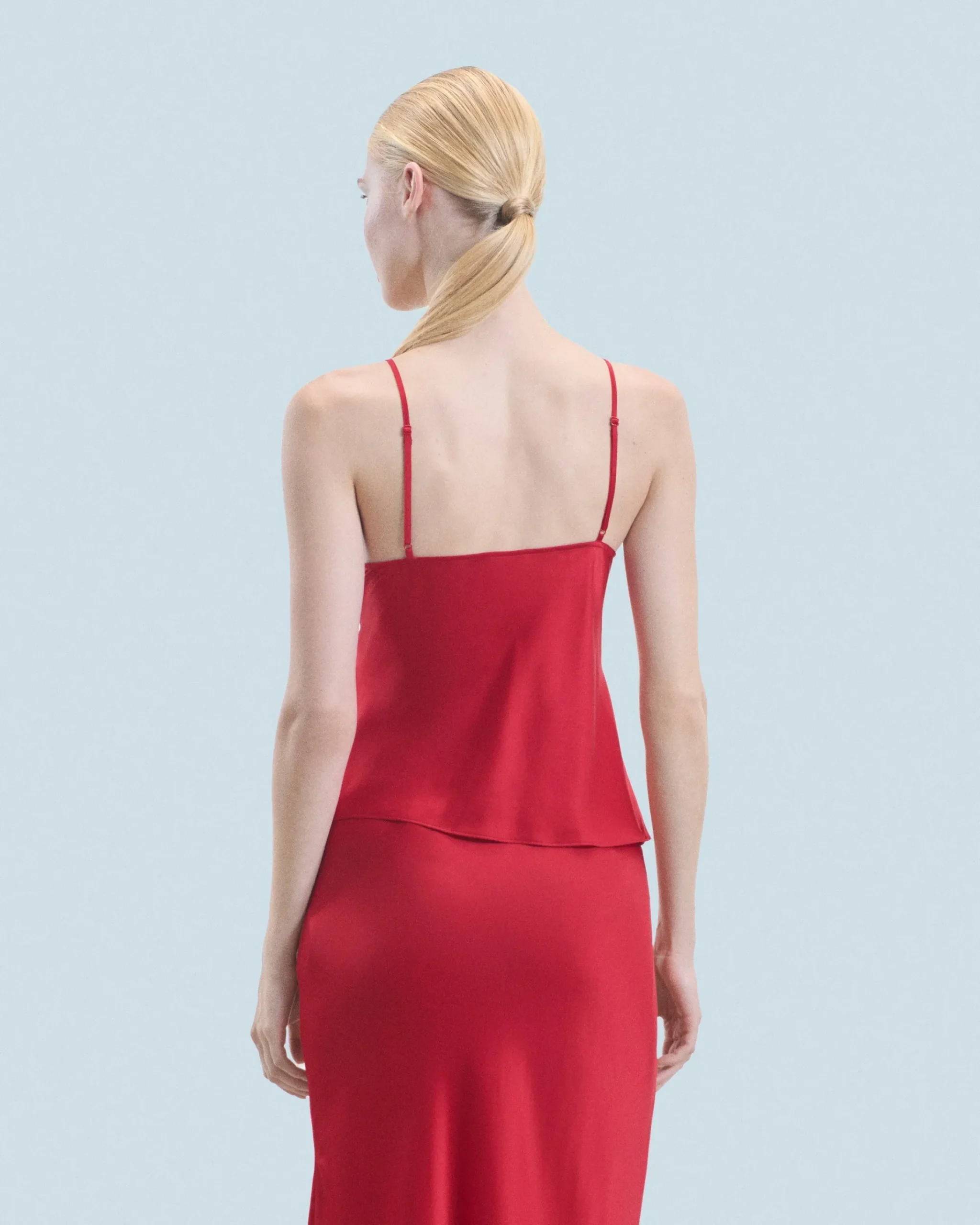 Realizzato in raso di seta leggero, lucido e setoso, questo top a canotta vanta un taglio impeccabile e dettagli audaci. Con spalline sottili, presenta uno scollo a V. Si indossa sia di giorno che di sera, è perfetto da abbinare a una gonna morbida o a dei pantaloni a gamba larga.
