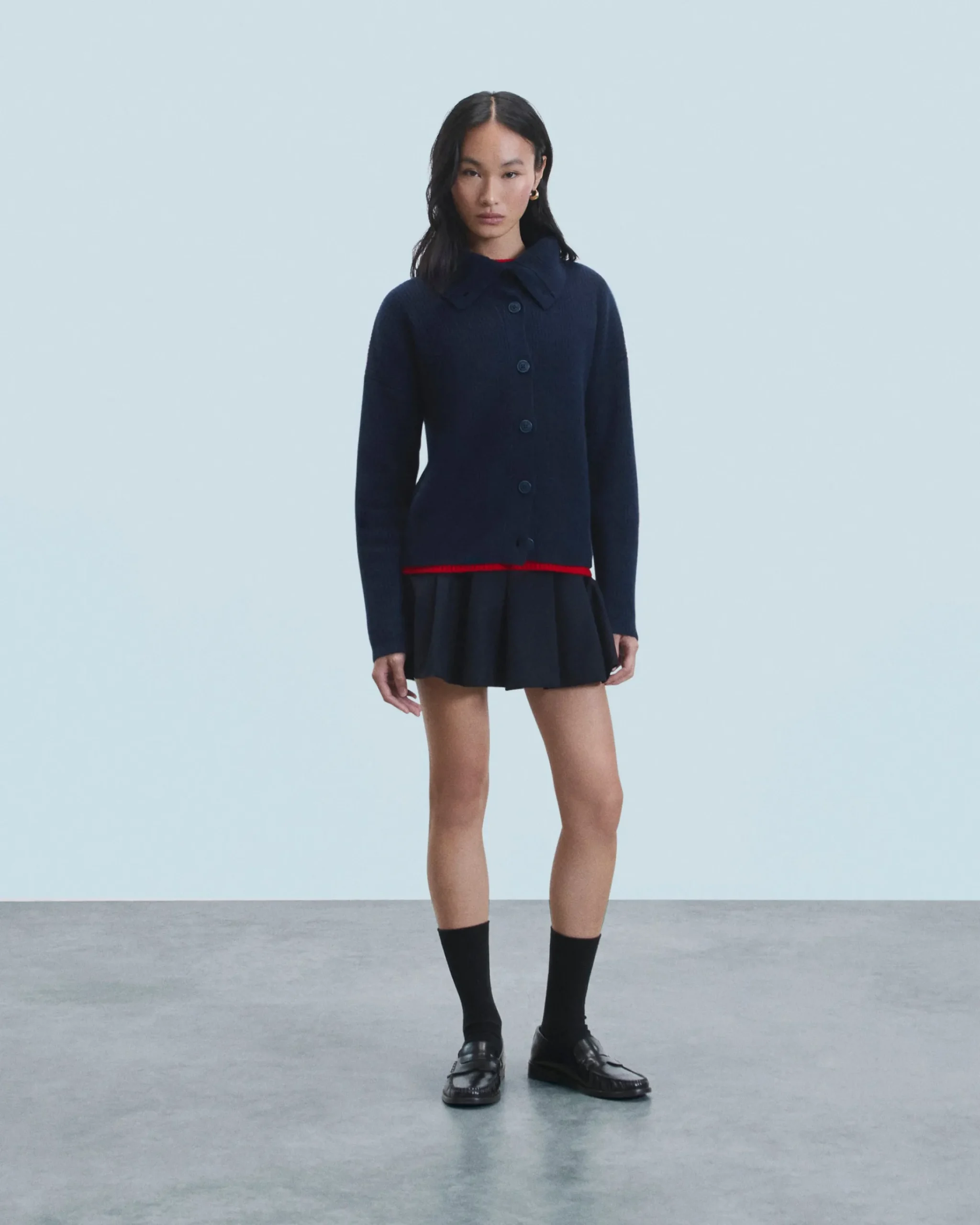 Questo cardigan in cashmere, con maniche lunghe e bordi a coste, ti avvolgerà di morbidezza in questa stagione. La chiusura con bottoni consente di regolare il colletto in base al proprio umore: aperto per un look casual o alto per uno stile più deciso.