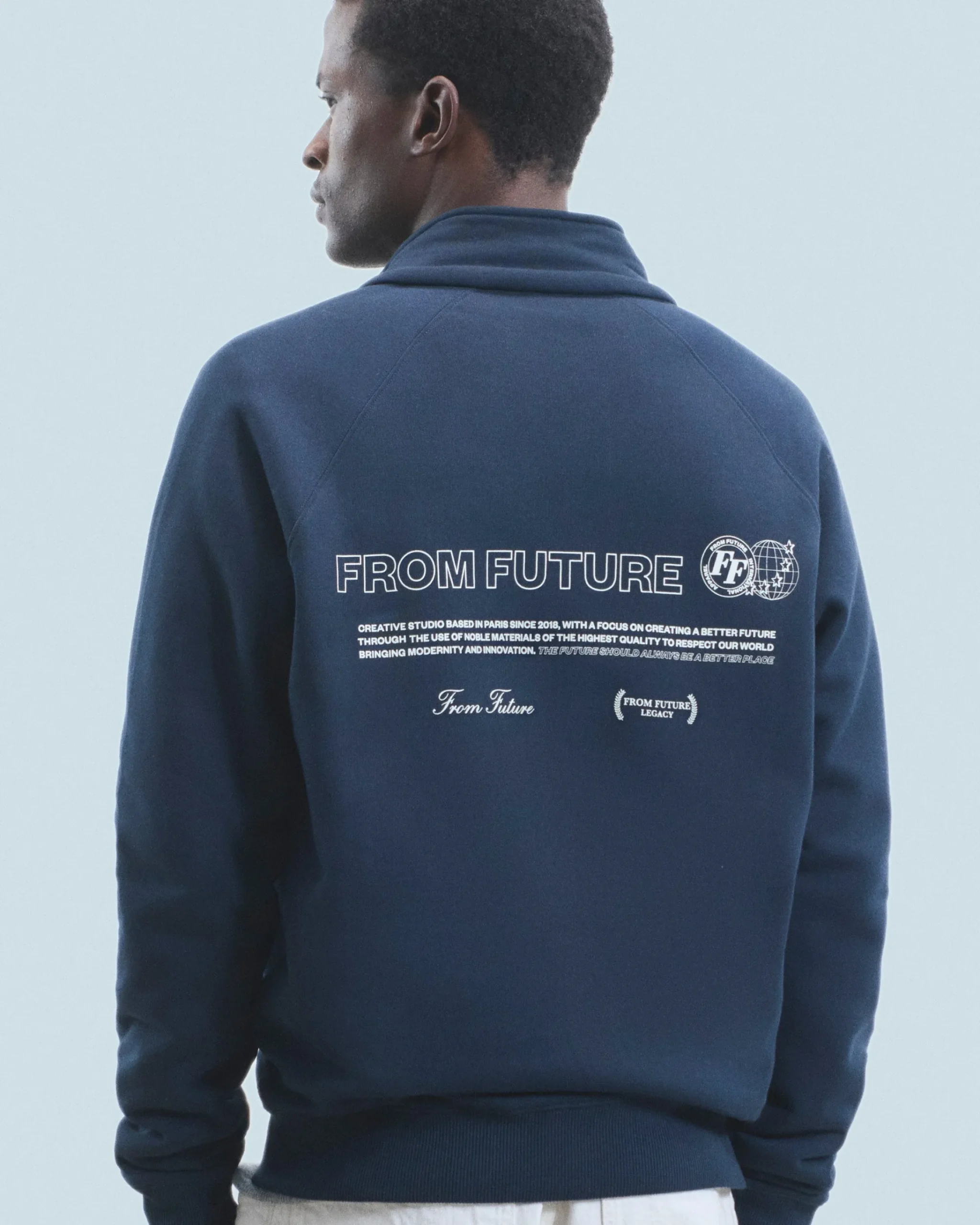 Stile acrobatico per questo gilet in felpa di cotone decorato con motivi “From Future Community” sul davanti e sul retro. A maniche lunghe, rivela una chiusura con zip e due tasche laterali.