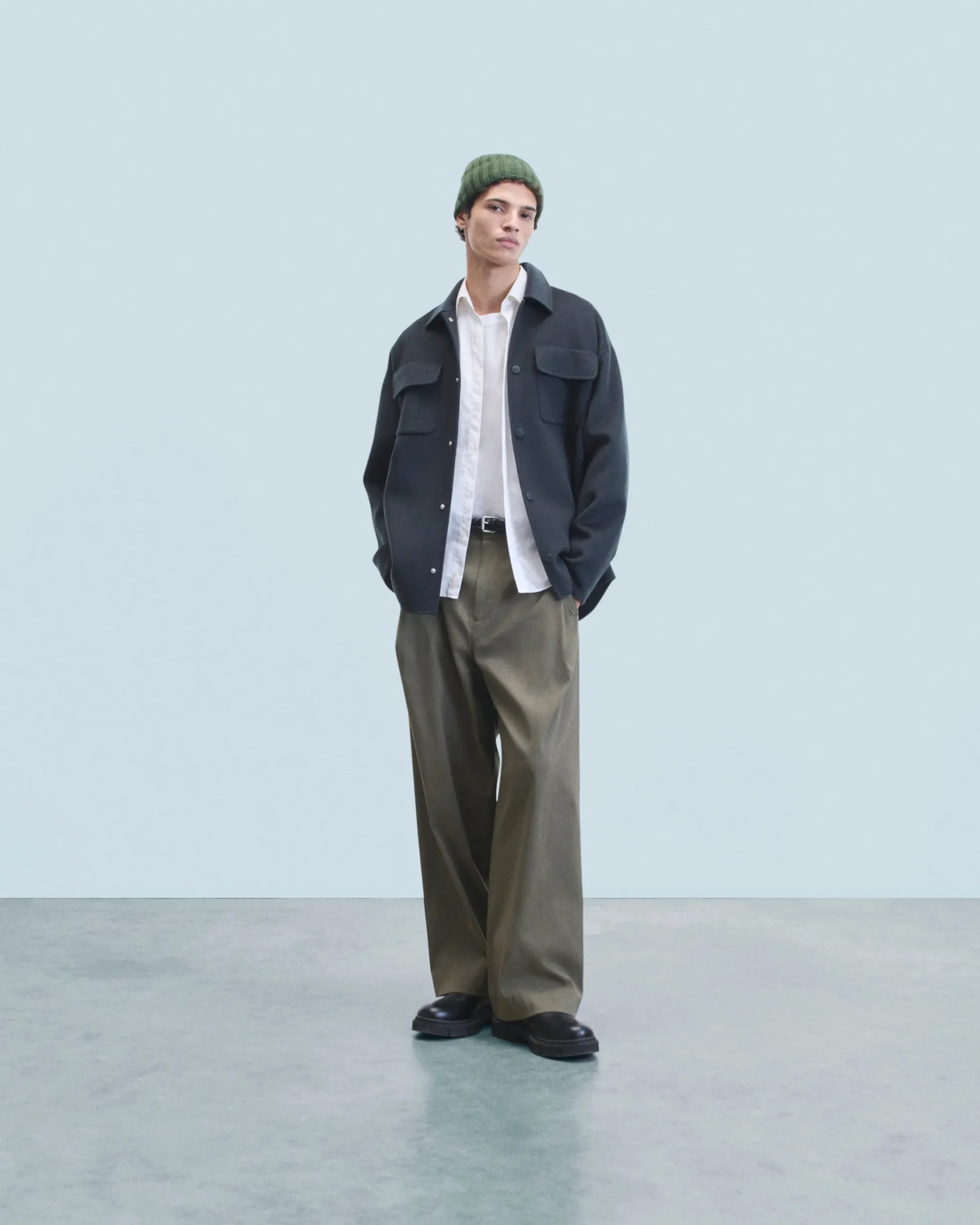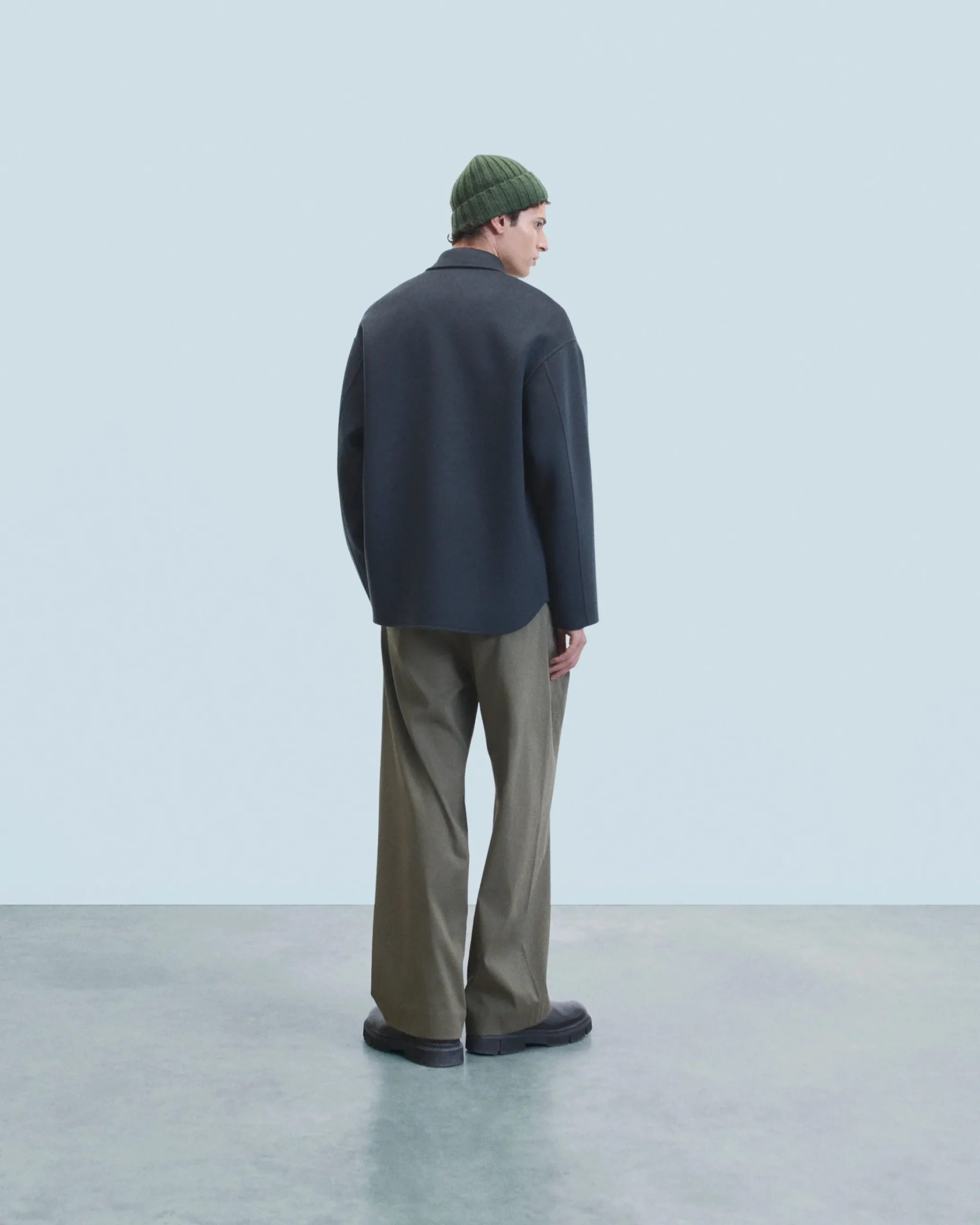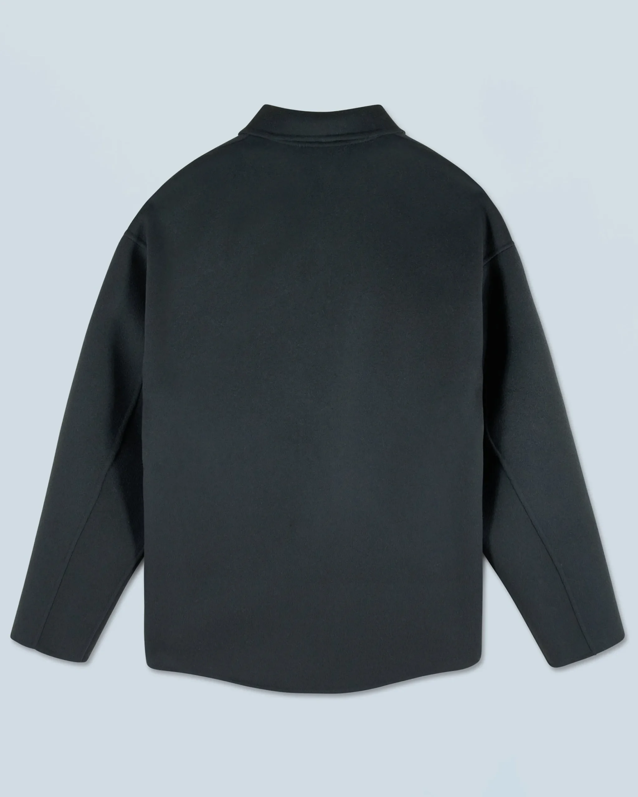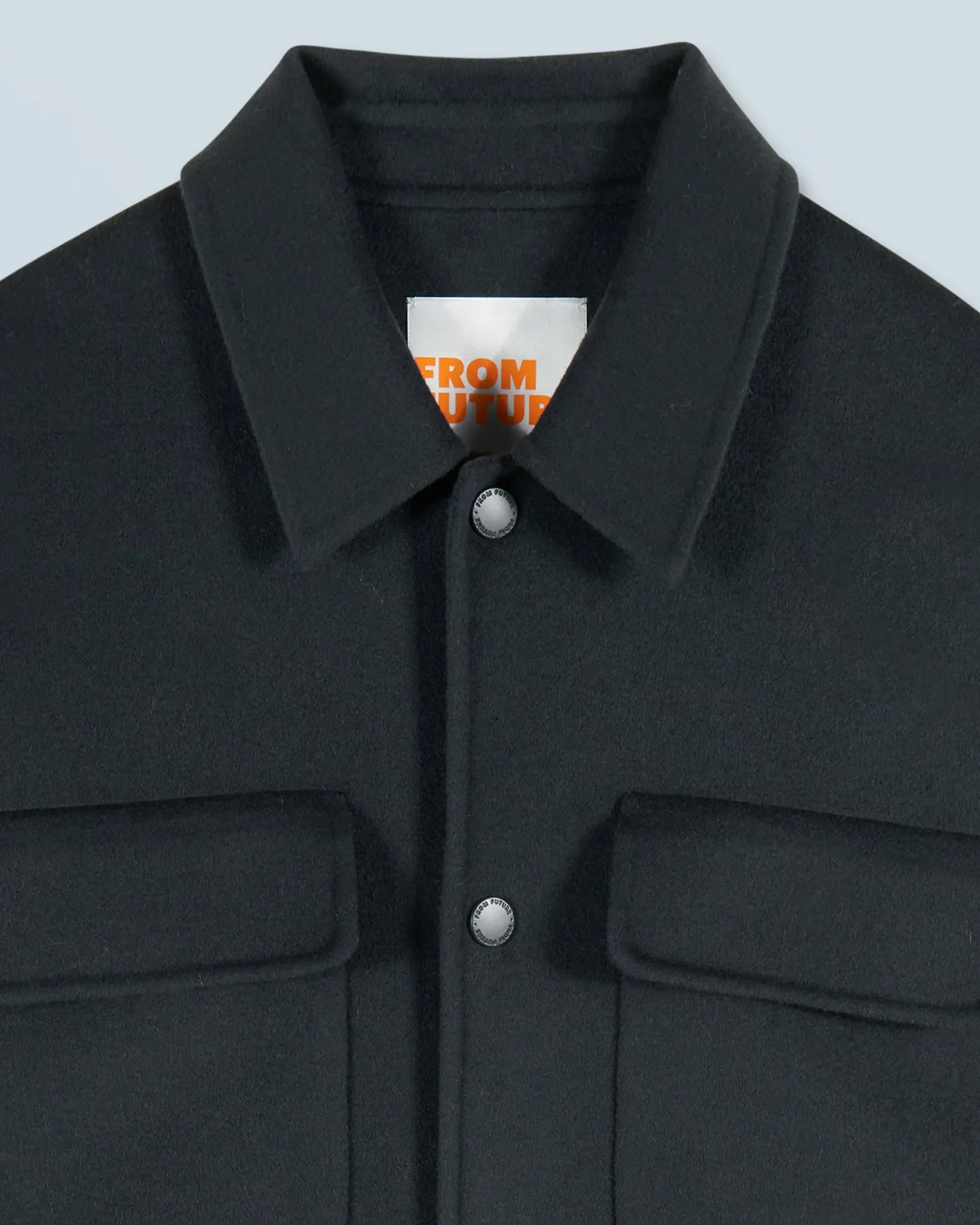 Con il suo taglio impeccabile e le sue linee decise, questa overshirt in lana double face riscalderà il tuo look con un tocco morbido. Caratterizzata da un colletto a camicia e una chiusura con bottoni a pressione, presenta due tasche con patta applicate sul petto e due tasche laterali applicate. Un pezzo essenziale per la stagione, che si abbina sia agli outfit casual che a quelli più sofisticati.