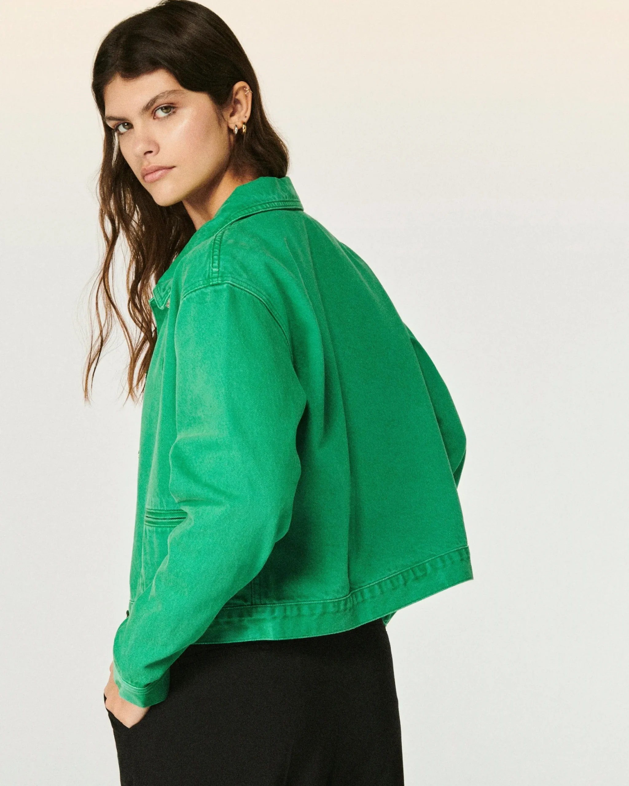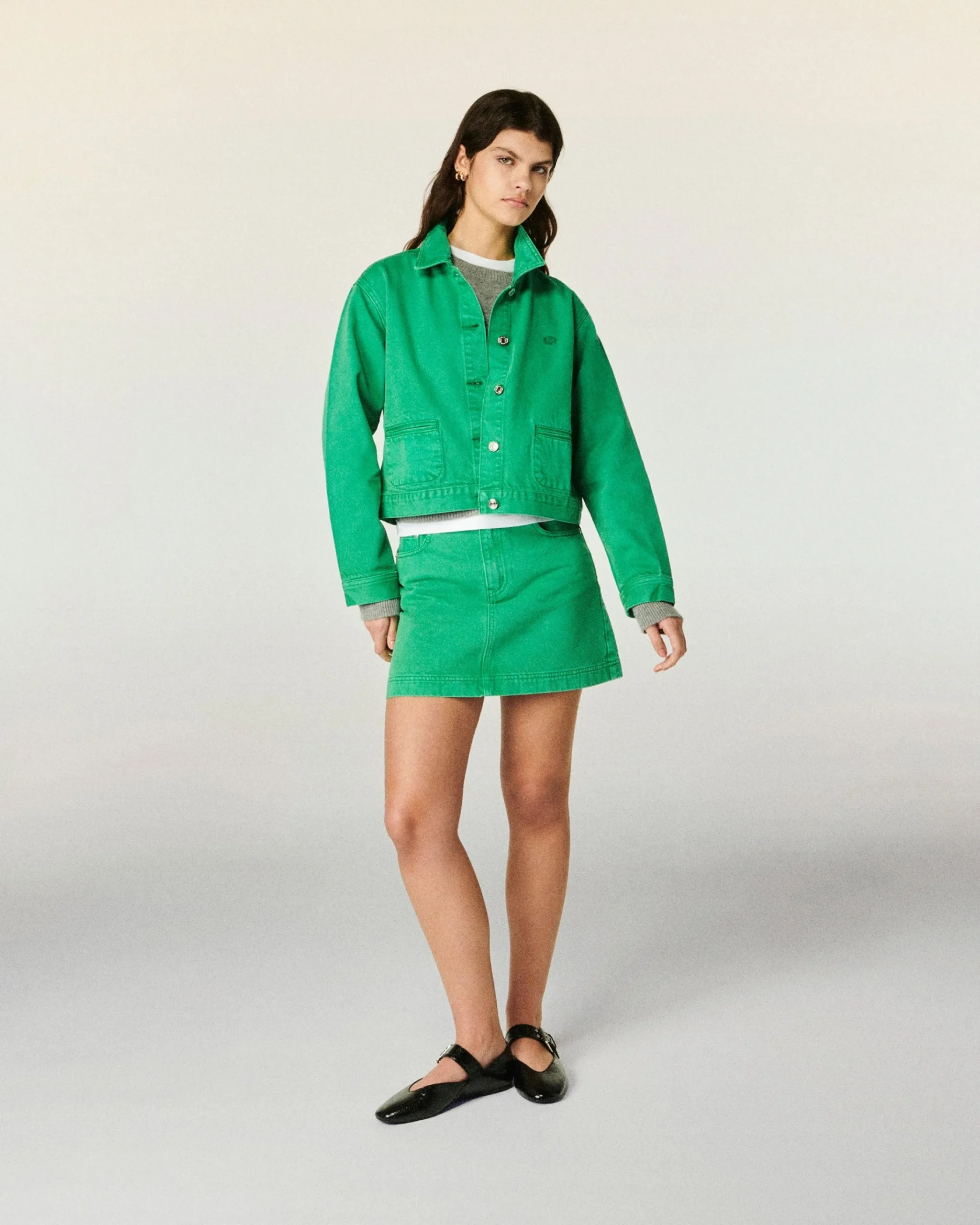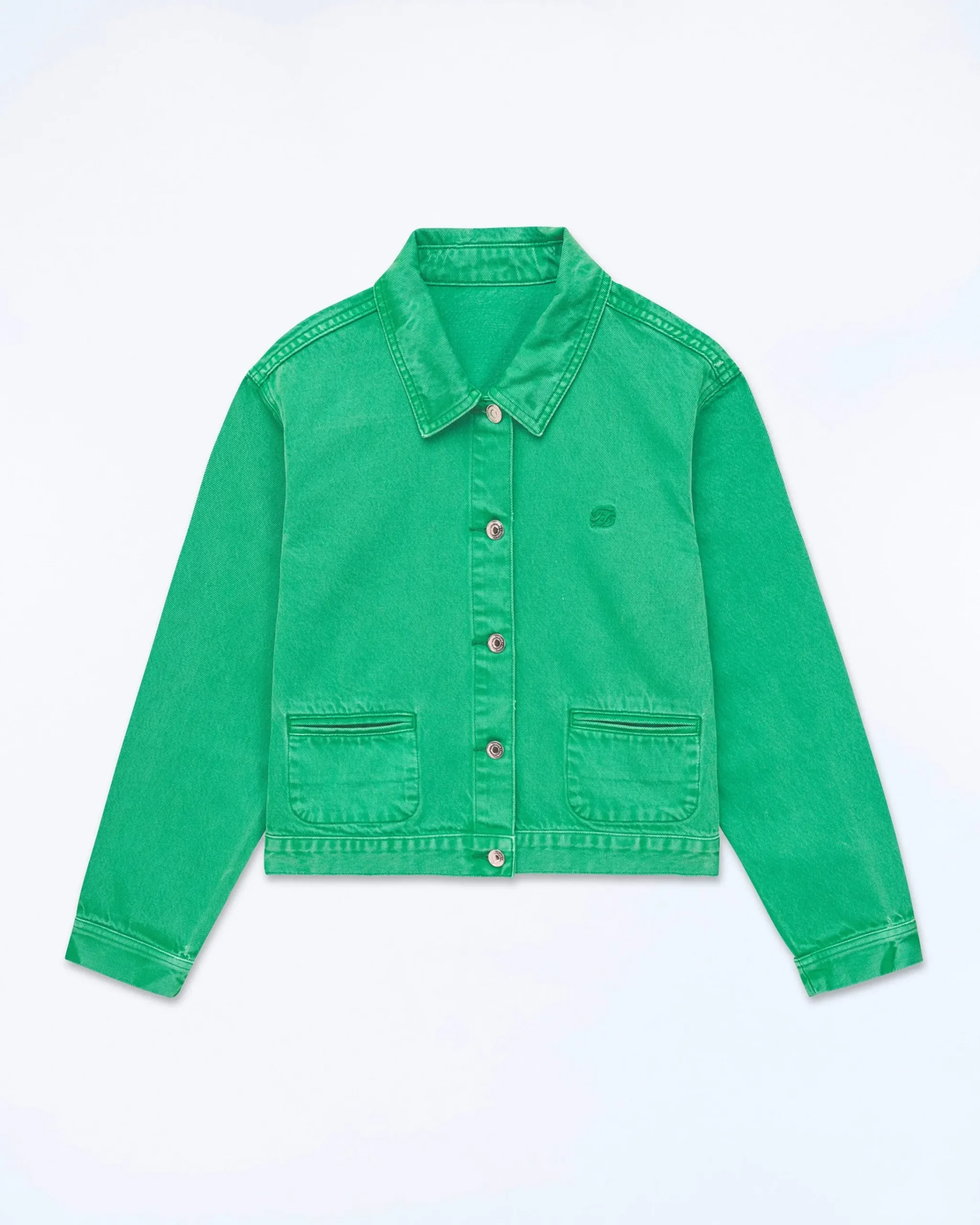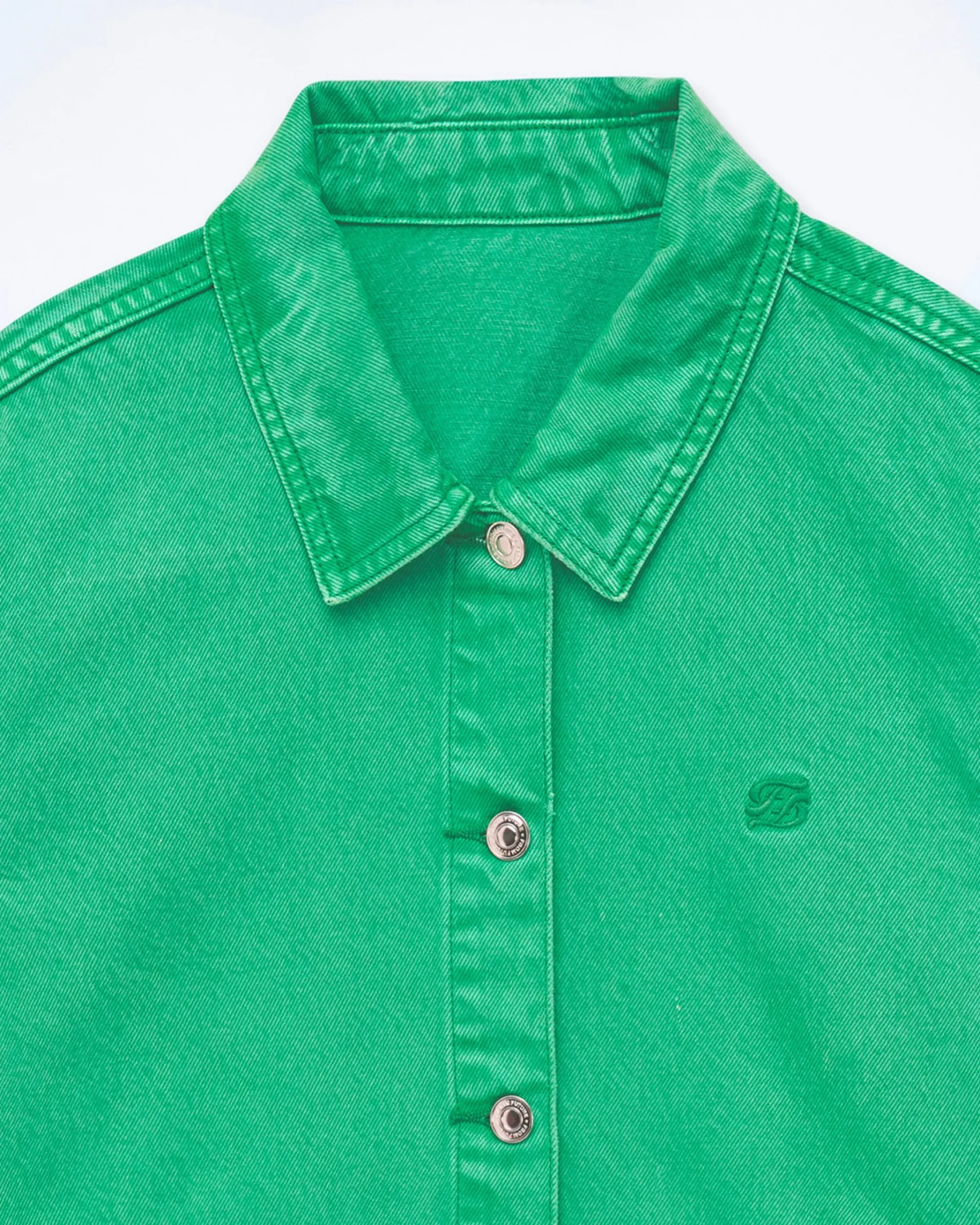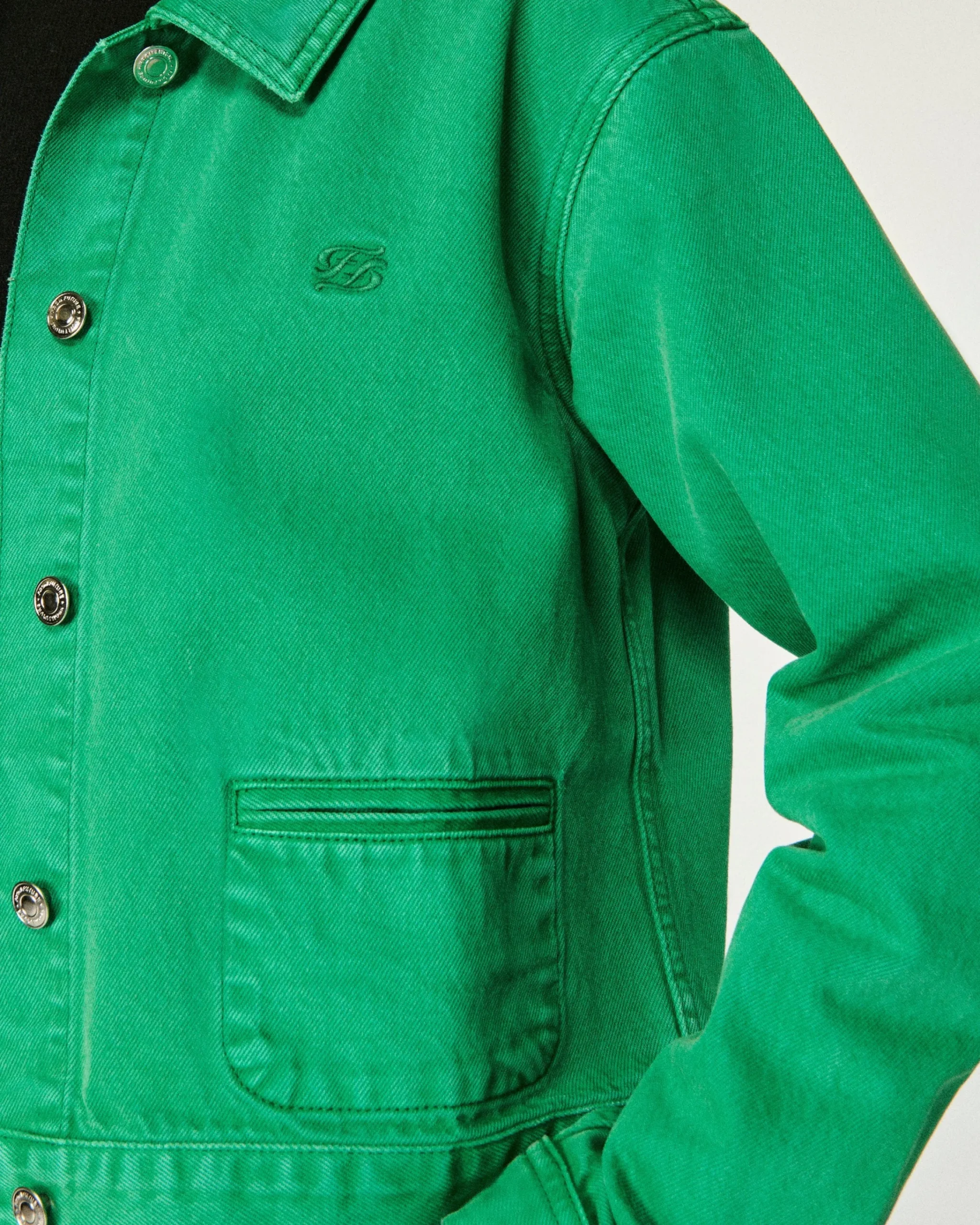 Impreziosita da bordini a contrasto e dalla firma “Future Club” sul petto, questa giacca strutturata in denim si afferma come capo di punta della stagione. Dotata di un collo a camicia e maniche lunghe, presenta due tasche applicate e una chiusura con bottoni. Un vero must, da mixare con tutti gli stili!