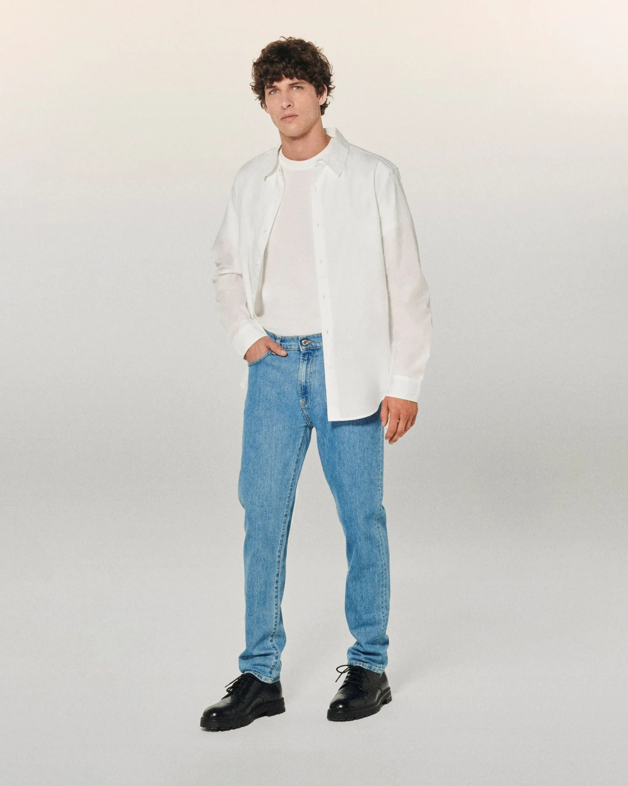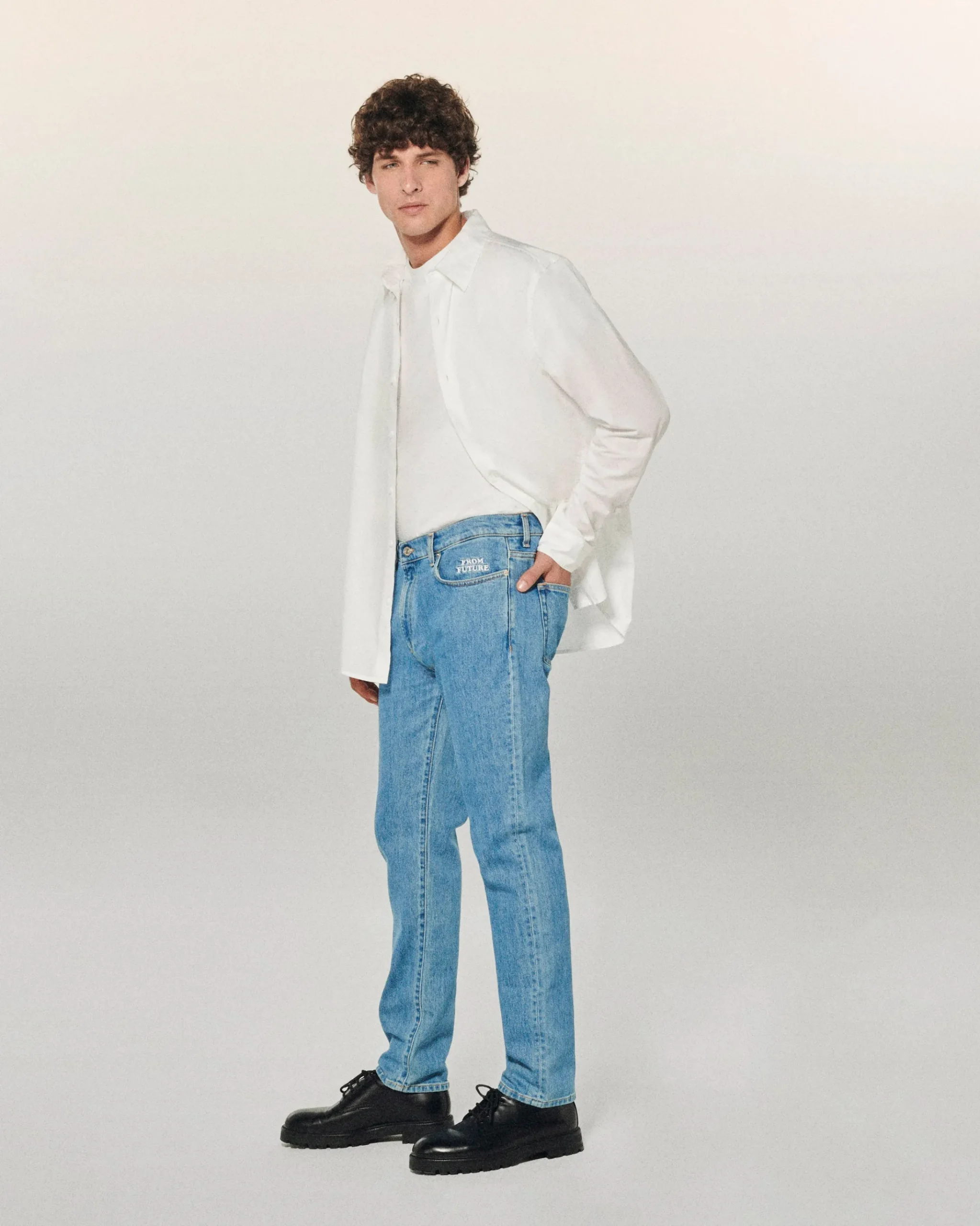 Tutto su Jacob: Jean Slim Fit. Future ricami semi-allenati nella tasca sinistra. Jacron colorato sul retro. Chiusura per bottoni con una parte anteriore sul davanti.