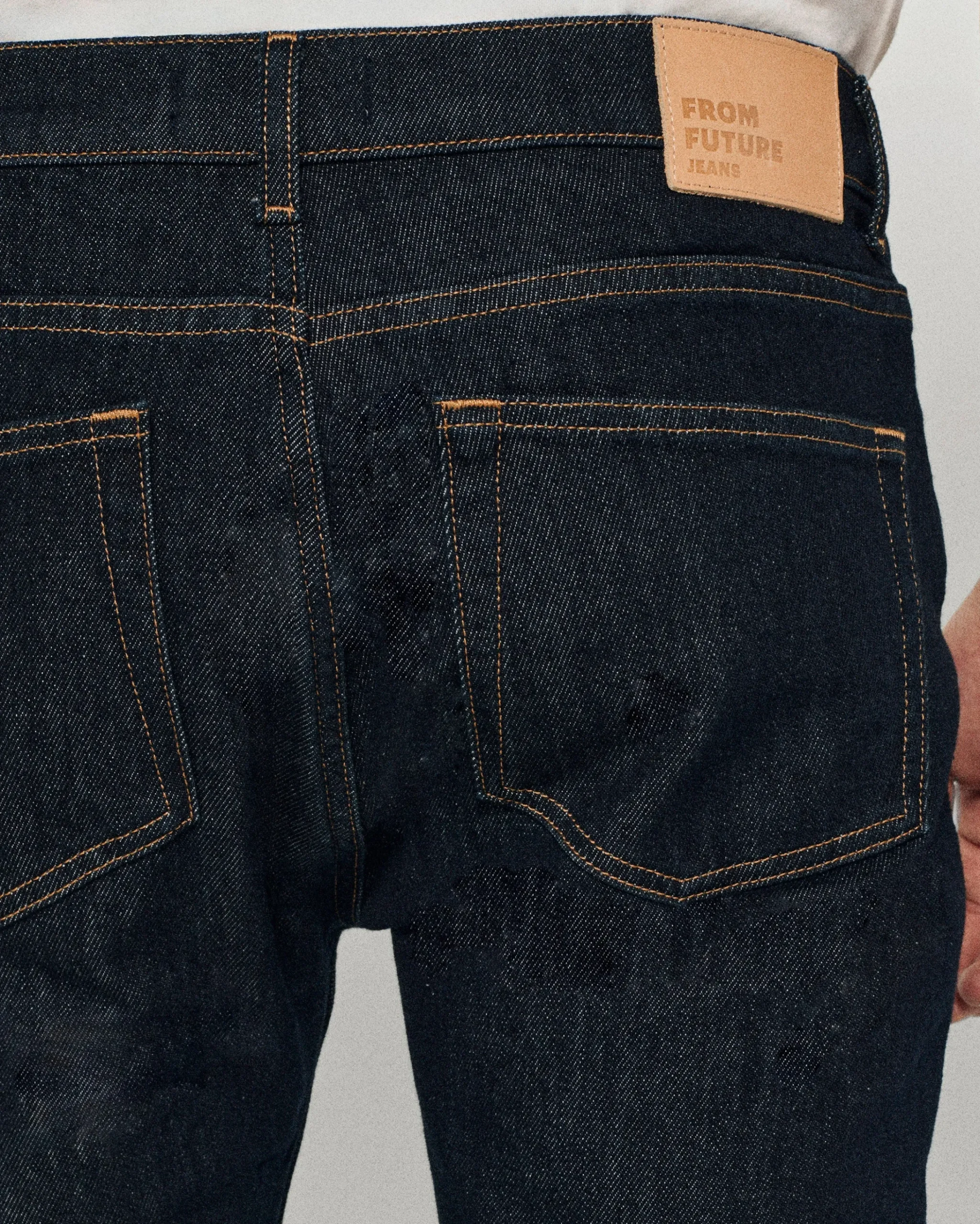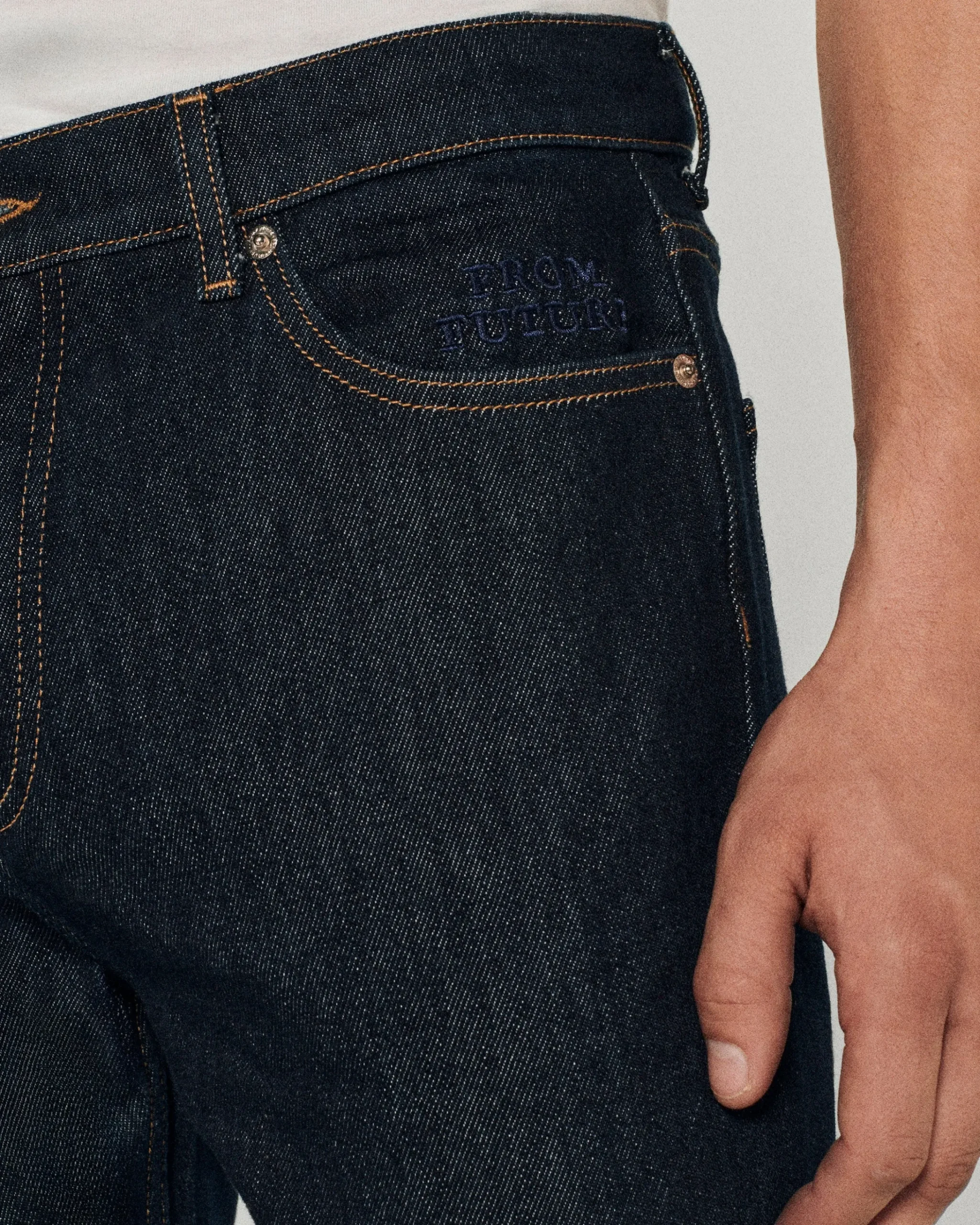 “Freschi e casual, i jeans John skinny con un taglio slim tasche multiple e un ricamo “””.From Future””.