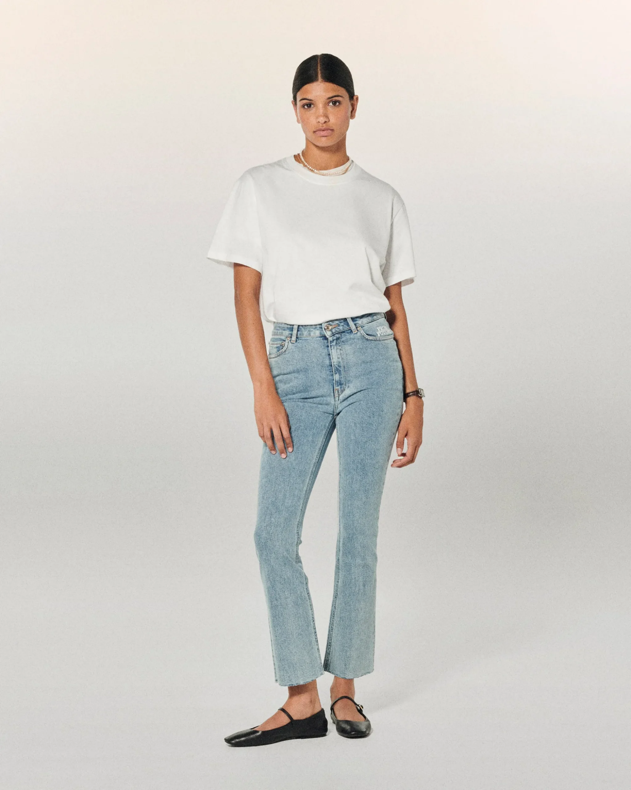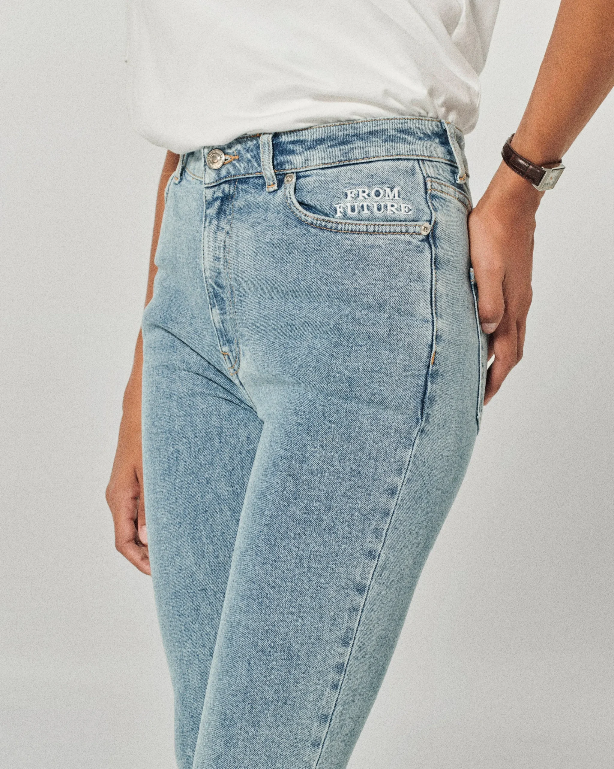 Incontra Jude: l’elegante bootcut con dettagli nel ricamo semi-alzante “From Future” sulla tasca sinistra.
