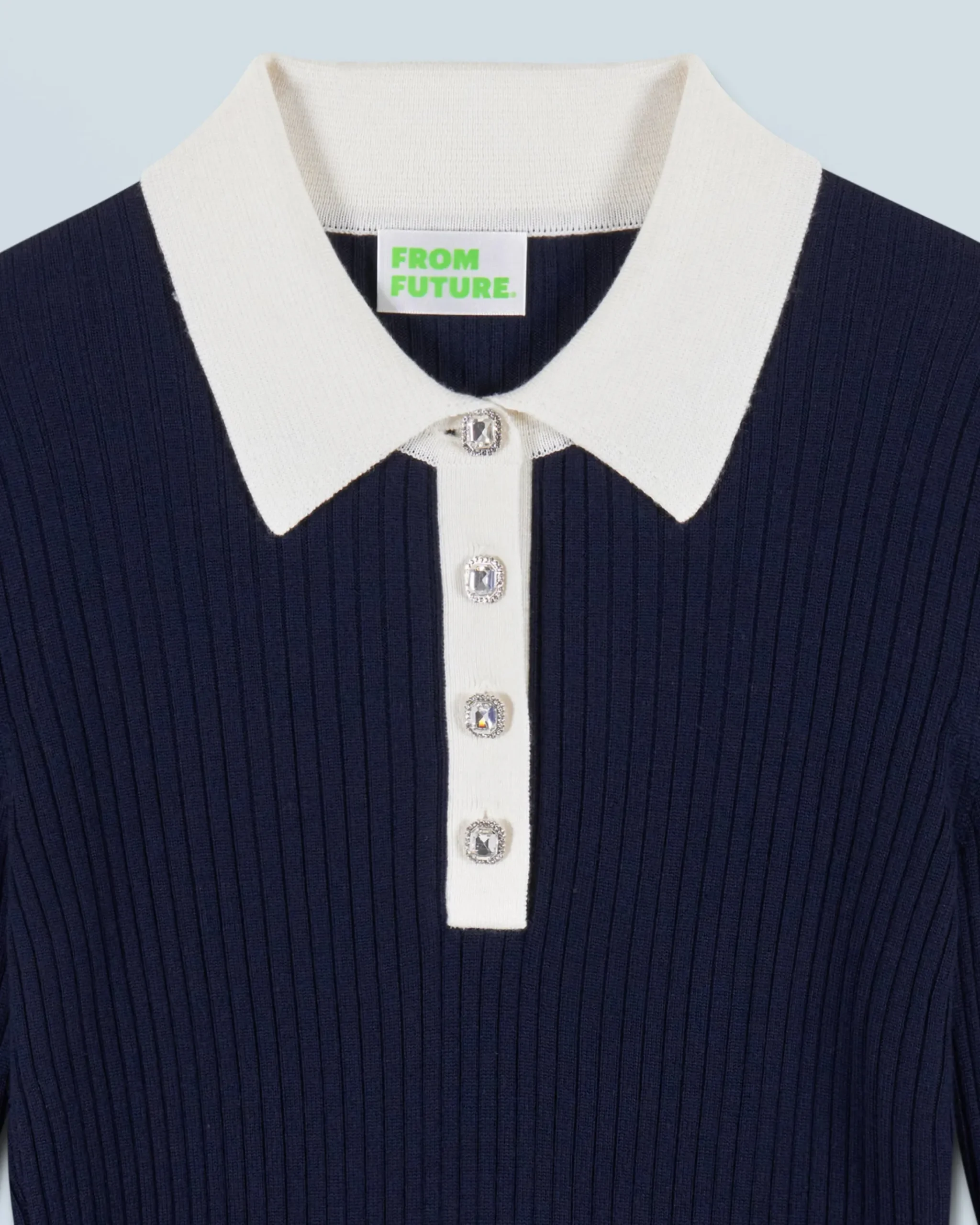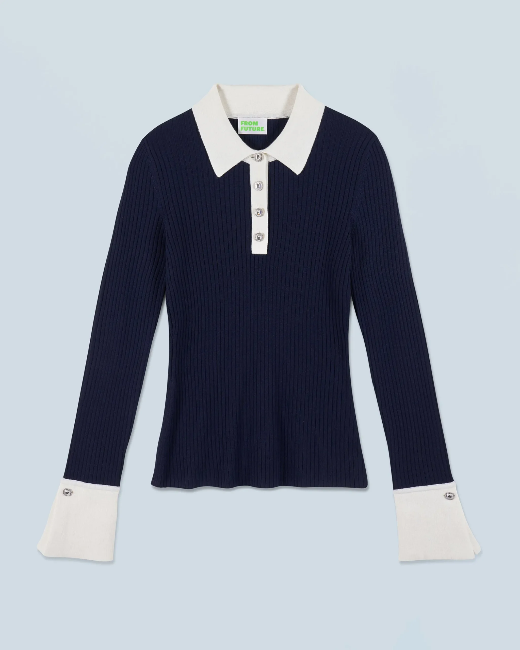Dona struttura al tuo look con questo maglione realizzato in 100% lana merino certificata RWS (Responsible Wool Standard)! Il colletto a polo con bottoni gioiello e i polsini con spacco sono sottolineati da bordi a contrasto, per un look chic e senza tempo. Completa il tuo look con un paio di pantaloni da tailleur e una giacca strutturata!