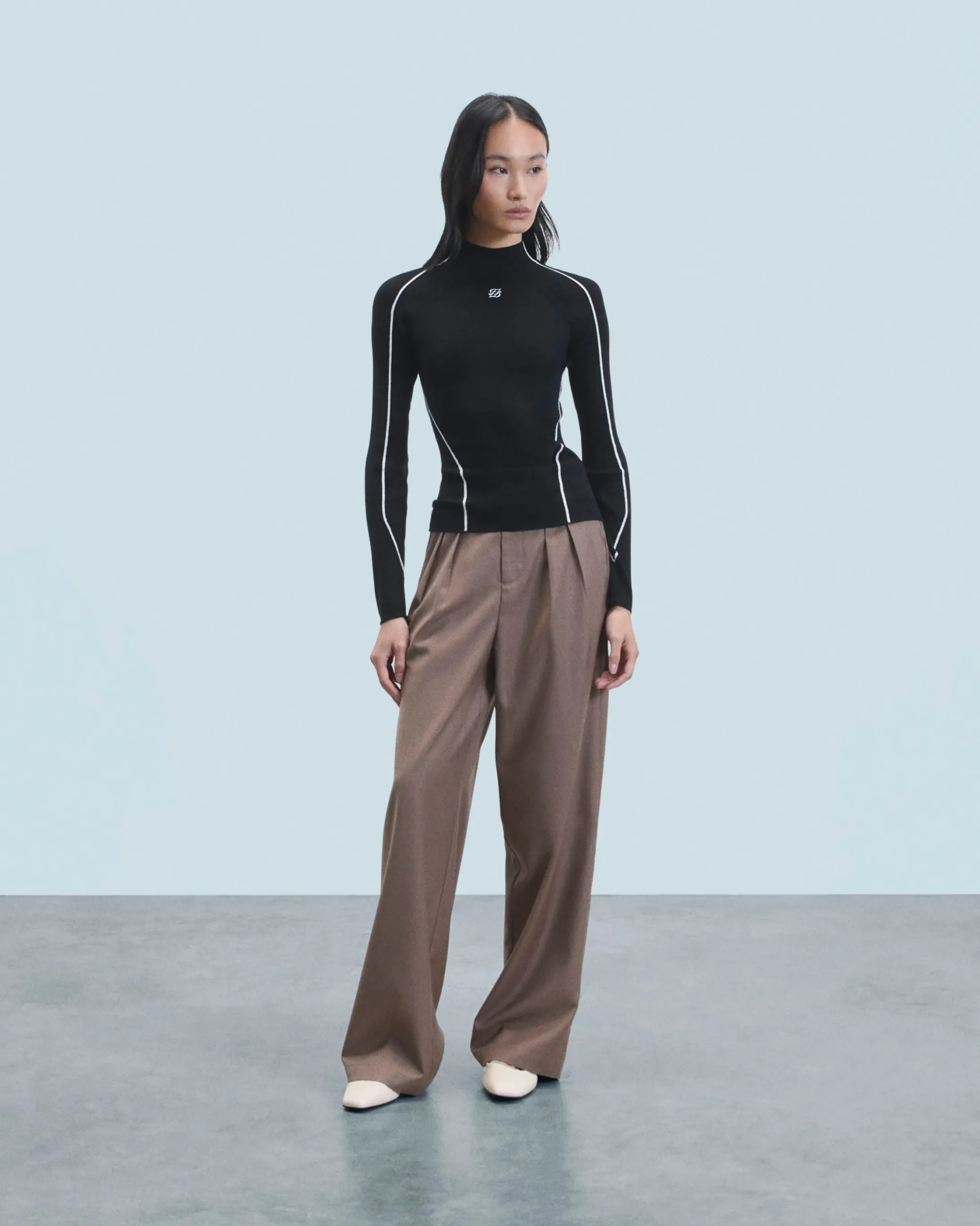 Questo maglione a coste, realizzato in lana merino certificata RWS (Responsible Wool Standard), presenta un collo alto e maniche lunghe. È impreziosito dal ricamo “FF” sul davanti e da bordini che creano un audace gioco di contrasti. Da indossare come una seconda pelle, puoi completare il tuo look di stagione con un paio di pantaloni casual o jeans strutturati!