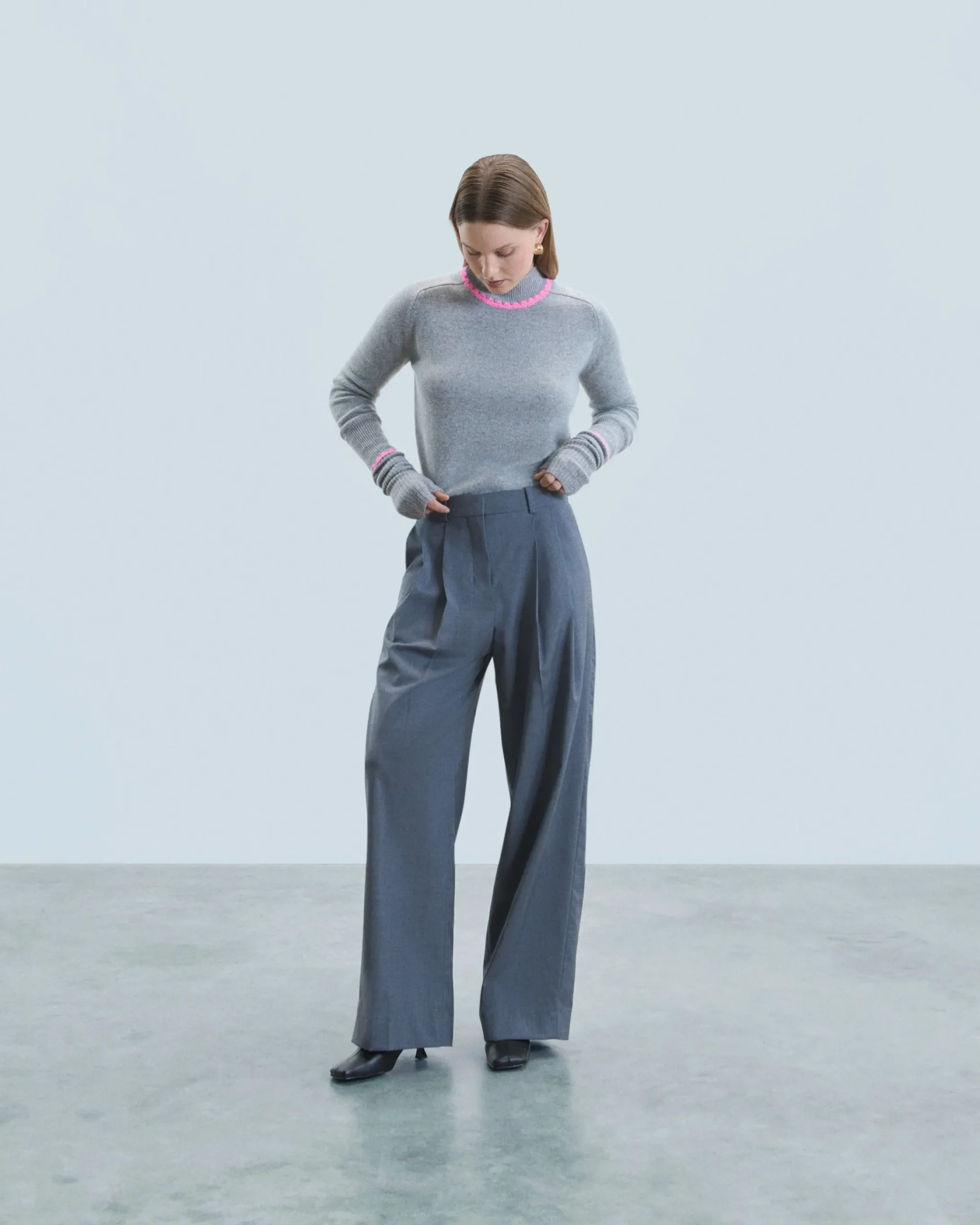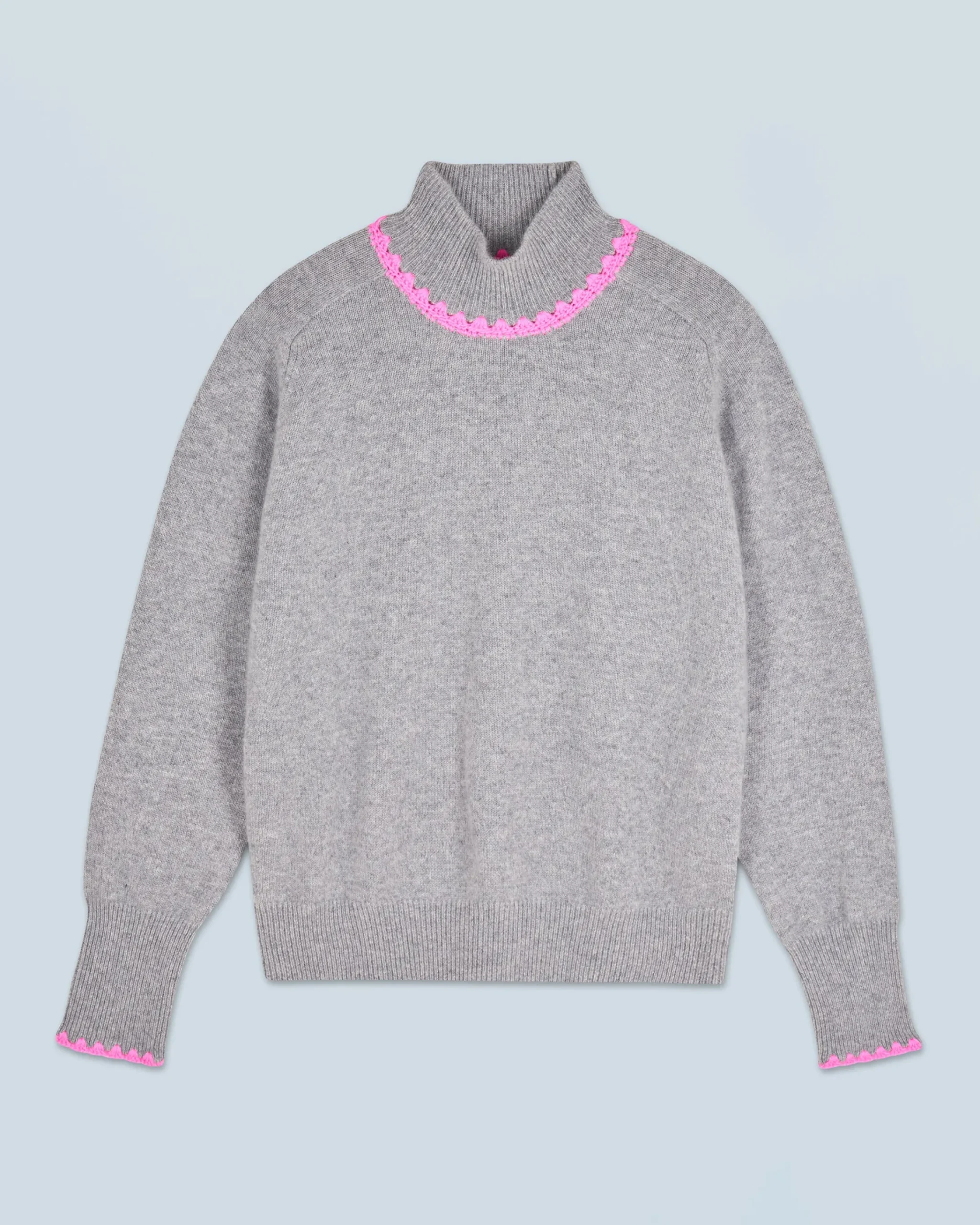Con maniche lunghe e bordi a coste, questo maglione in cashmere combina comfort ed eleganza. Il dettaglio che fa la differenza: i bordini a contrasto che sottolineano delicatamente il collo alto e i polsini. Componi un look chic indossandolo con una gonna morbida e un paio di décolleté!