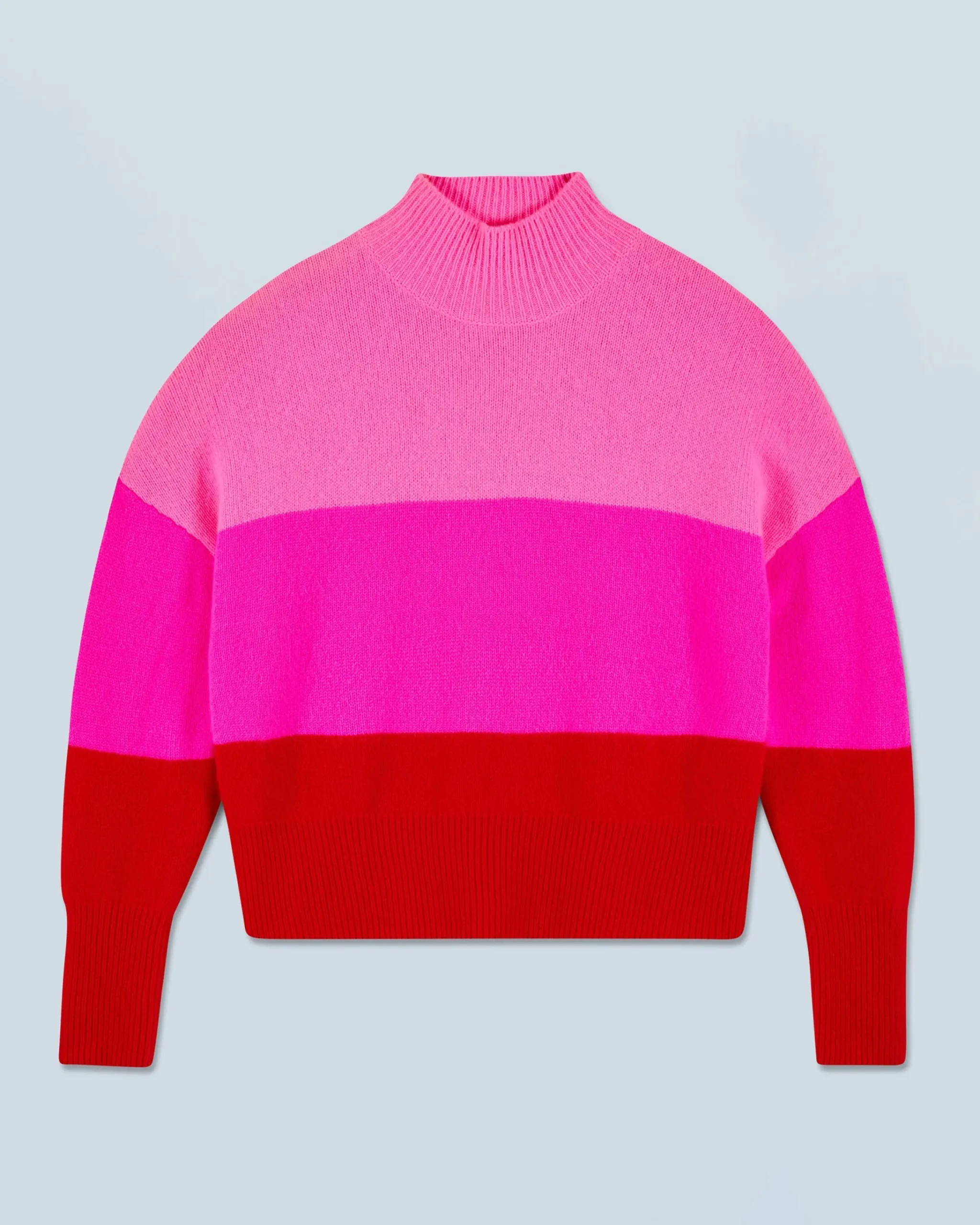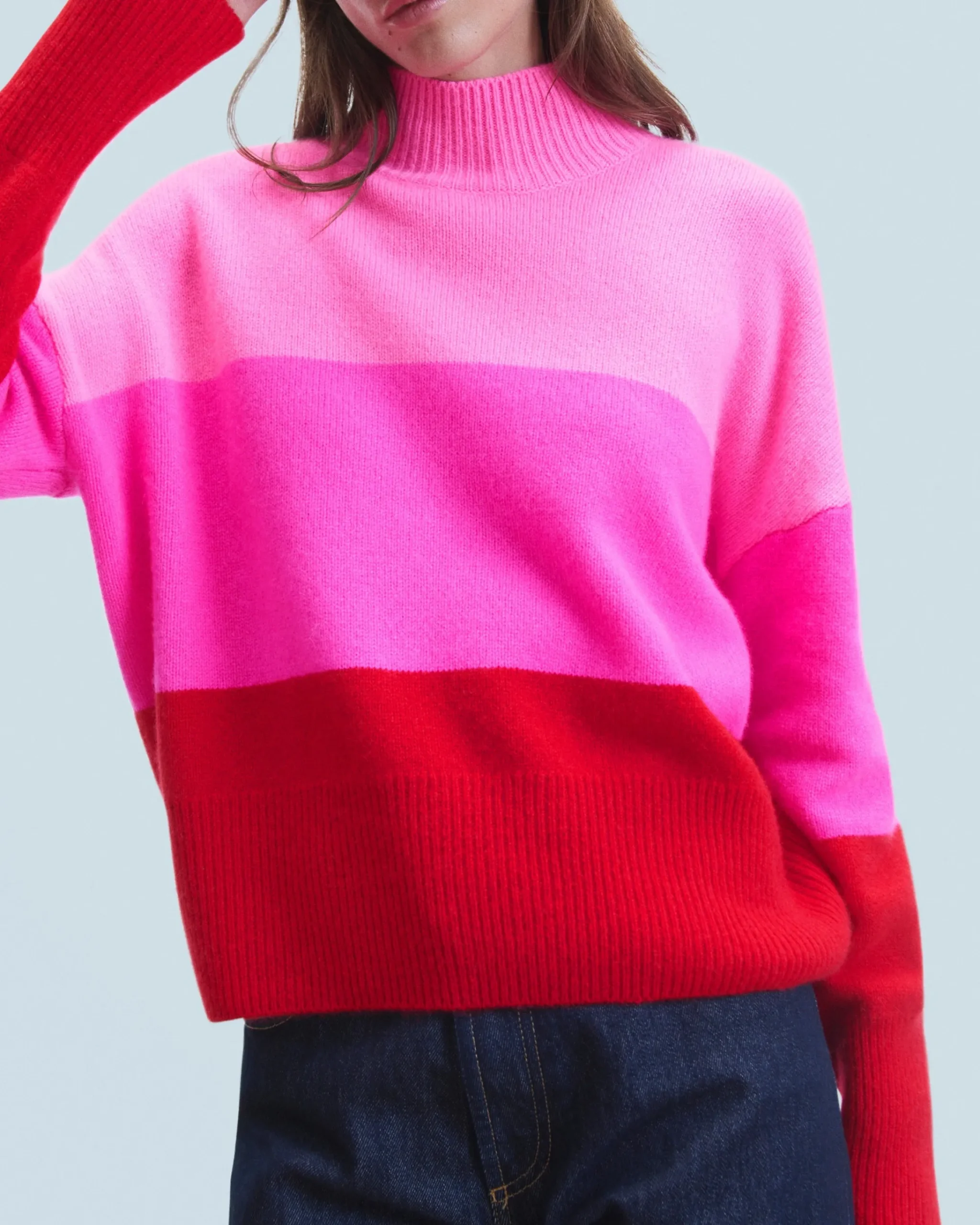 Realizzato in cashmere, questo maglione oversize dona struttura al tuo look con audacia. Il collo alto, le maniche lunghe e i bordi a coste sono impreziositi da bande a contrasto in colori vivaci. Ideale per riscaldare il tuo outfit con stile, puoi abbinarlo a un paio di jeans casual per un look casual ma chic.