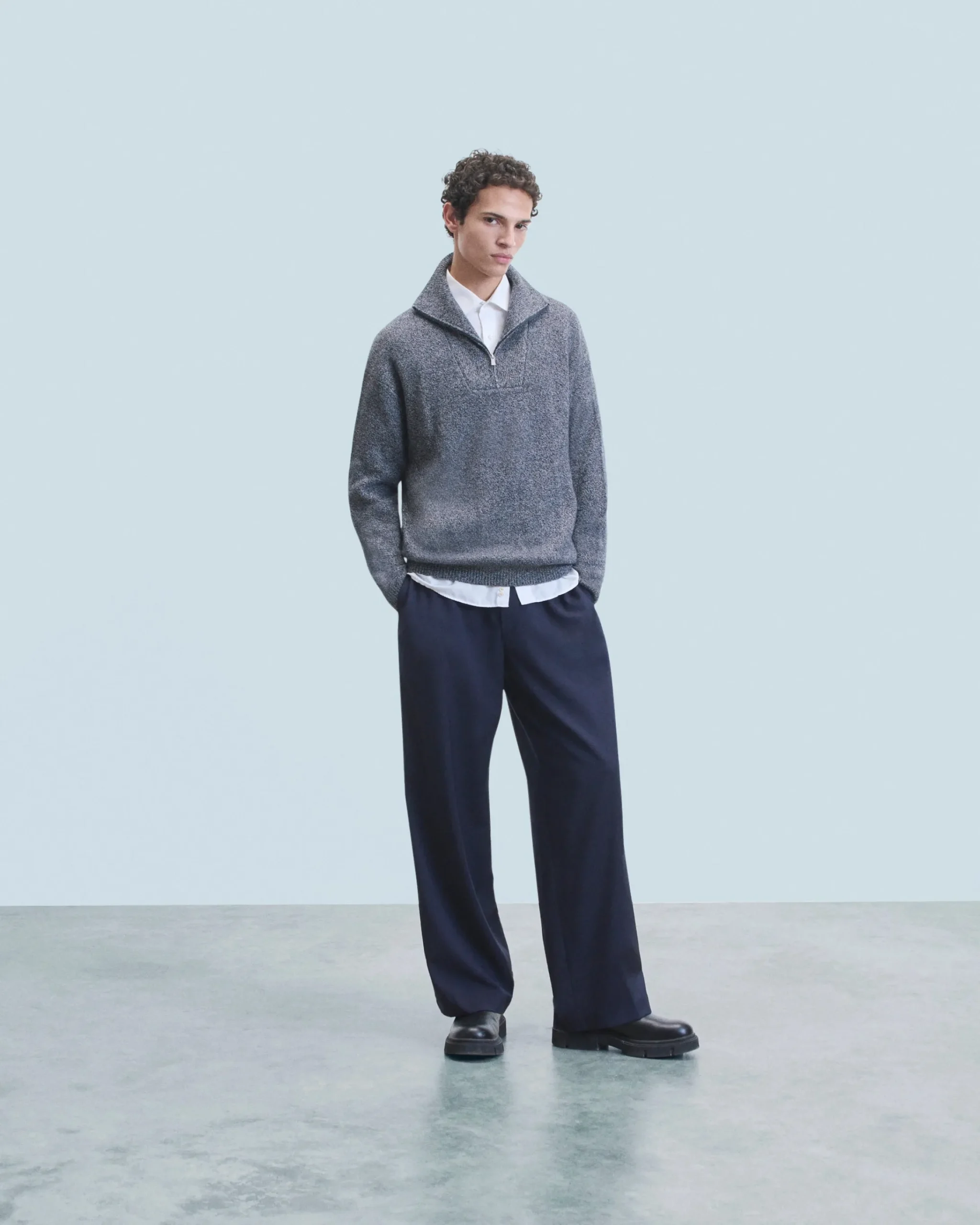 Avvolgiti nella morbidezza di questo maglione oversize in cashmere! La maglia a contrasto e il collo alto con zip aggiungono un tocco di eleganza ai tuoi look di stagione. Con maniche lunghe e bordi a coste, si abbina facilmente a un paio di pantaloni strutturati.
