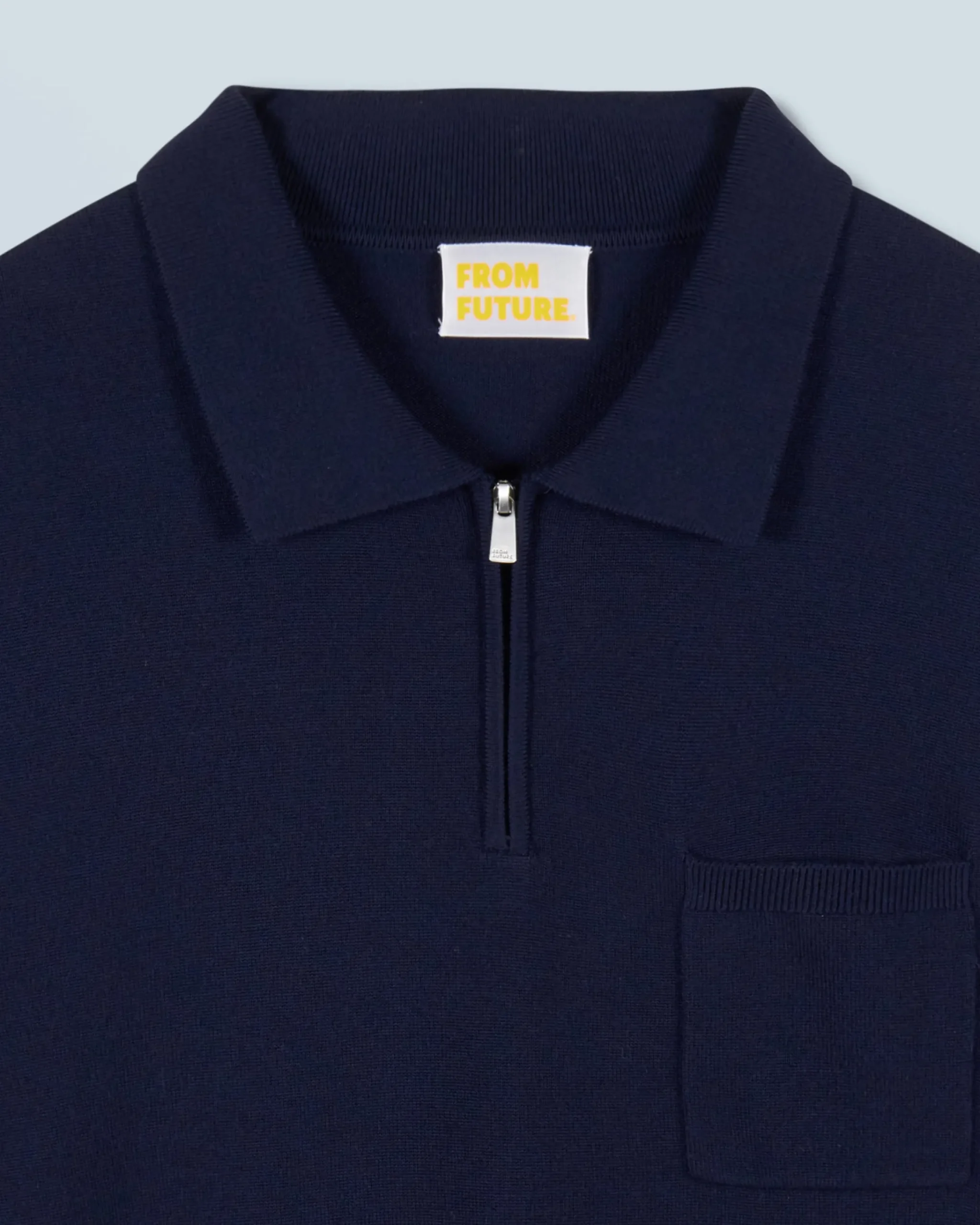 Avvolgiti nella morbidezza di questo maglione in 100% lana merino certificata RWS (Responsible Wool Standard)! Con maniche lunghe, un collo a polo con zip e una tasca applicata sul petto, conferirà struttura ai tuoi look di stagione.