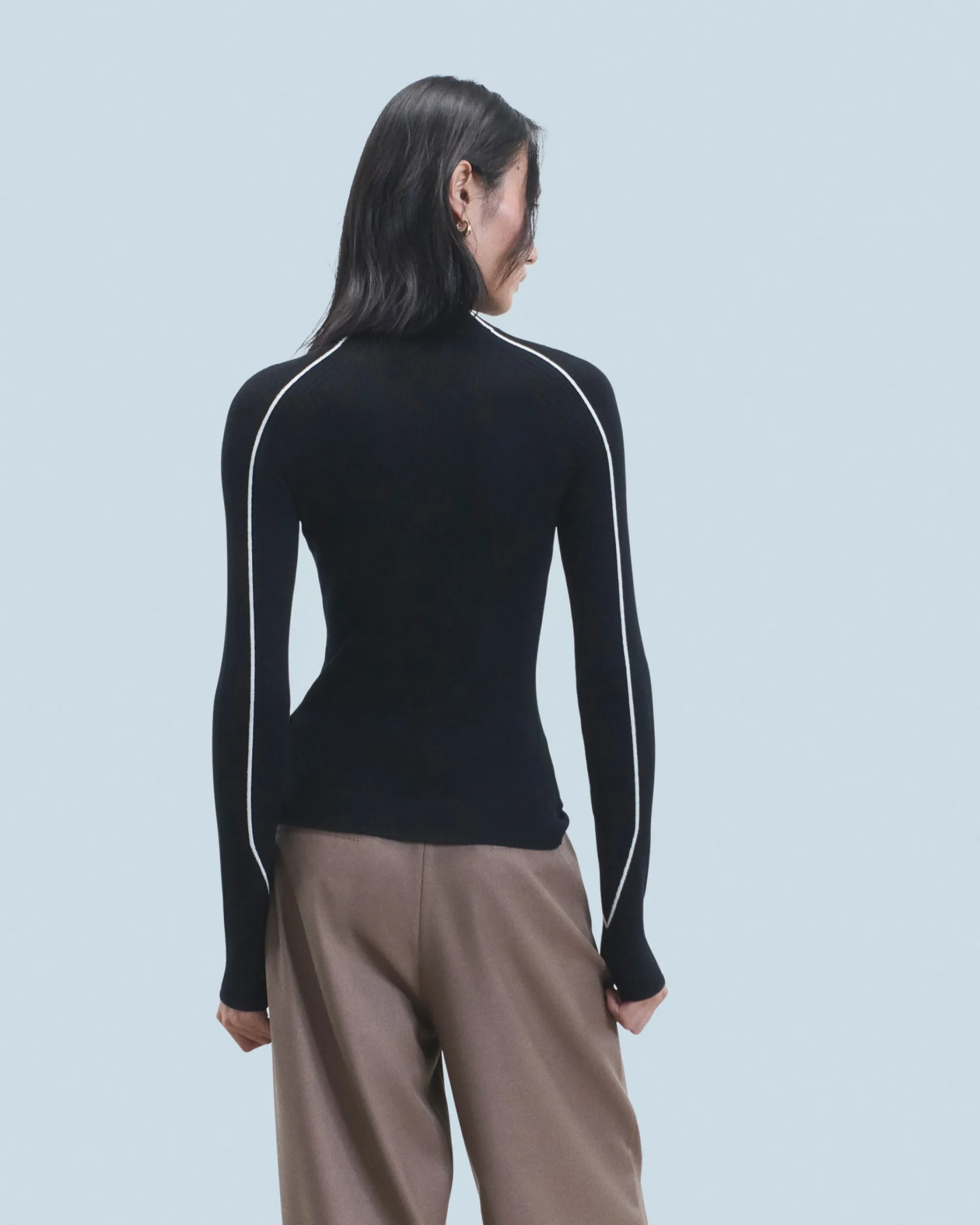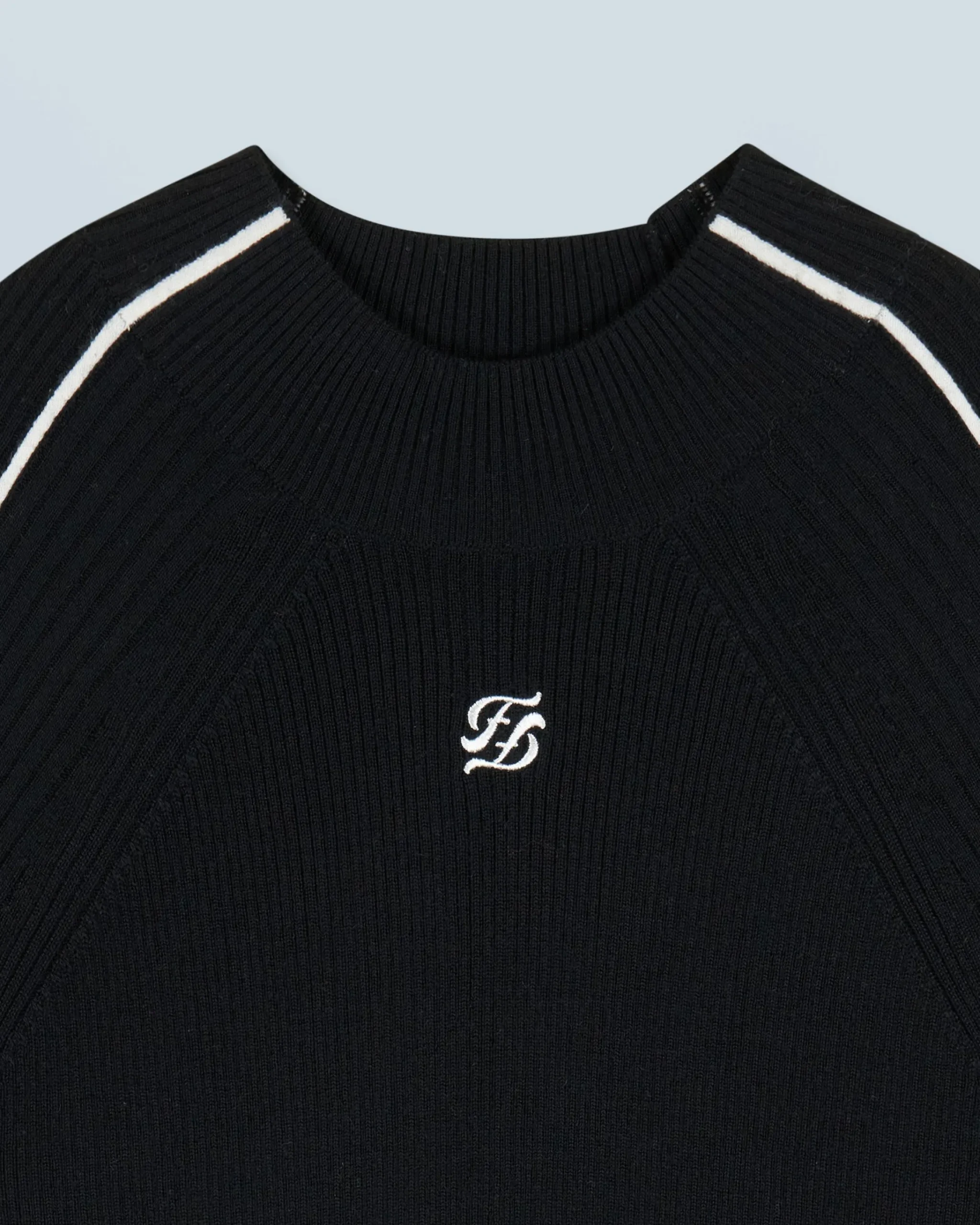 Questo maglione a coste, realizzato in lana merino certificata RWS (Responsible Wool Standard), presenta un collo alto e maniche lunghe. È impreziosito dal ricamo “FF” sul davanti e da bordini che creano un audace gioco di contrasti. Da indossare come una seconda pelle, puoi completare il tuo look di stagione con un paio di pantaloni casual o jeans strutturati!