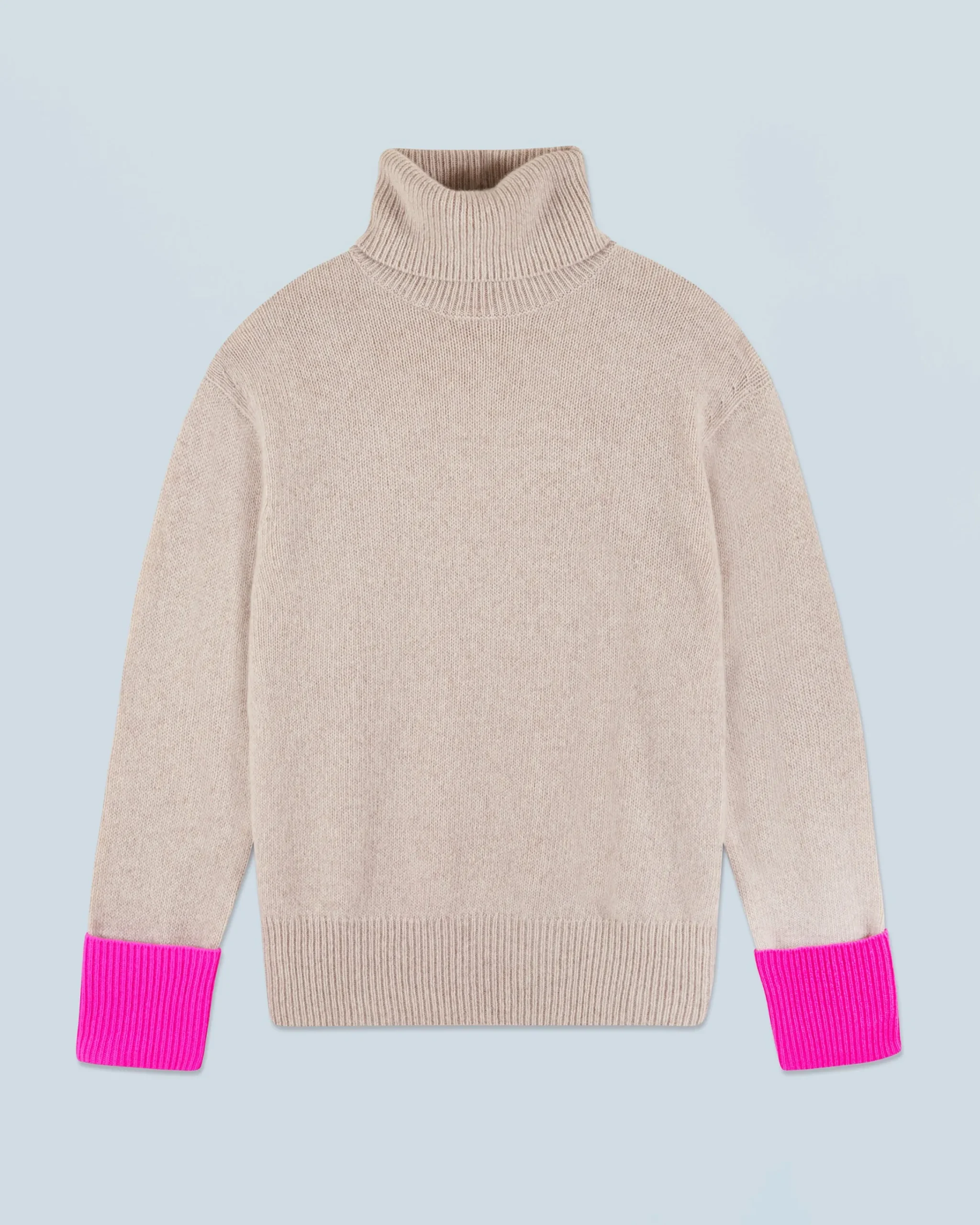 Ravviva il tuo look di stagione con questo maglione lungo e oversize ornato da polsini a contrasto! Realizzato in cashmere, presenta un collo a dolcevita e maniche lunghe. Da mixare secondo il tuo mood, puoi completare un outift casual abbinandolo a una gonna morbida o a un paio di jeans larghi.