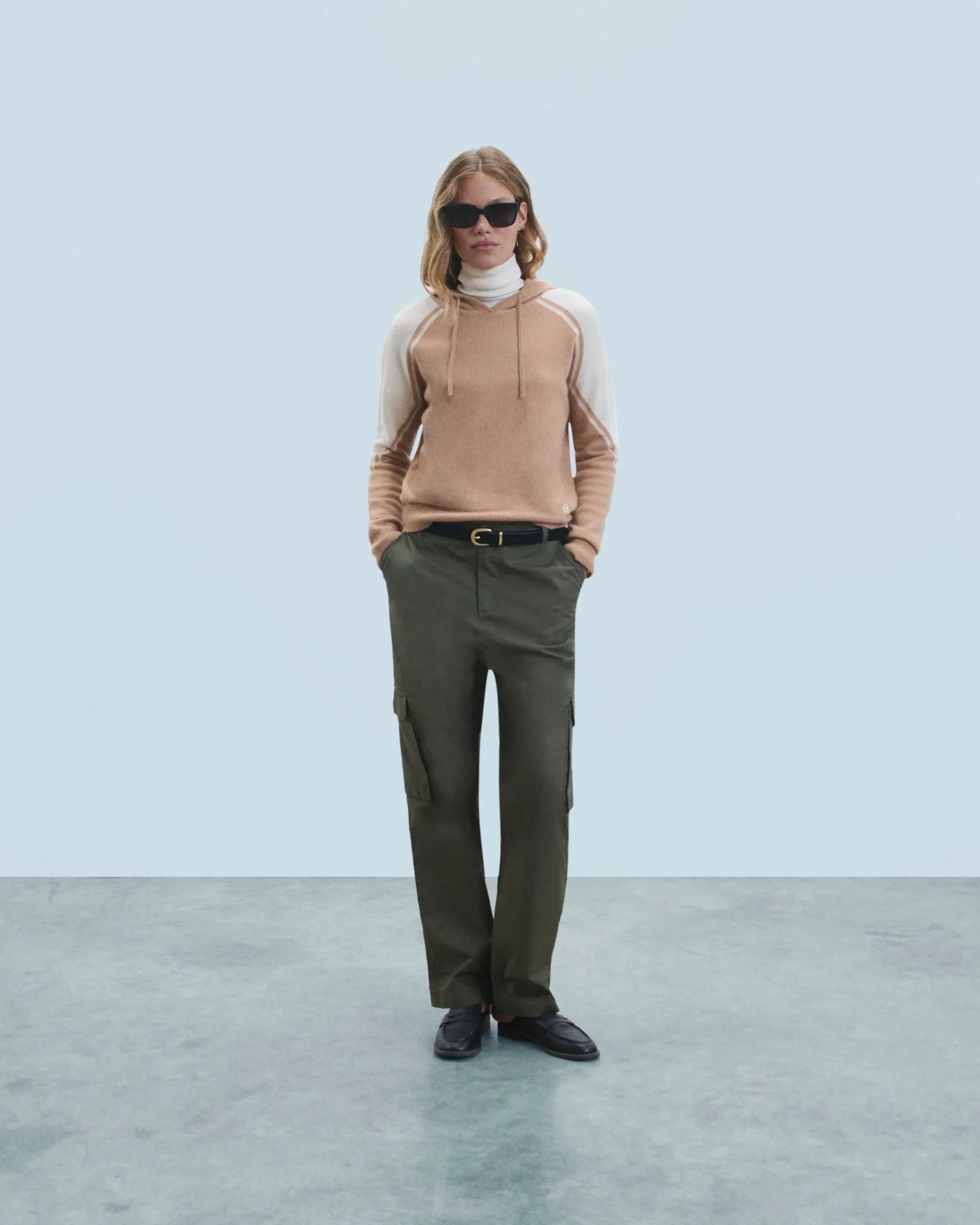 Realizzata in cashmere 2 fili, questa felpa-pullover oversize presenta un gioco di contrasti sulle spalle e la firma “FF” sull’orlo. Con un cappuccio con cordoncini, maniche lunghe e bordi a coste, puoi indossarla con una t-shirt e un paio di pantaloni a gamba larga.