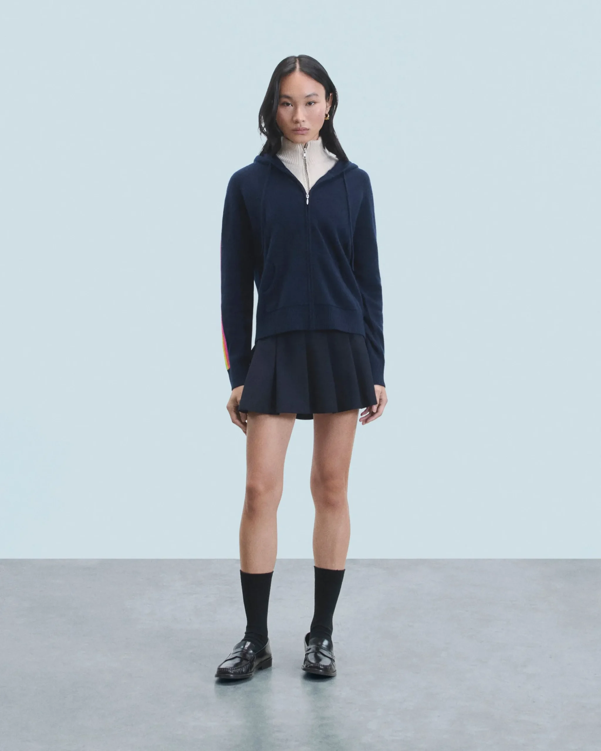 Pezzo iconico del guardaroba From Future, questo maglione con cappuccio presenta bande multicolori lungo le maniche per ravvivare il tuo look di stagione. Realizzato in cashmere morbido e leggero, è dotato di cordoncini, una chiusura a zip e una tasca davanti.