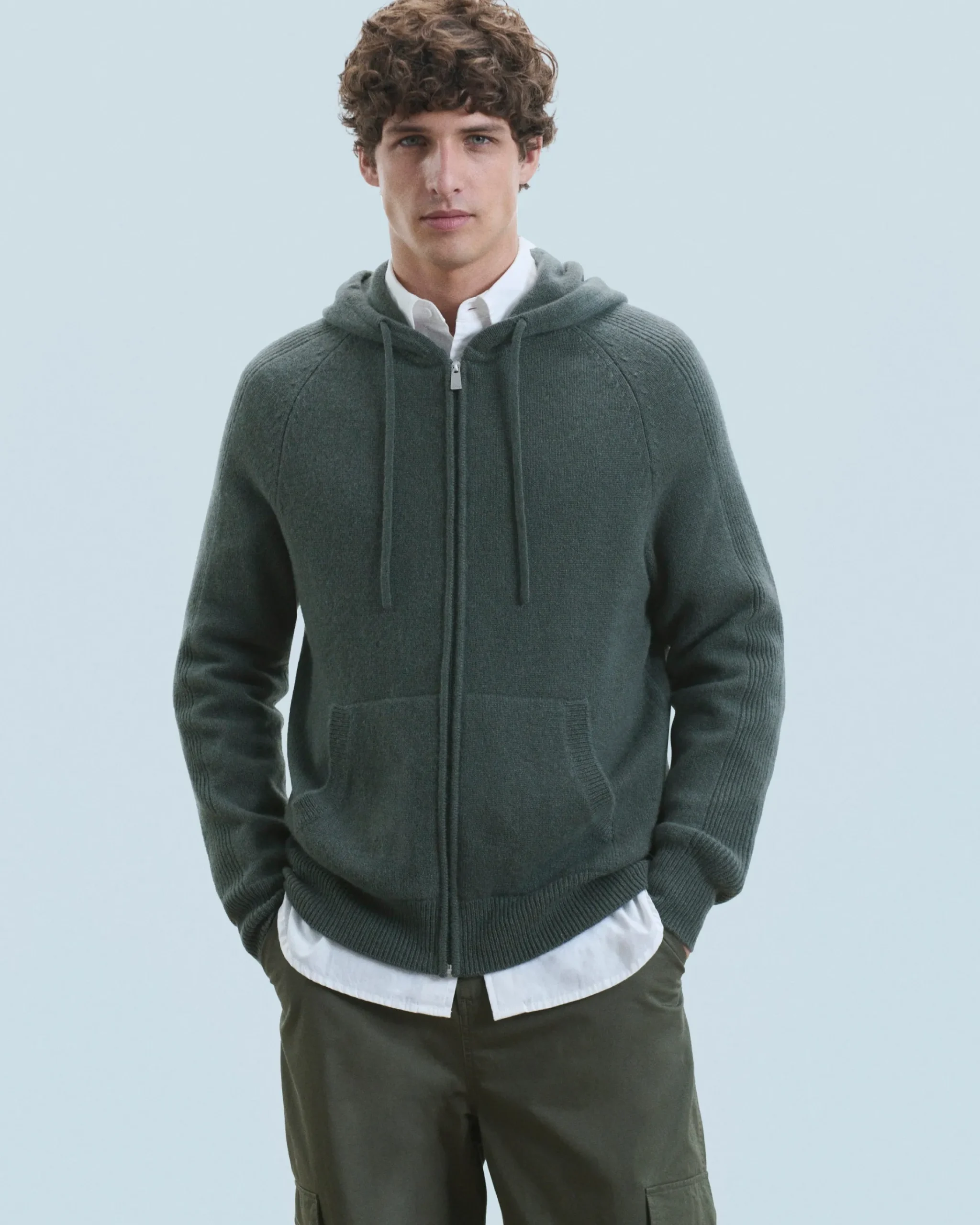 Confezionato in cashmere, questo maglione con zip riscalderà i tuoi look di stagione. Impreziosito da bordini a contrasto, presenta un cappuccio con cordoncini, maniche lunghe, due tasche e bordi a coste. Indossalo con una t-shirt ampia e un paio di jeans casual!
