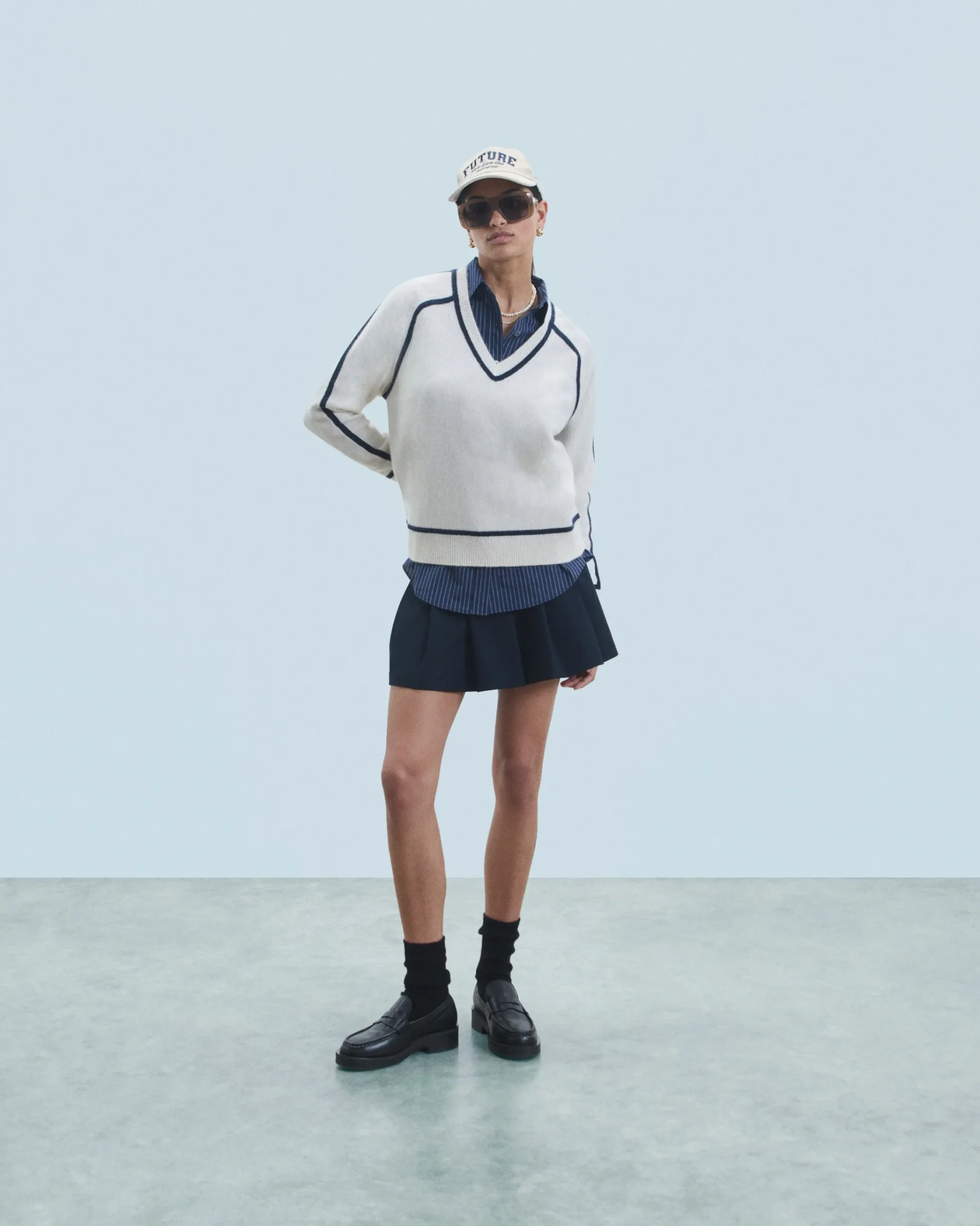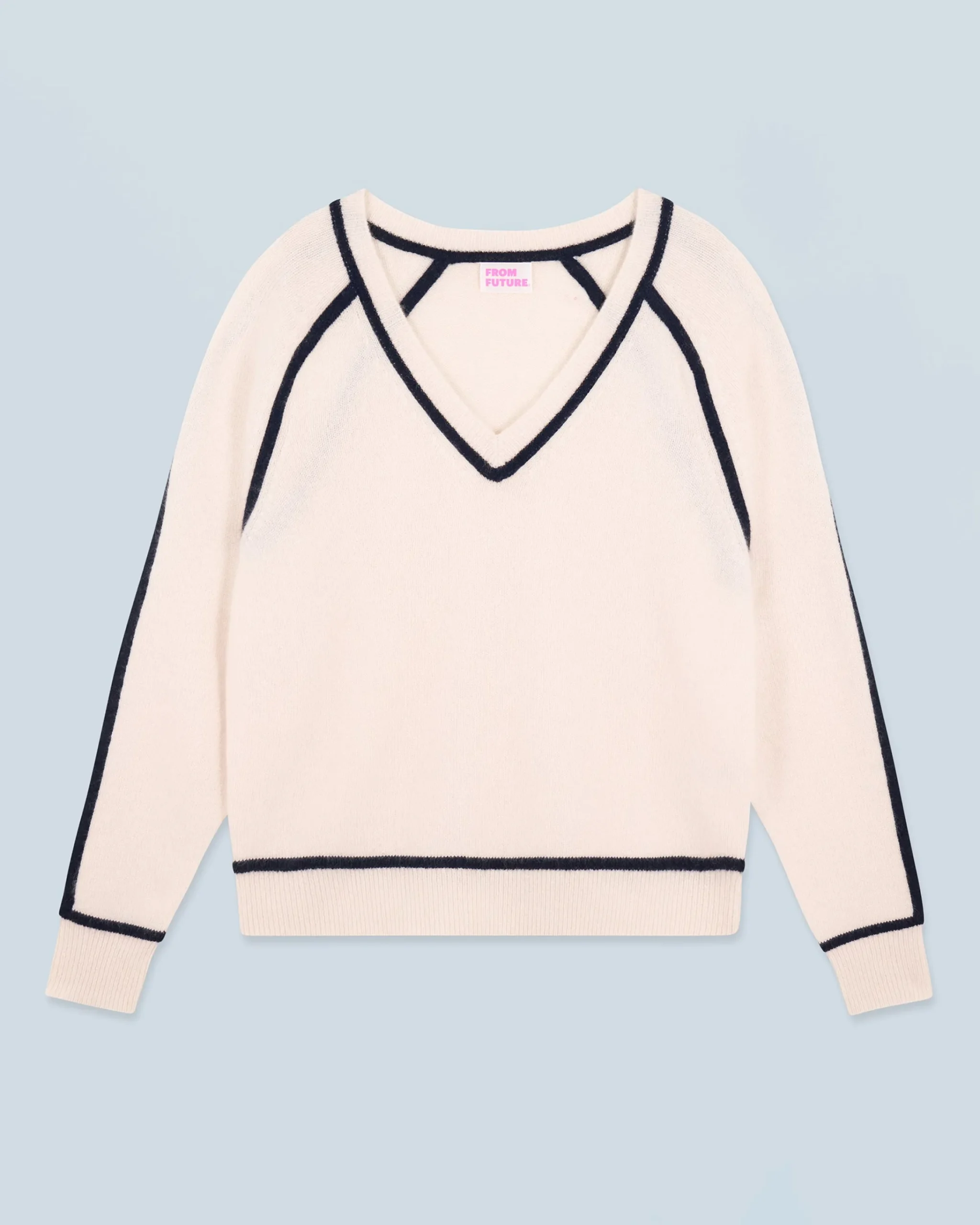 Realizzato in cashmere, questo maglione vanta una serie di dettagli audaci. Con uno scollo a V, maniche lunghe e bordi a coste, presenta dei bordini a contrasto che accentuano il suo taglio strutturato. Indossalo con un paio di jeans a gamba larga o pantaloni sartoriali per un look chic e casual!