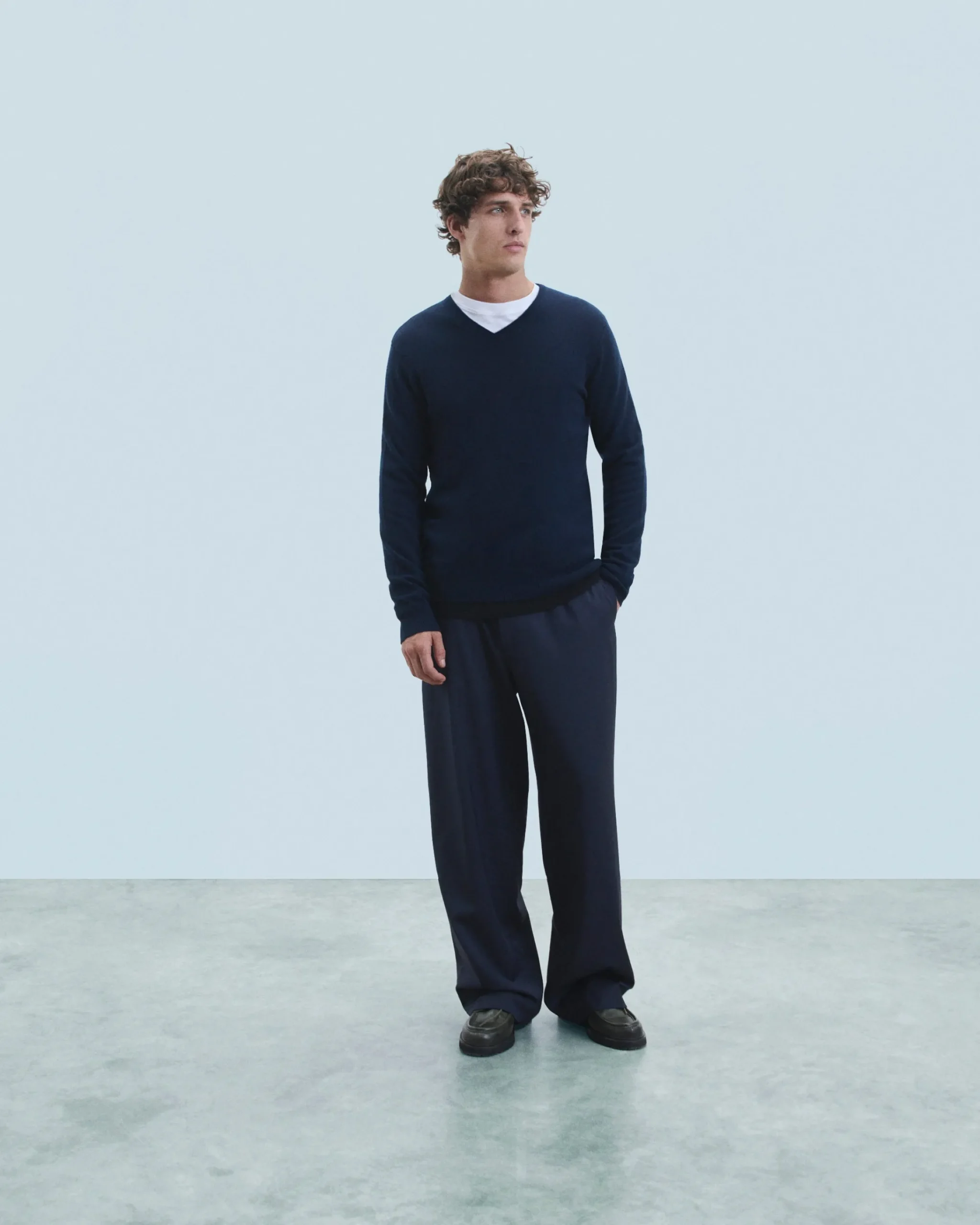 Un pezzo basico da indossare a volontà: questo maglione sfoggia un filato infinitamente morbido in cashmere 2 fili. Con maniche lunghe e bordi a coste, presenta uno scollo a V per dare struttura al tuo stile. Indossalo da solo oppure abbinato a pantaloni sartoriali o jeans casual.