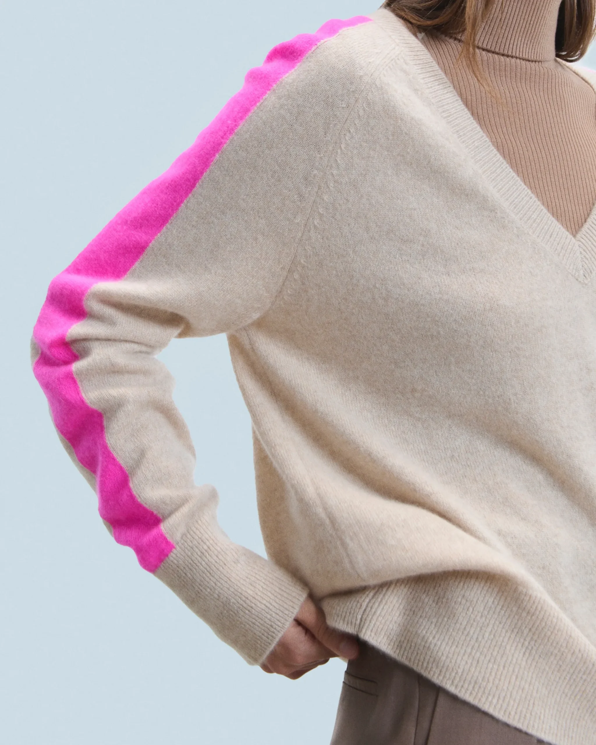 Maglione Scollo a V Oversize Bande bicolori Leggero