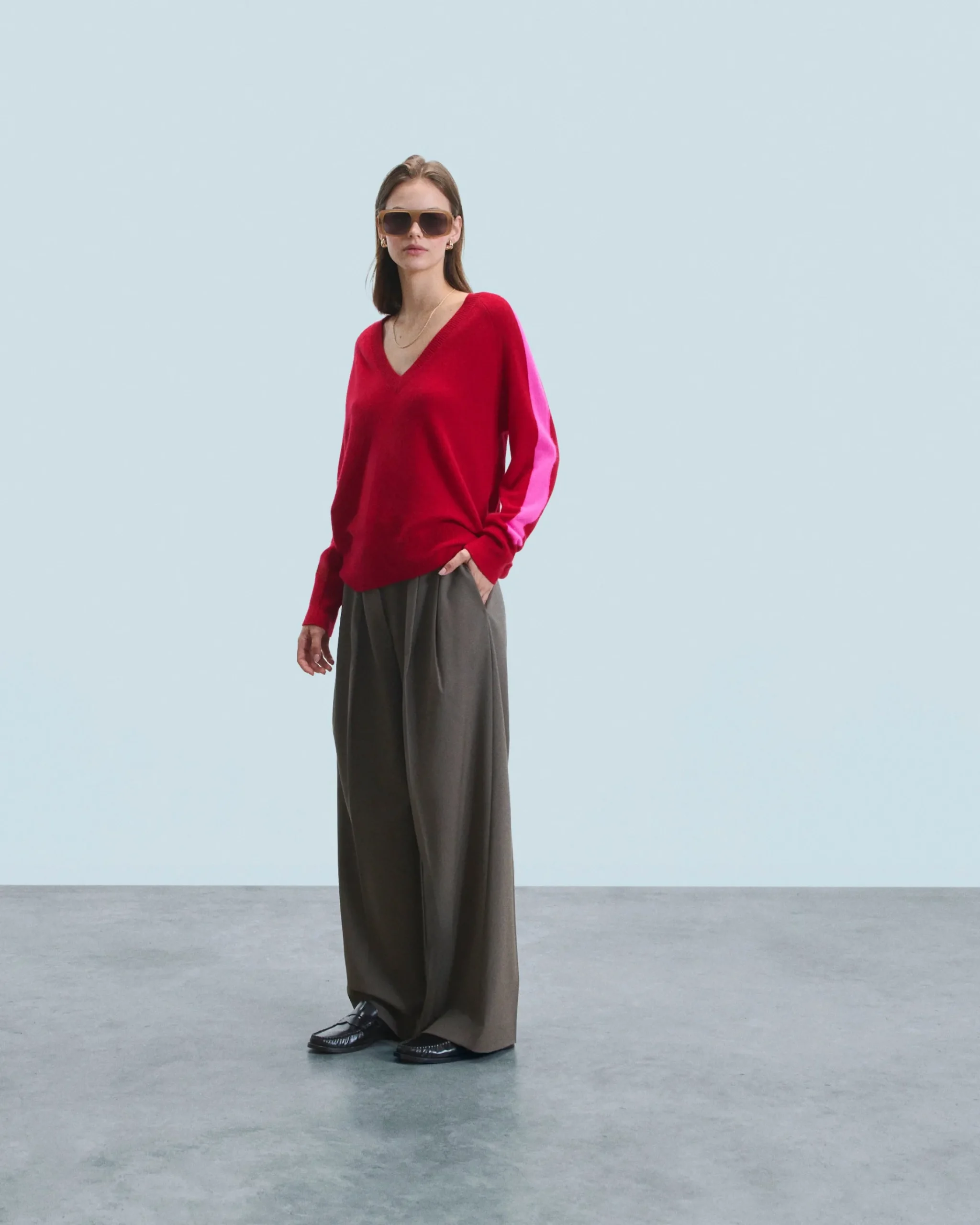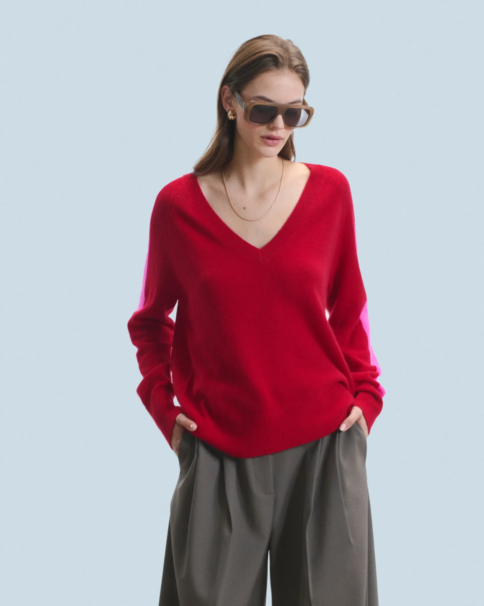 Maglione Scollo a V Oversize Bande bicolori Leggero
