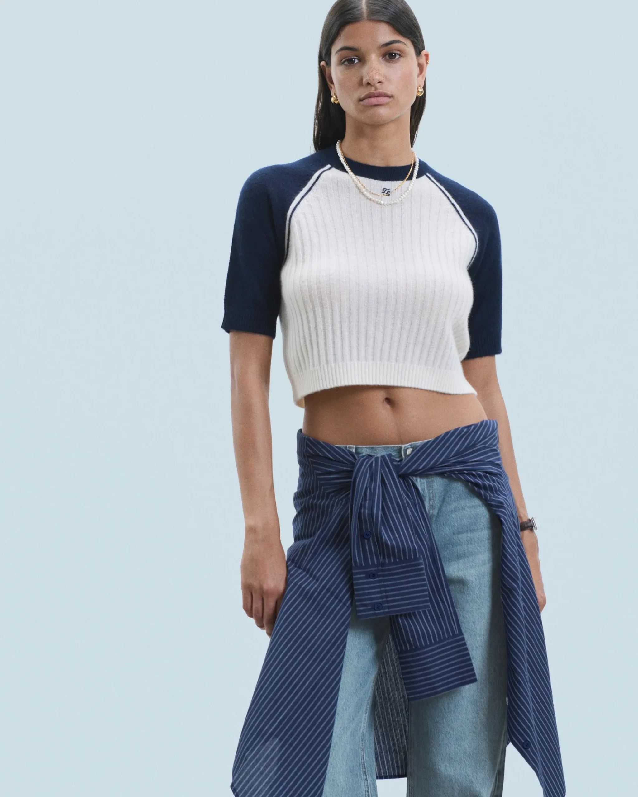 Confezionato in cashmere 2 fili, questo maglione corto bicolore è vivacizzato da un gioco di contrasti per dare un tocco audace al tuo stile. Con uno scollo tondo, maniche corte e bordi a coste, presenta l’iconico ricamo FF sul davanti. Indossalo con un paio di jeans a gamba larga o una gonna morbida per un look chic e casual!