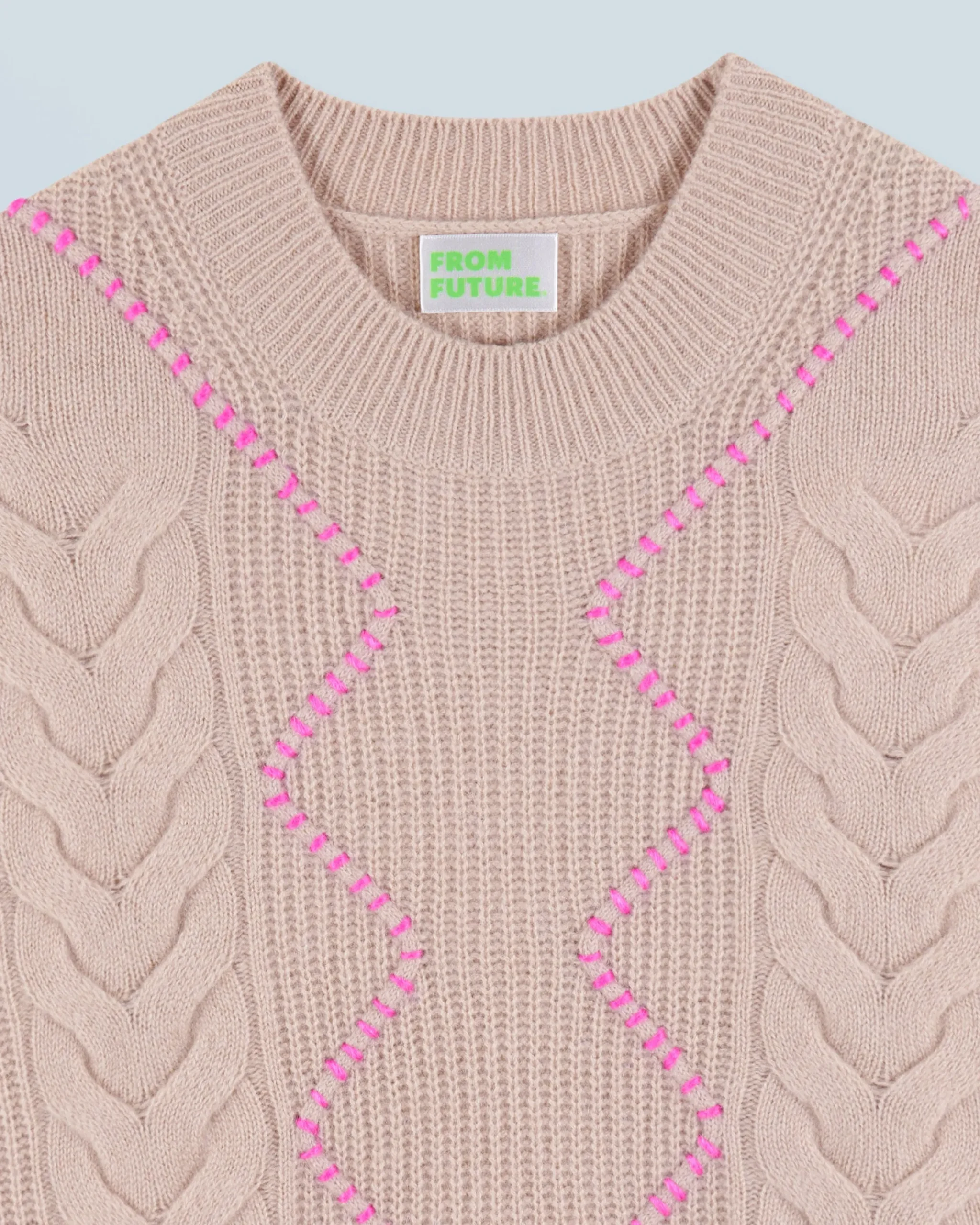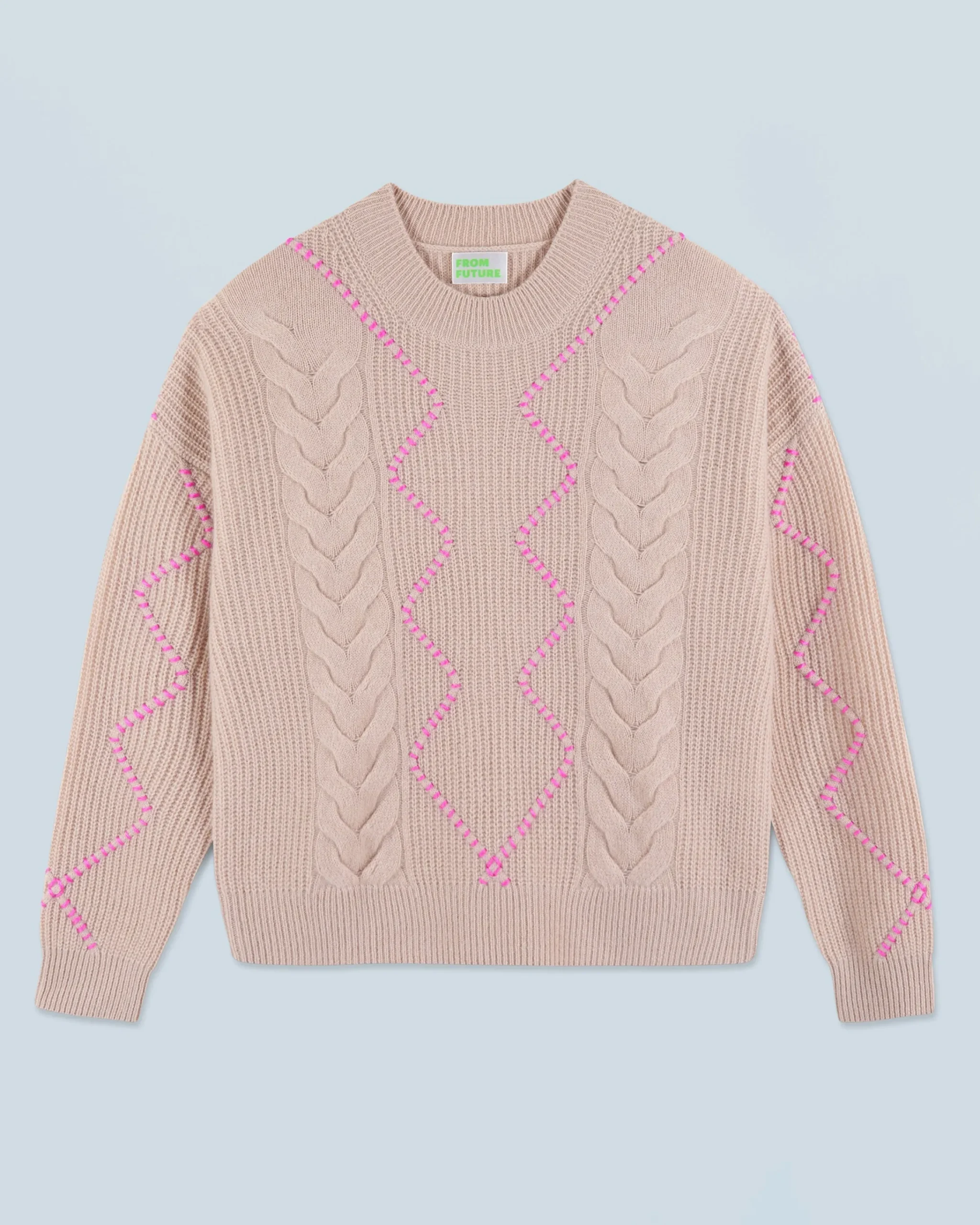 Questo maglione oversize in cashmere è caratterizzato da un gioco di intrecci. Con uno scollo tondo, maniche lunghe e bordi a coste, si afferma come un pezzo irrinunciabile della stagione. Incarnando tutta l’eleganza senza tempo, si abbina facilmente a una gonna morbida o a dei jeans a gamba larga.