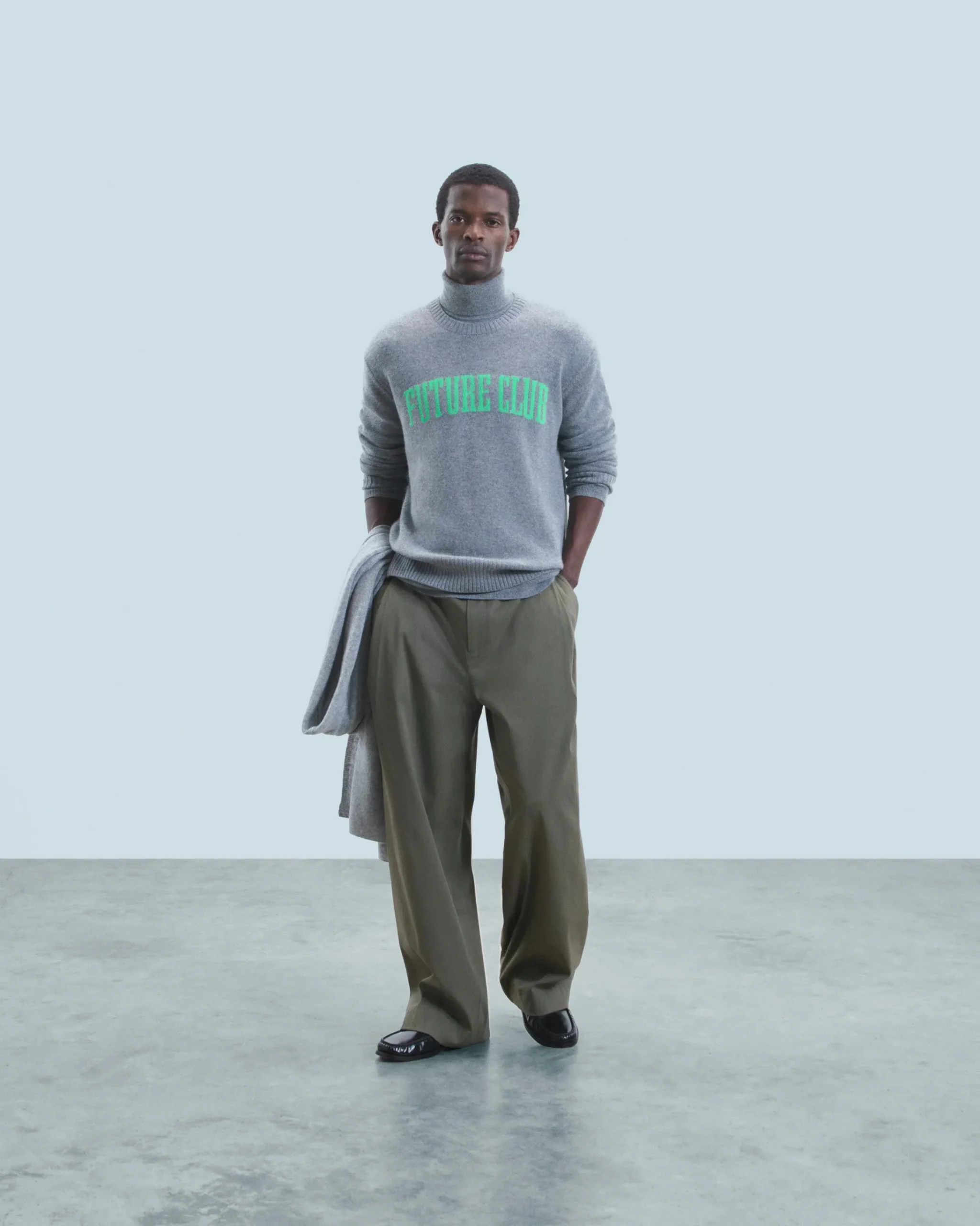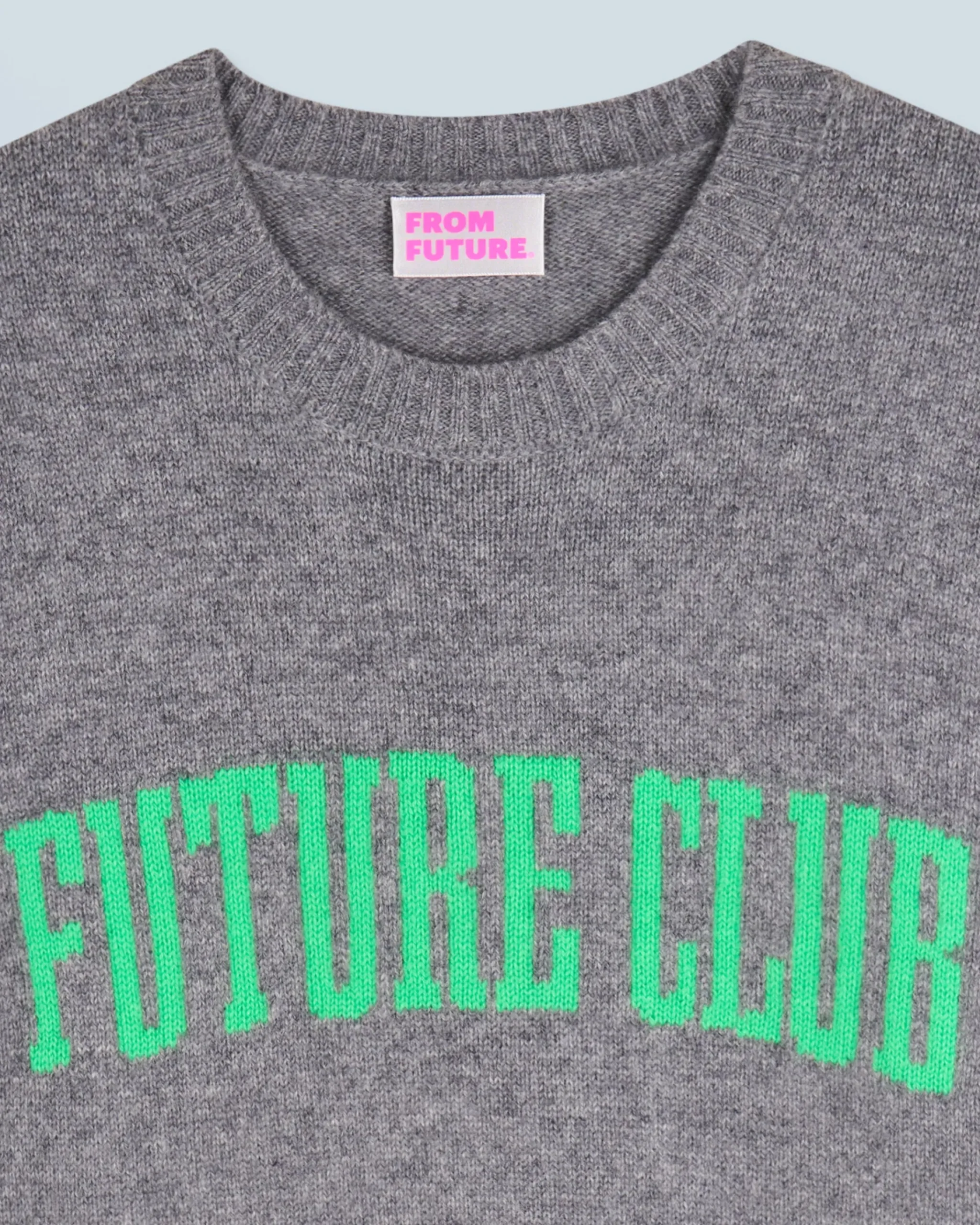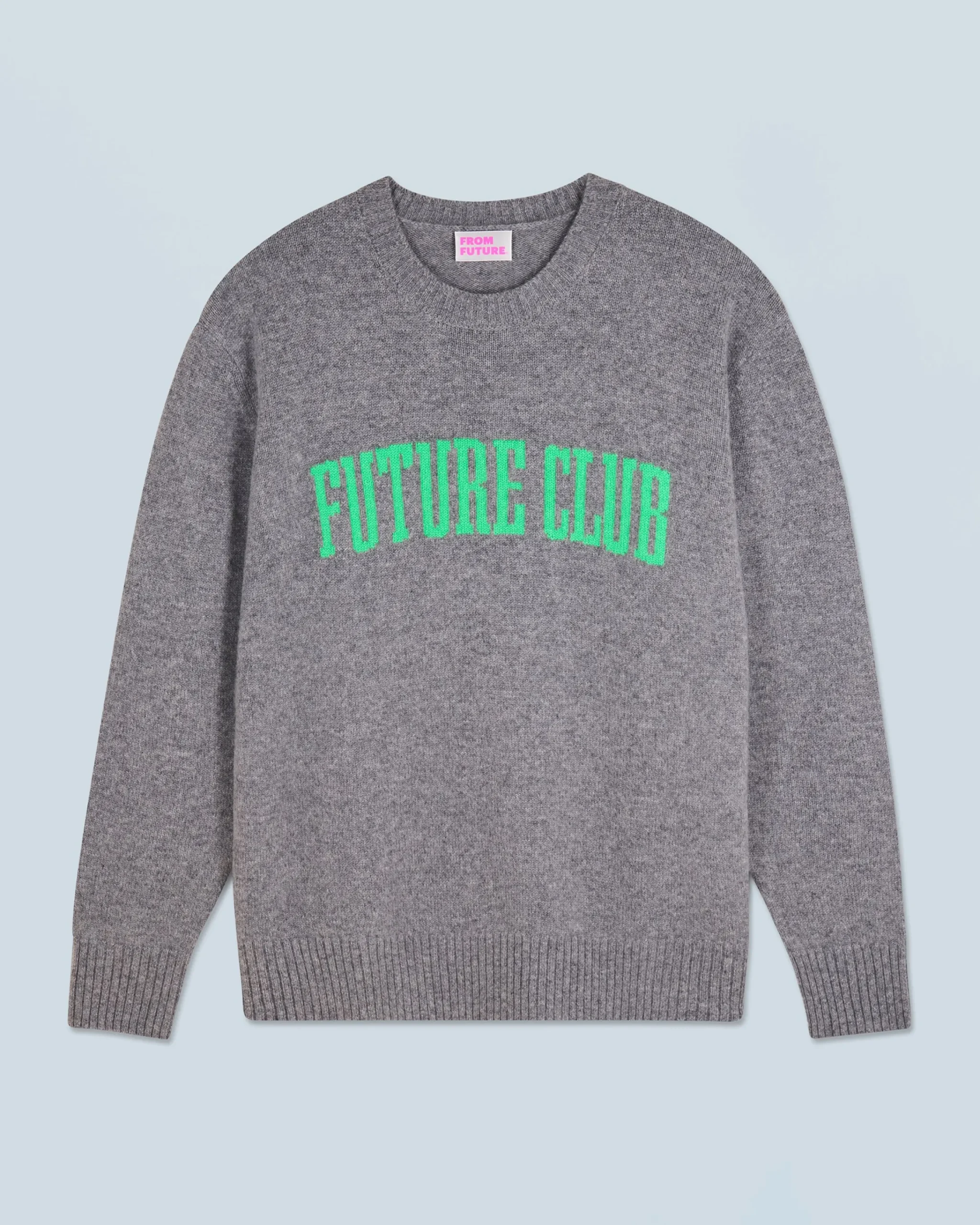 Entra nel Club con questo pullover oversize confezionato in cashmere 4 fili! Con scollo tondo e maniche lunghe, presenta la firma “Future Club” in jacquard a contrasto sul davanti. Facile da abbinare, questo capo essenziale del guardaroba From Future può essere indossato senza moderazione per completare i tuoi look.