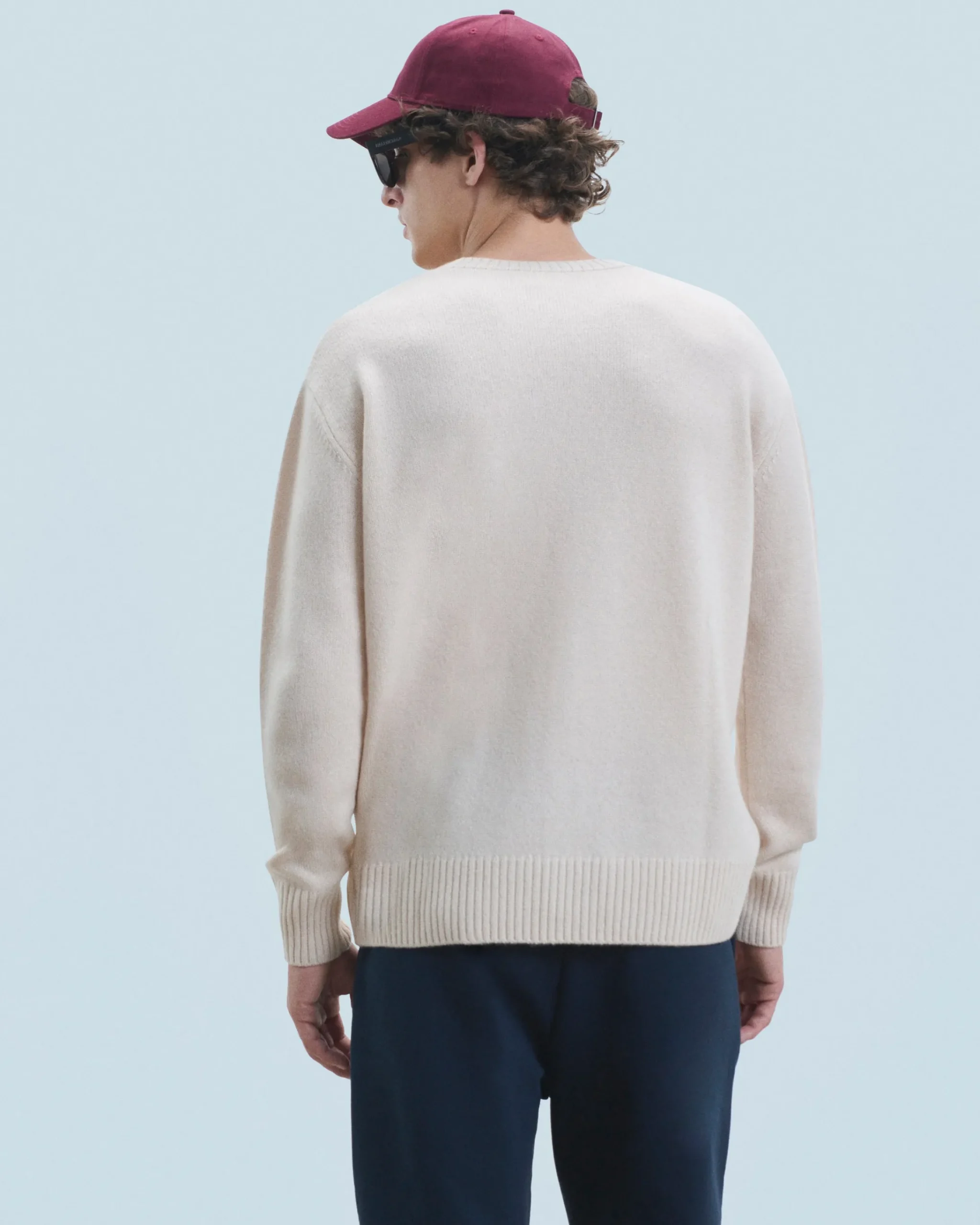 – Maglione in cashmere 4 fili certificato GCS® Uomo – Jacquard Future Club – Scollo tondo – Maniche lunghe – Bordi a coste – Taglio oversize – Il Good Cashmere Standard® (GCS) è una certificazione indipendente per un cashmere più sostenibile e più responsabile. Ha l’obiettivo di migliorare il benessere delle capre cashmere e le condizioni di lavoro degli allevatori, oltre a proteggere l’ambiente.