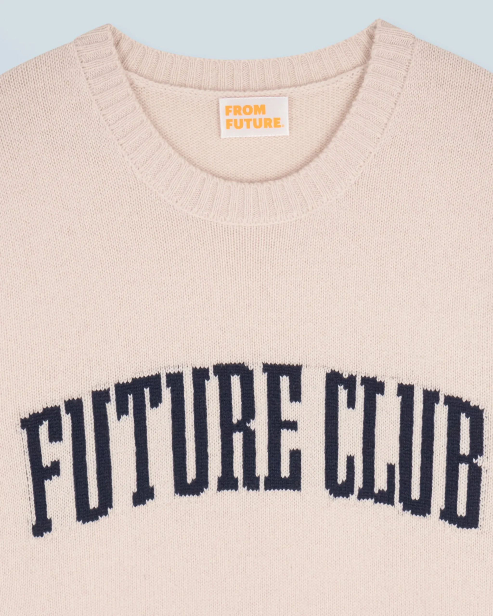 Entra nel Club con questo pullover oversize confezionato in cashmere 4 fili! Con scollo tondo e maniche lunghe, presenta la firma “Future Club” in jacquard a contrasto sul davanti. Facile da abbinare, questo capo essenziale del guardaroba From Future può essere indossato senza moderazione per completare i tuoi look.
