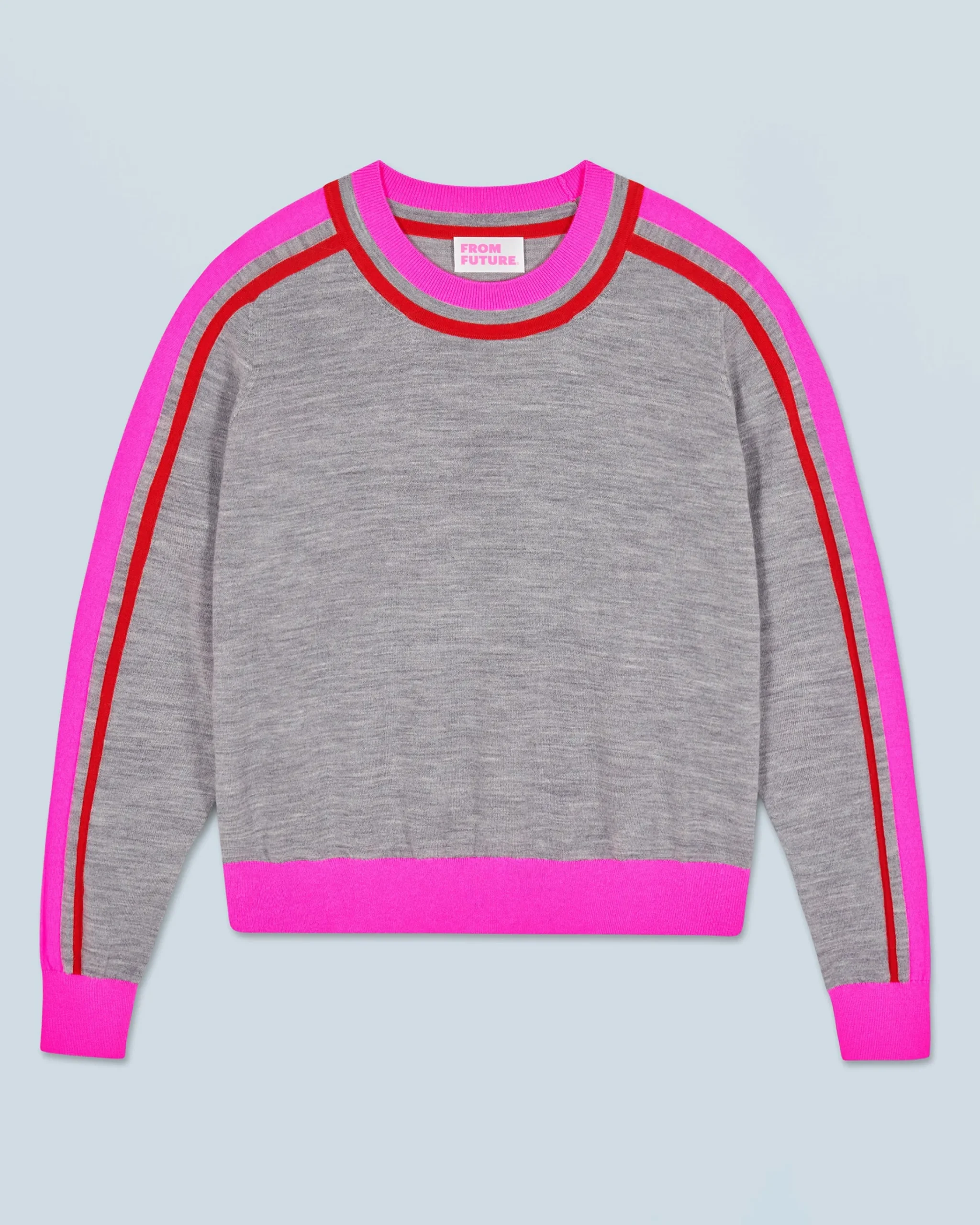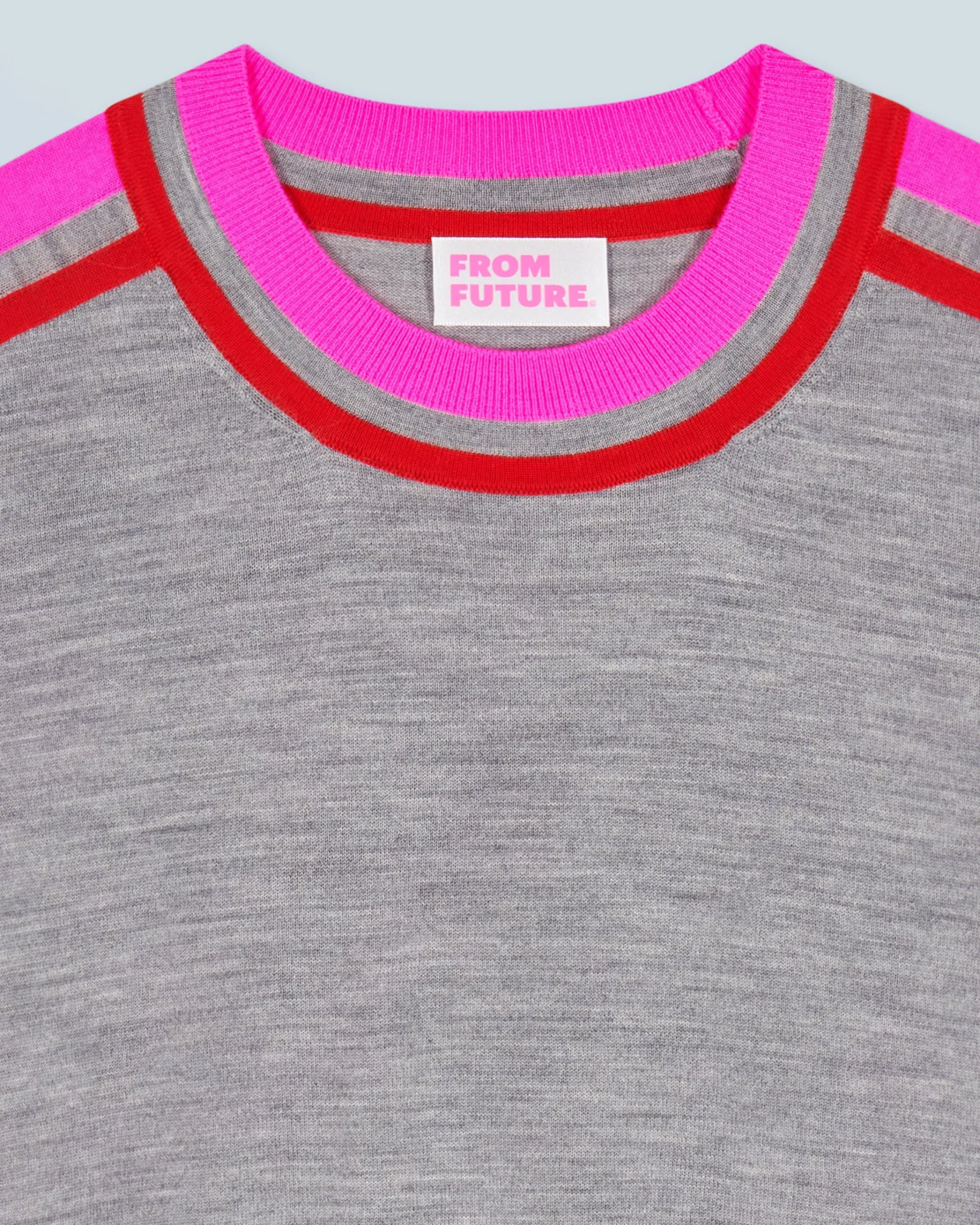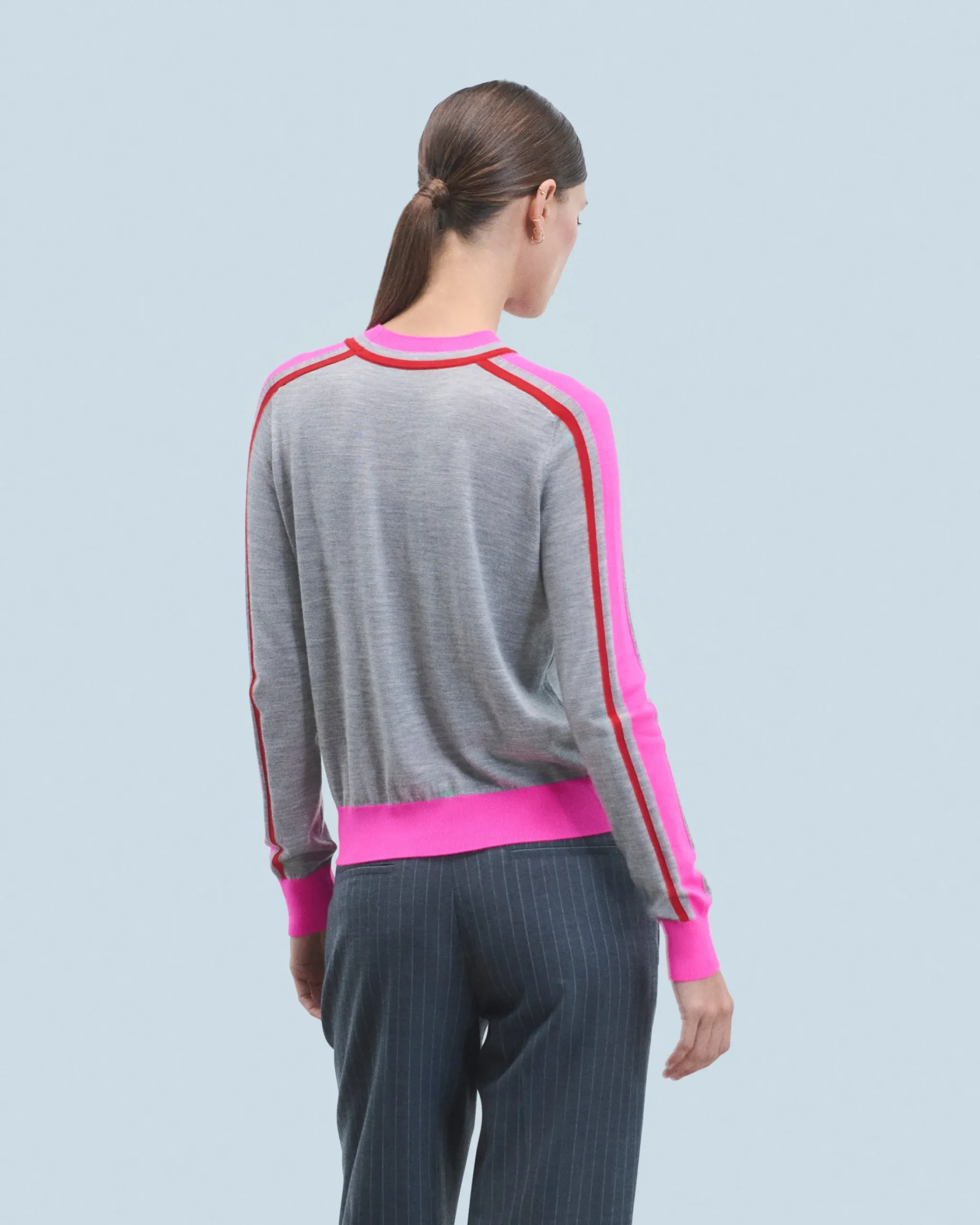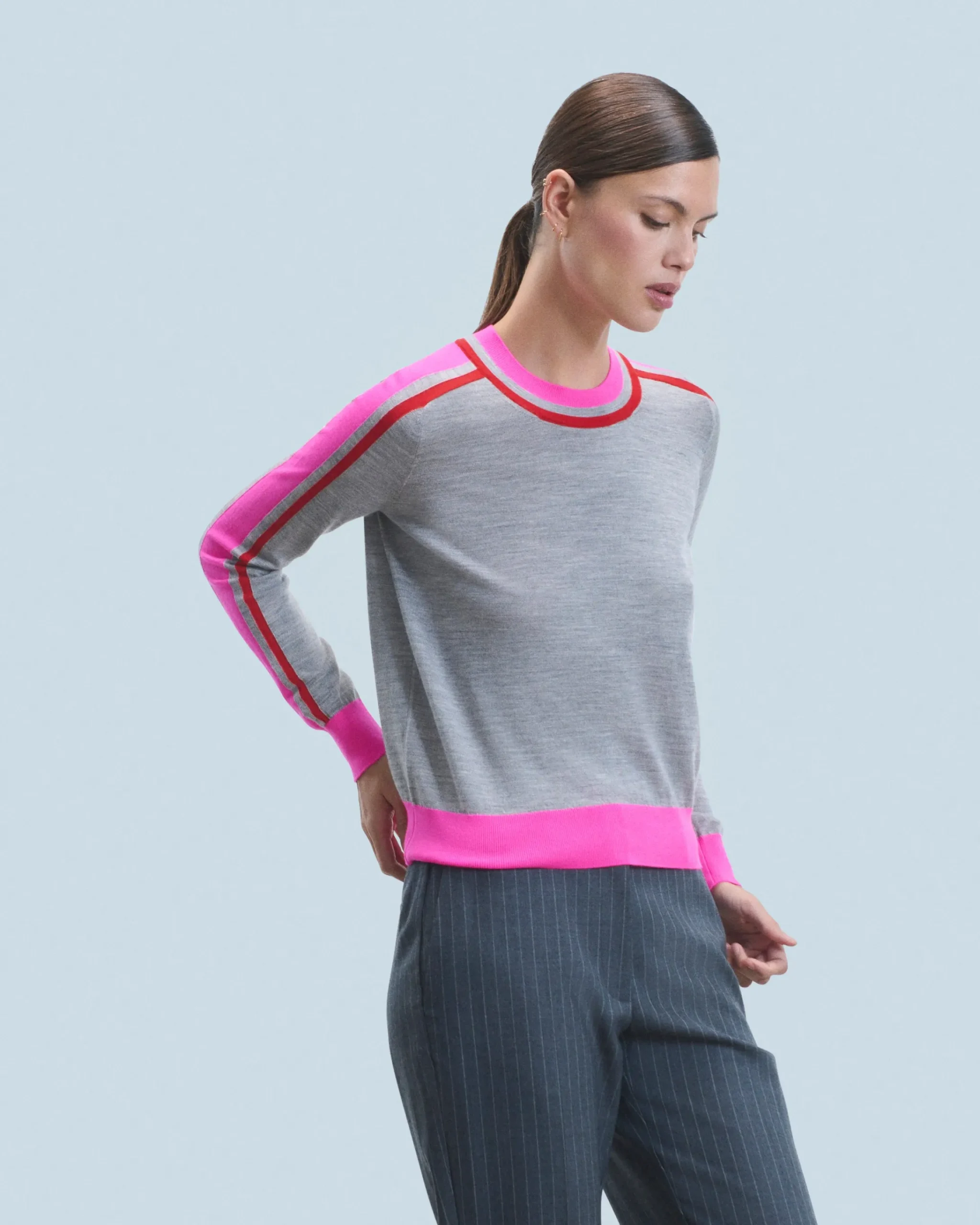 Leggerezza e morbidezza per questo maglione realizzato in 100% lana merino certificata RWS (Responsible Wool Standard). Dotato di un colletto rotondo e maniche lunghe, i bordi a contrasto e le bande bicolori illuminano istantaneamente il tuo look stagionale. – Maglione in lana merino Donna – Bande bicolori a contrasto – Colletto rotondo – Maniche lunghe – Vestibilità regular – Lana merino: traspirante e termoregolatrice, può essere indossata sia d’estate che d’inverno