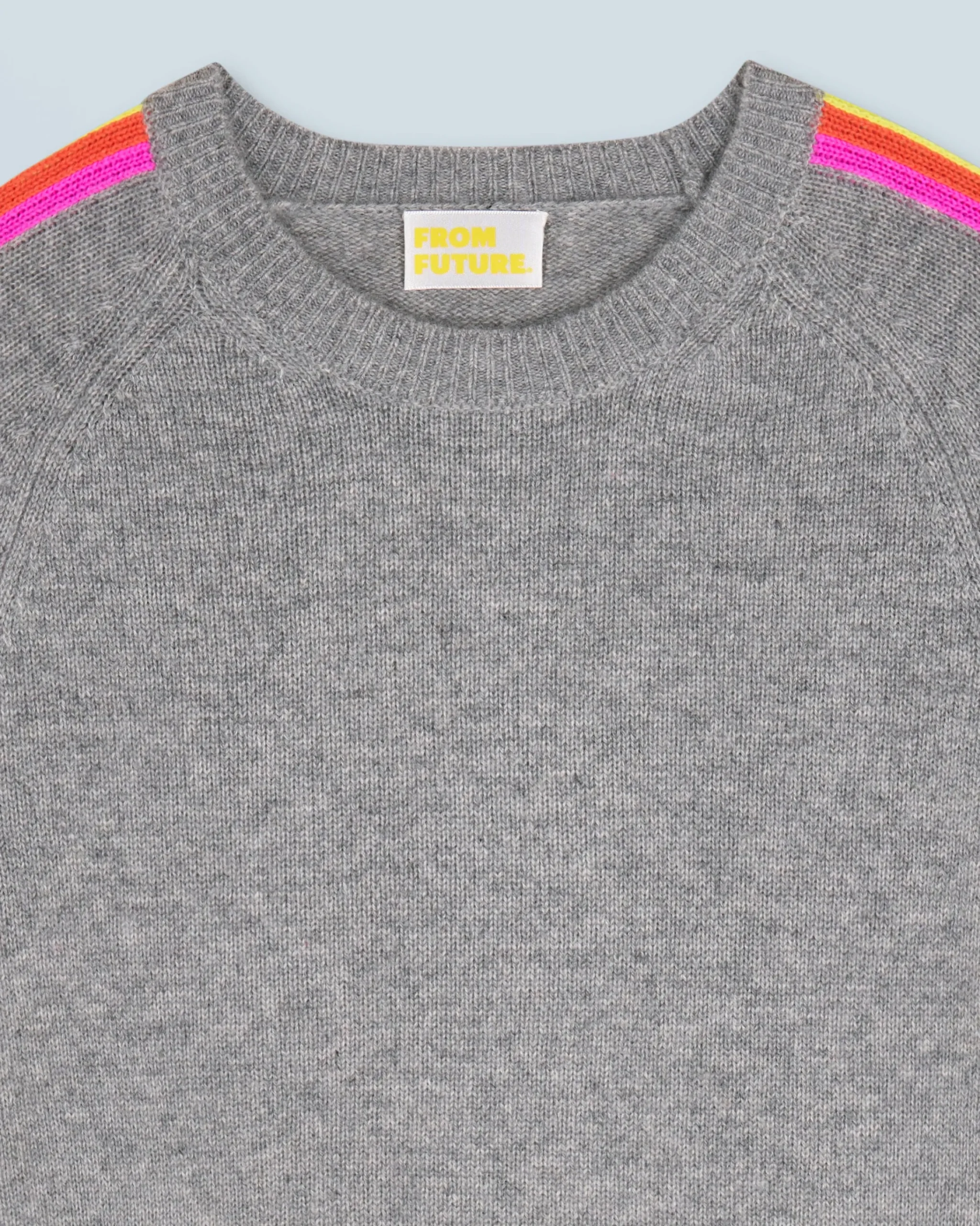Realizzato in cashmere, questo maglione corto presenta uno scollo tondo e bordi a coste per riscaldare il tuo outfit con stile. Il dettaglio più audace? Le bande multicolori che corrono lungo le maniche, dettaglio iconico dello stile From Future. Casual ed elegante, si abbina facilmente a pantaloni a gamba larga o a una gonna strutturata.