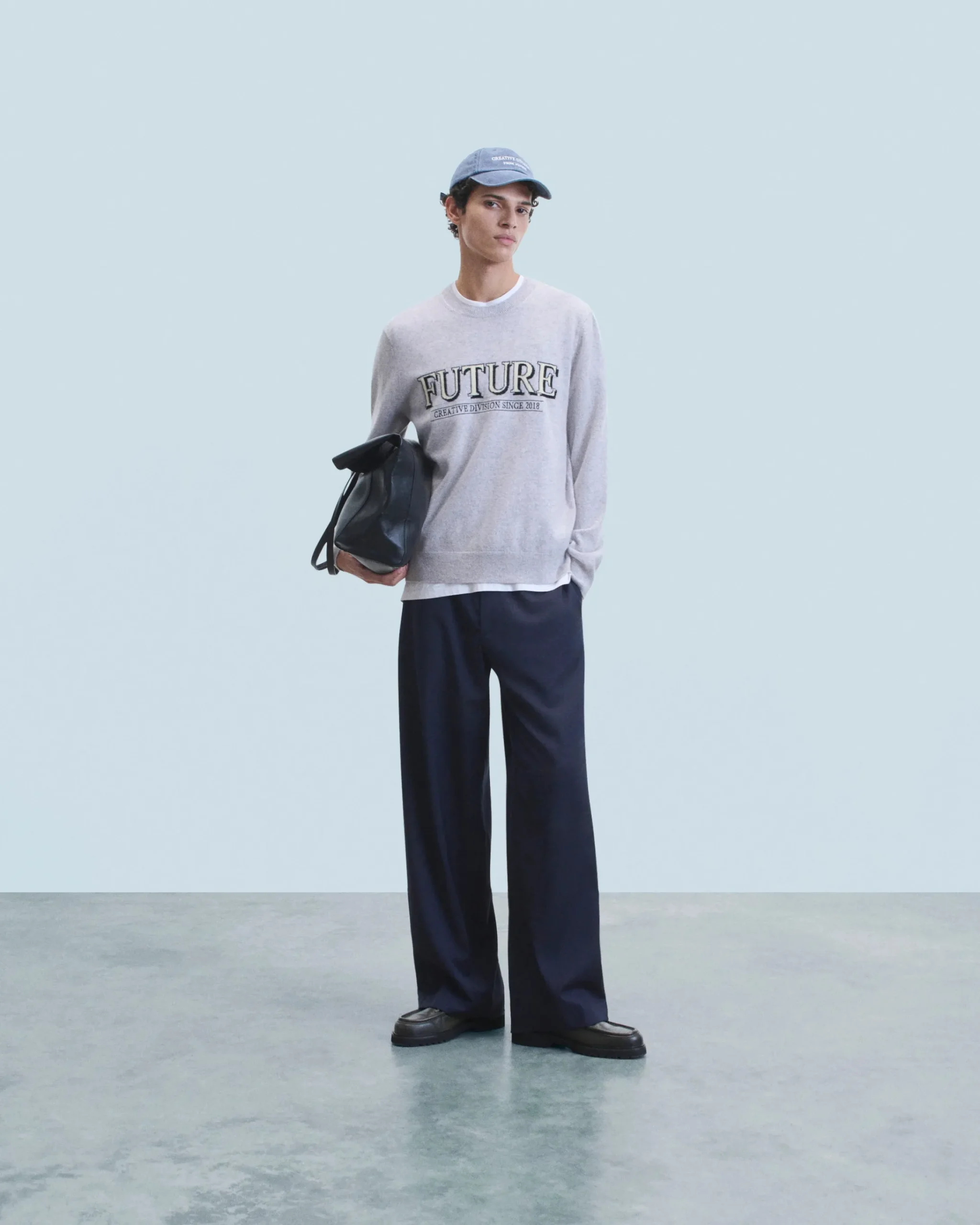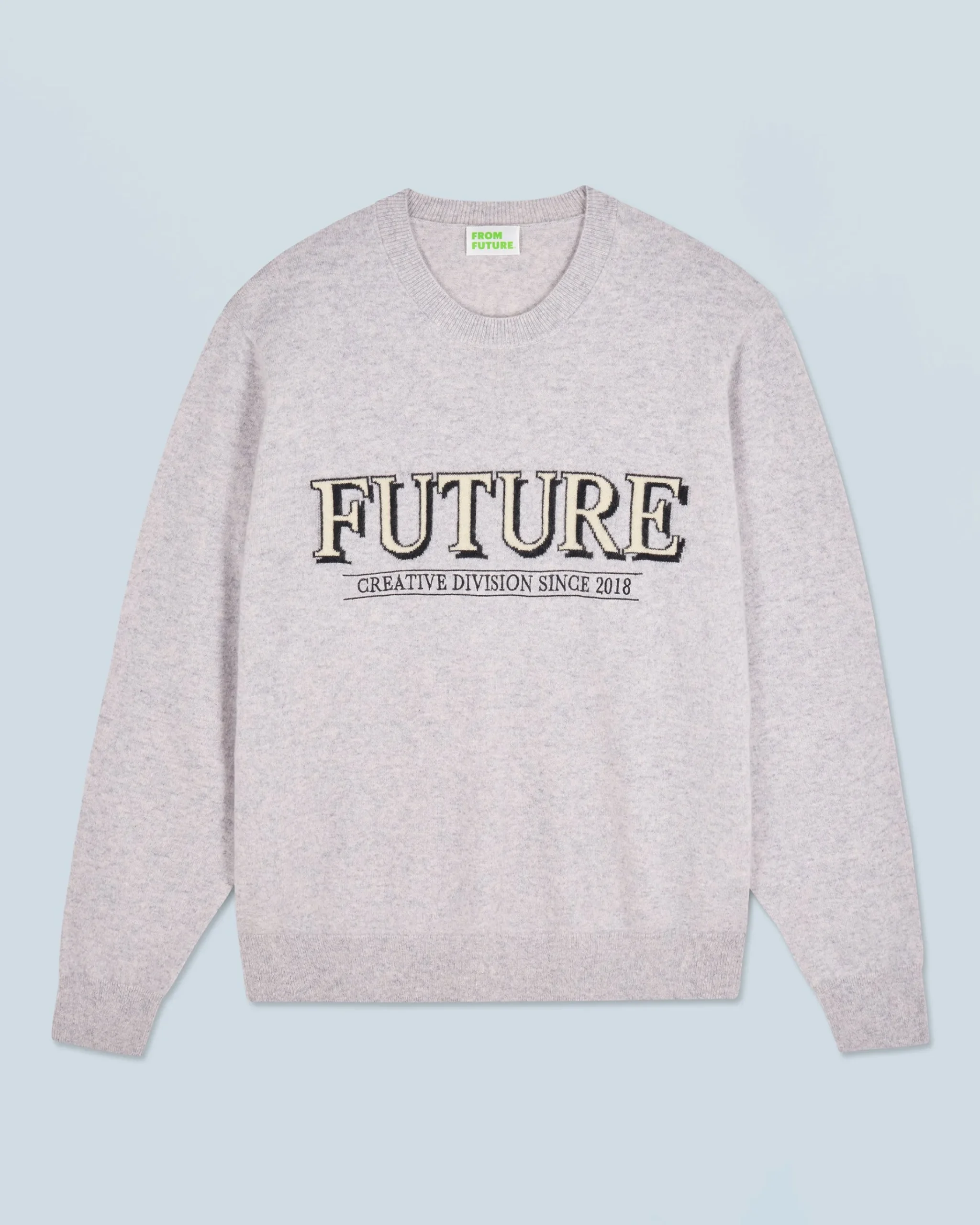 Dai un twist al tuo look di stagione con questo maglione oversize impreziosito da un jacquard “Future Creative Division” a contrasto sul davanti! Confezionato in cashmere, presenta uno scollo tondo, maniche lunghe e bordi a coste. Facile da abbinare, puoi indossarlo con un paio di joggers casual o di jeans a gamba larga.