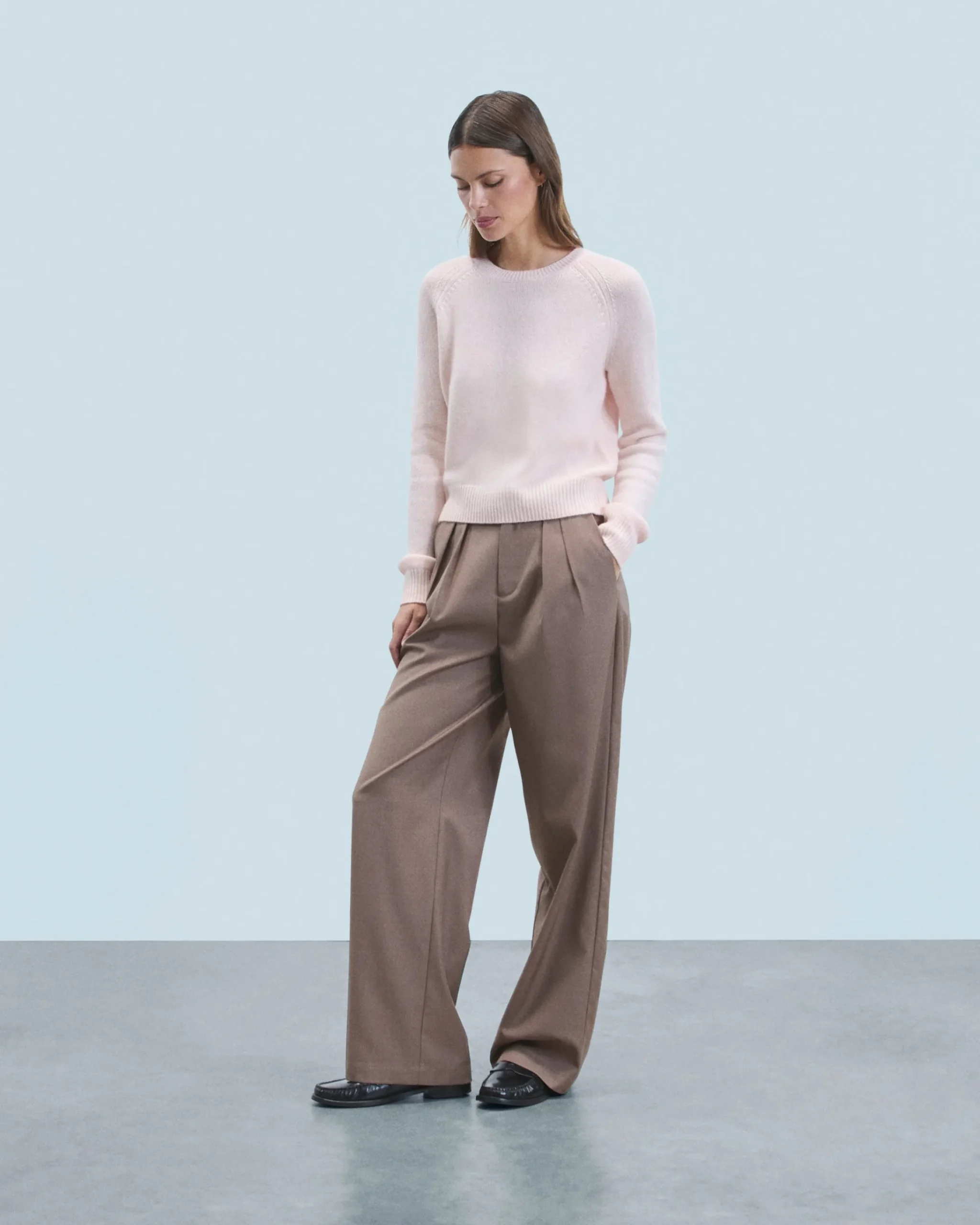 Proposto in una gamma di colori inediti, questo maglione in cashmere si presenta come un vero must del guardaroba. Il suo taglio corto e slim, vivacizzato da uno scollo tondo e maniche lunghe raglan, sottolinea con eleganza tutte le morfologie. Da indossare a volontà, puoi abbinarlo a un paio di jeans dritti o a una gonna morbida.