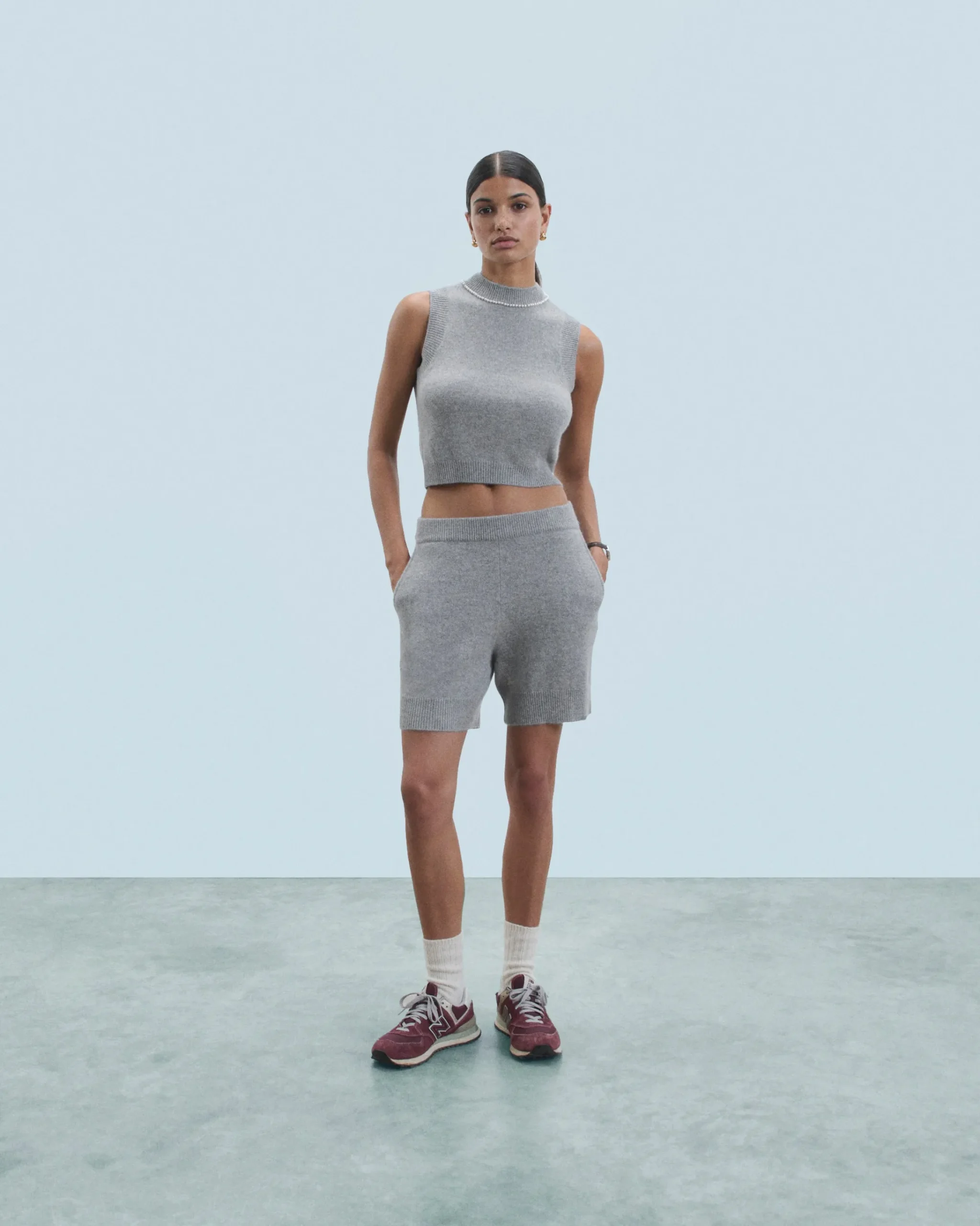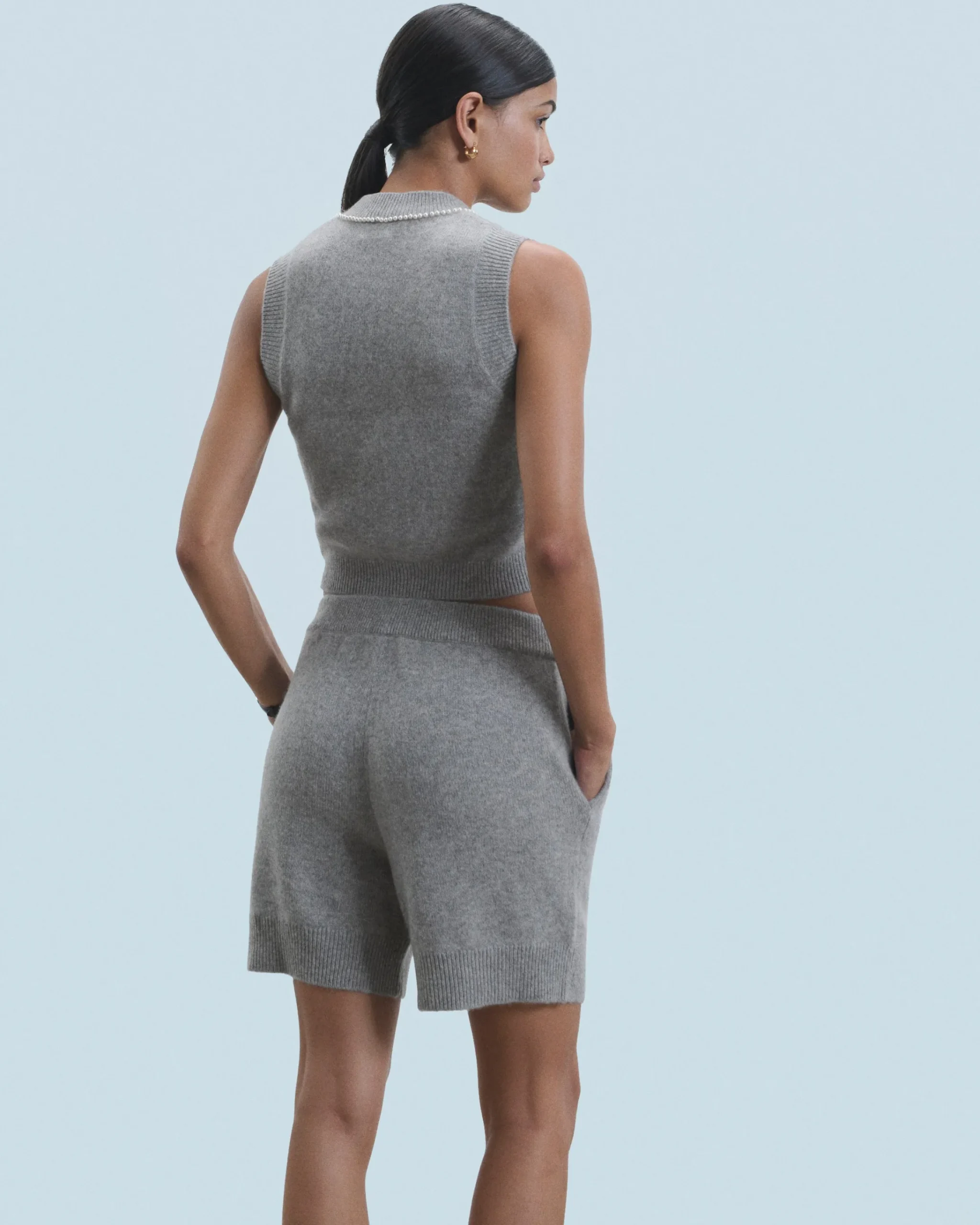 Confectionné en cachemire 4 fils, ce pull court sans manches est orné de perles délicates autour du col rond. Avec ses bords côtelés, il se porte sans modération et complète aussi bien vos tenues décontractées que sophistiquées.