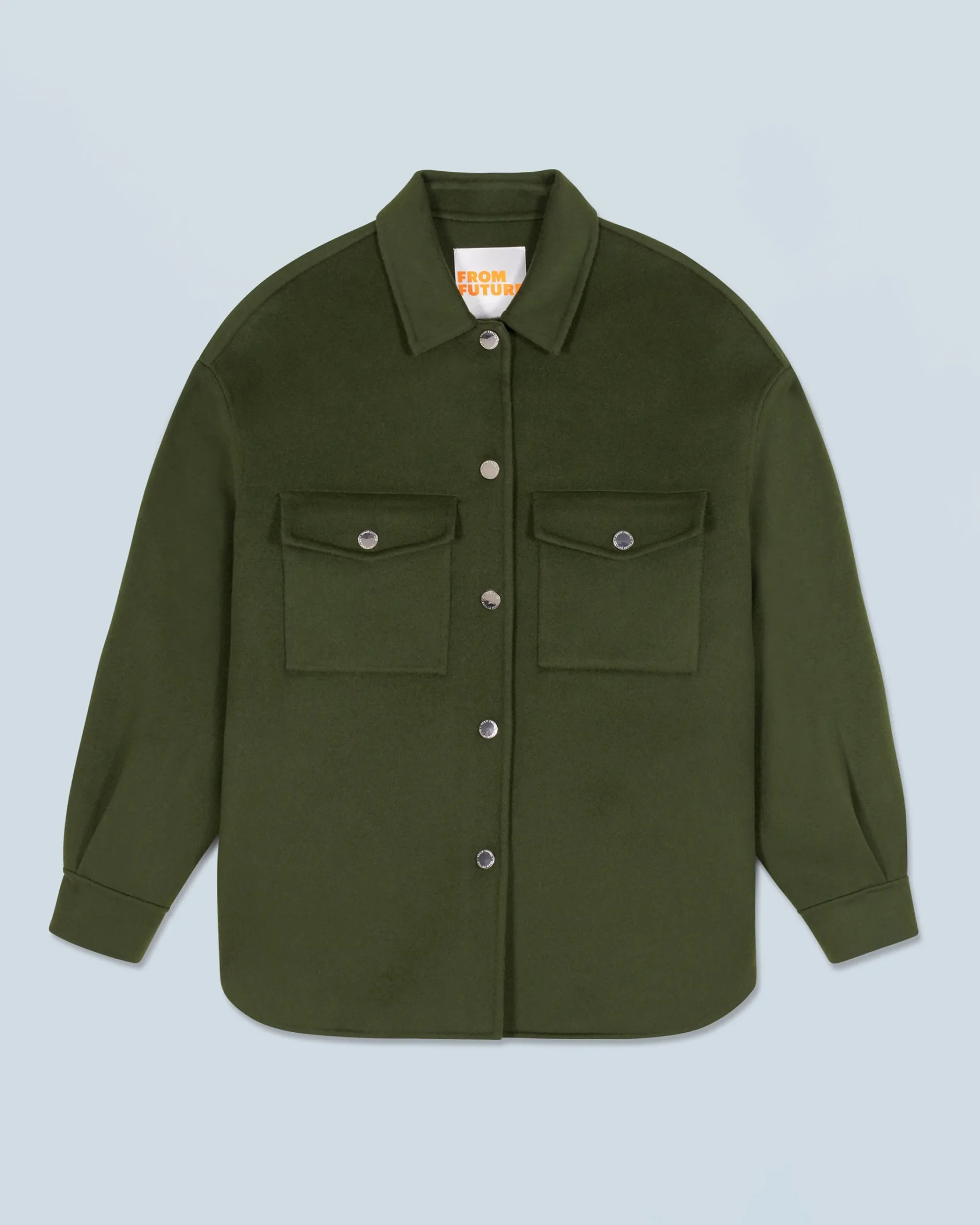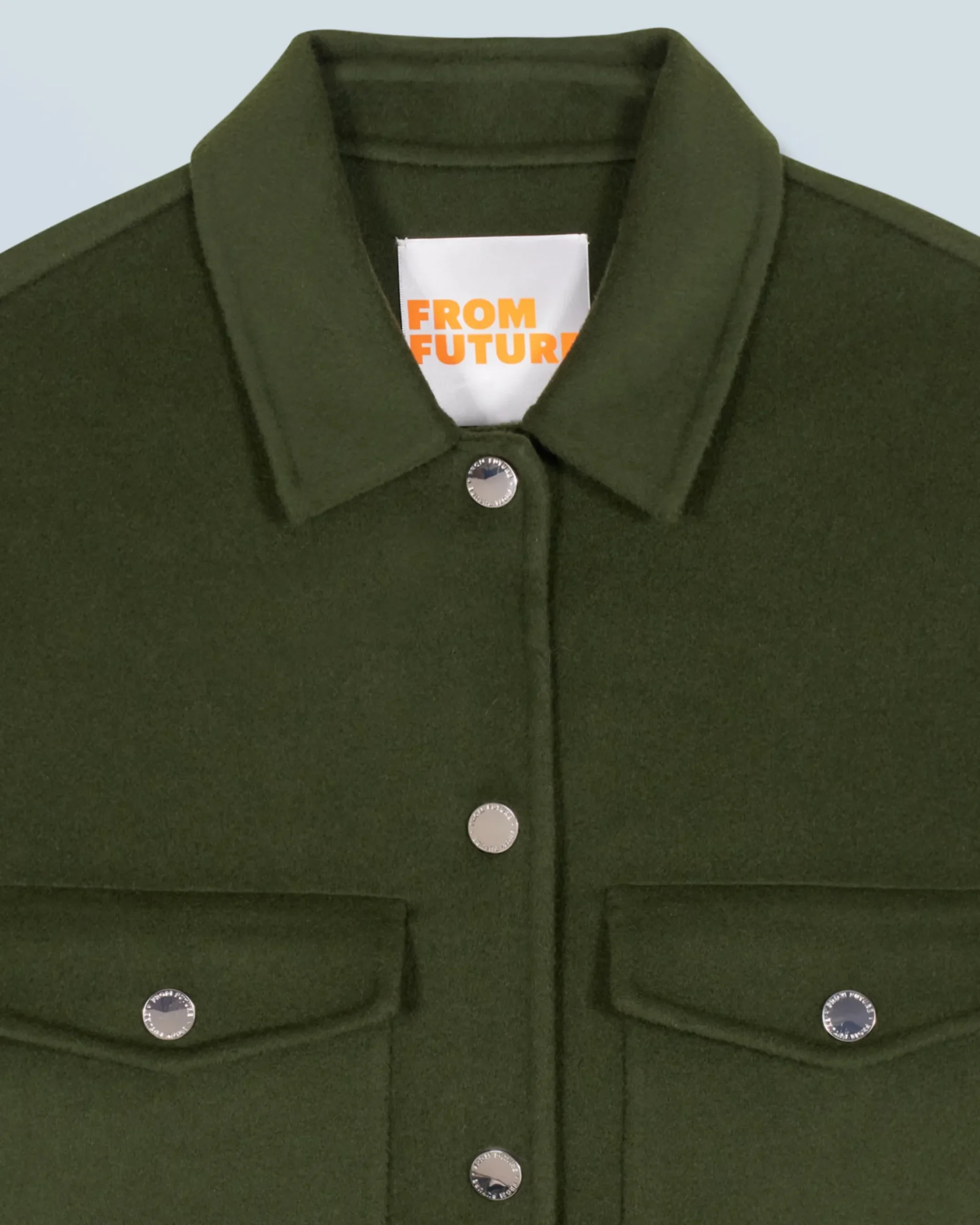 Con il suo taglio impeccabile e le sue linee decise, questo cappotto corto in lana double face riscalderà il tuo outfit con un tocco morbido. Con un colletto a camicia, una chiusura con bottoni a pressione e due tasche con patta applicate sul petto, offre un look elegante e strutturato. Un pezzo essenziale per la stagione, che si abbina sia agli outfit casual che a quelli più sofisticati.