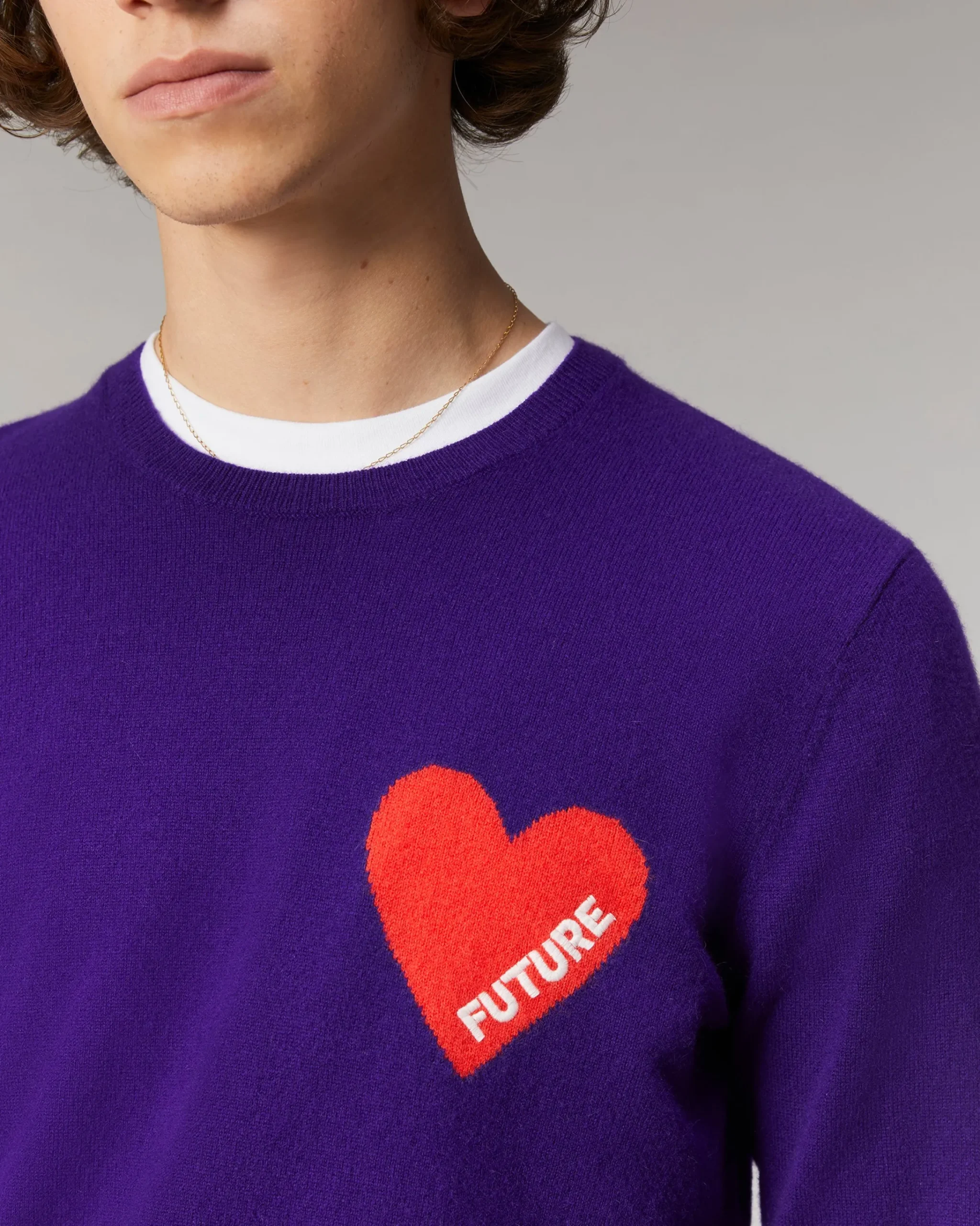 Girocollo con maniche lunghe e bordi a coste, questo pull in cashmere infinitamente morbido presenta il cuore “FUTURE” ricamato sul petto. Unitevi al Club con questo capo essenziale del guardaroba From Future!