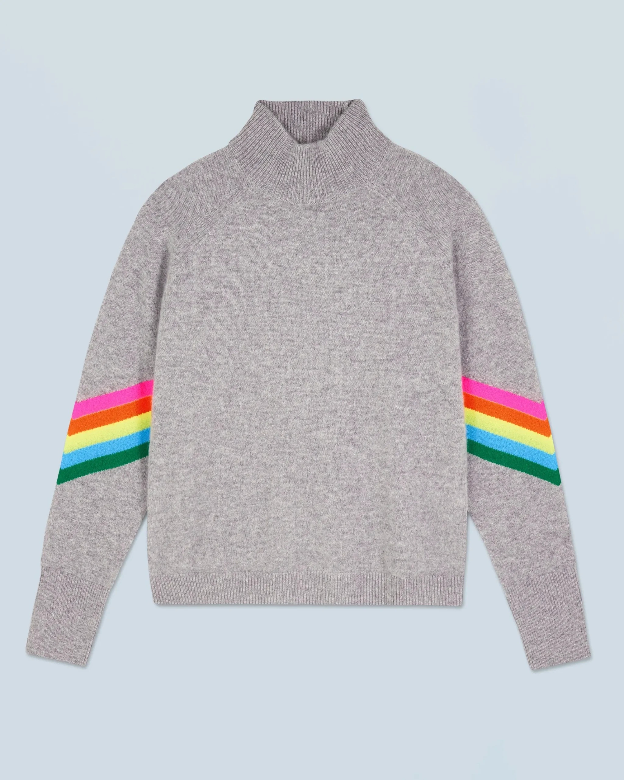 Pezzo iconico del guardaroba From Future, questo maglione corto in cashmere leggero è vivacizzato da bande multicolori sulle maniche. Con un collo alto e bordi a coste, ravviverà il tuo look di stagione con un tocco audace. Indossalo con un paio di pantaloni larghi o una gonna morbida!