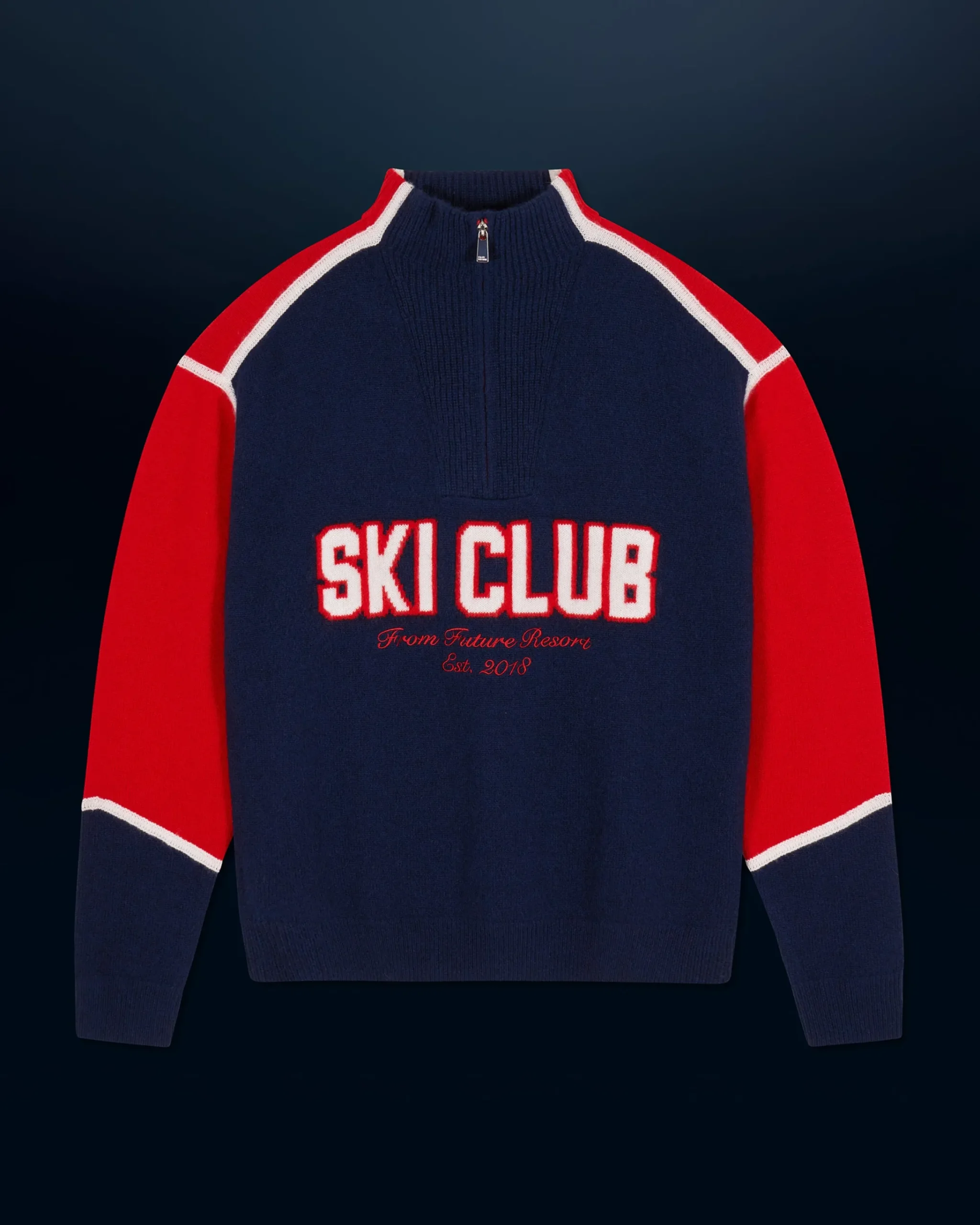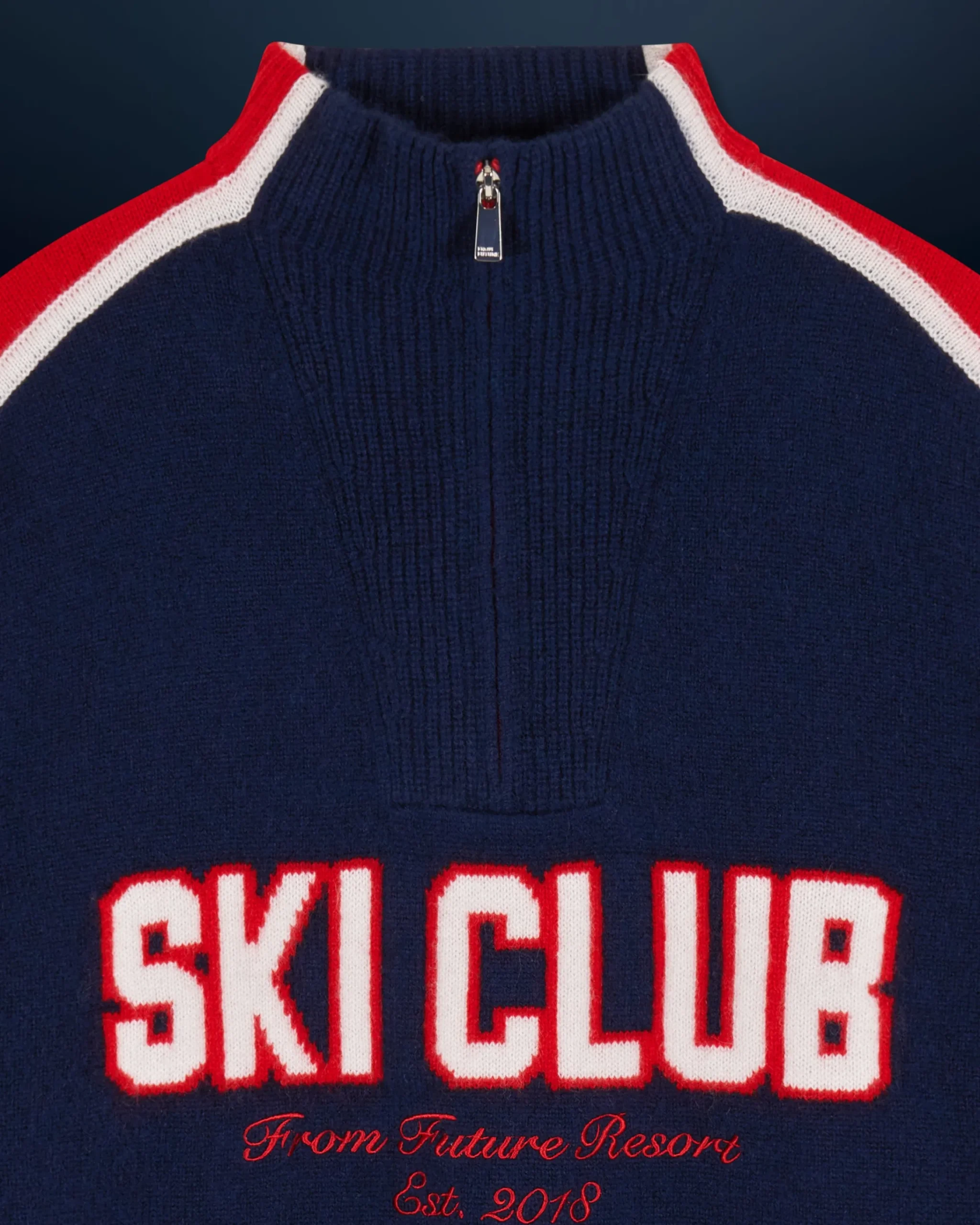 Un vero shuss verso un inverno stiloso con questo maglione oversize in cashmere, decorato con la scritta “Ski Club From Future Resort”. Strisce e bordini a contrasto sottolineano il collo e le maniche lunghe, per un look elegante sulle piste innevate.